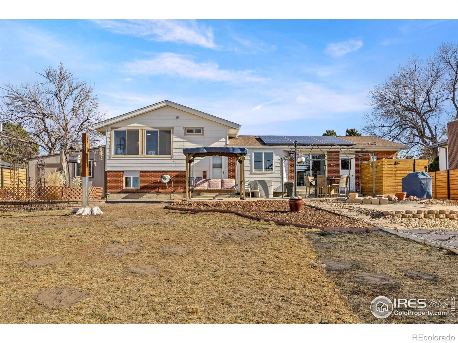Welcome home to this beautifully updated four-level residence offering breathtaking, unobstructed mountain views of Mt. Blue Sky (formerly Mt. Evans) from the backyard. Built in 1967 and thoughtfully remodeled throughout, this 3-bedroom, 2-bath home blends timeless character with modern upgrades, including solar, on a spacious 10,106 sq ft lot with no rear neighbors, backing directly to a school field for added privacy and open views. The main level features the inviting kitchen and living room, creating a warm and functional entry space. Upstairs, you'll find a generously expanded and renovated primary bedroom, a second bedroom or office, and a fully updated bathroom. The lower level offers a versatile open-concept living area complete with a gas fireplace, ideal for a family room or entertainment space, along with the third bedroom and a second newly built full bathroom. New flooring runs throughout the entire home, enhancing its fresh, cohesive feel. The lowest level includes an unfinished basement with a full laundry area and ample storage, offering future potential. Outside, the front yard was beautifully xeriscaped in 2025 for low-maintenance curb appeal, while the landscaped backyard provides the perfect setting to enjoy the stunning mountain backdrop. Additional highlights include a one-car attached garage with a recently re-poured concrete floor, plus an impressive 470 sq ft detached heated and air-conditioned garage or workshop, and an additional backyard storage shed. With 1,407 finished square feet and 1,816 total square feet including the basement, this home offers space, flexibility, and one of the area's most impressive view corridors. A rare opportunity to own a move-in-ready home in Centennial with expansive mountain views, privacy, and extensive upgrades throughout.