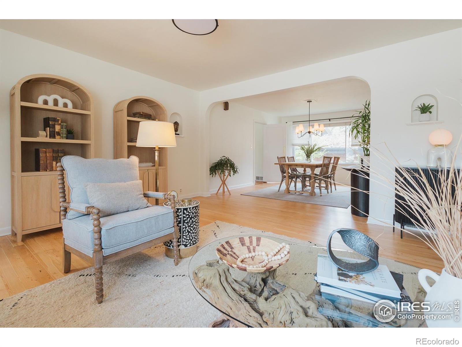 Midcentury Gem This charming mid-century beauty in the Historic Original Fort Collins High School / Performing Arts Center features three large bedrooms on the main floor, a grand main floor living room and separate dining room, plus one large living room in the basement or could be used as two basement bedrooms, offering 3358 total square feet and 3,6 a large lot with a circular driveway, alley access, and on-street parking. Features include: refinished wood flooring throughout and new wood floors in the kitchen, new carpeting, new lighting and ceiling fans, new primary bath lighting and mirror, new vanity, toilet, lighting, and fixtures in the hall bath, new exterior lights, new interior paint, freshly painted 2-car garage and exterior doors, and new landscaping. The large windows and period details like original built-ins and some original midcentury light fixtures make for a perfect combo of updated living while preserving that midcentury charm. The corner lot is just steps to Whole Foods, the CSU Demonstration Gardens, Spring Park, and the Spring Creek Trail, making this a true gem!