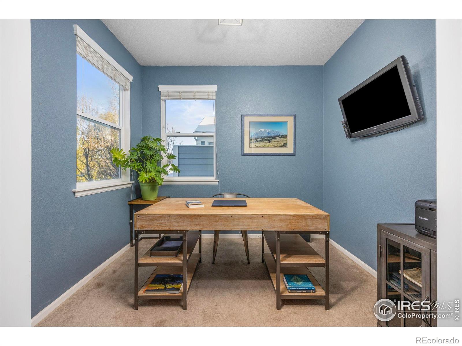 *Open House - Sunday 2/1, 11am - 1pm* Effortless living surrounded by nature, with modern updates throughout. This upper-level 2 bed, 2 bath condo (plus dedicated office) delivers an open, airy feel thanks to vaulted ceilings, oversized windows and cozy gas fireplace. The recently updated kitchen shines with all-new stainless-steel appliances, wood flooring, and fresh hardware. Enjoy year-round convenience with an attached 1-car garage. The primary suite features 2 closets and a spacious en-suite bath for ultimate privacy and comfort. Recent upgrades make move-in effortless: new LG washer/dryer in the dedicated laundry room, new toilets, light fixtures, Nest thermostat, smart doorbell and fire alarms. Relax on your private upper deck or in your low-maintenance fenced courtyard. The community enhances the lifestyle with a dog park and included HOA perks: water/sewer, trash, snow removal, exterior maintenance and hazard insurance. Nestled in a vibrant Northern Colorado neighborhood you're steps from Houts Reservoir, Equalizer Lake, and trails ideal for walking, biking and bird watching. Quick access to shopping centers, restaurants, Medical Center of the Rockies, I-25 and High Plains school makes daily life convenient and connected.