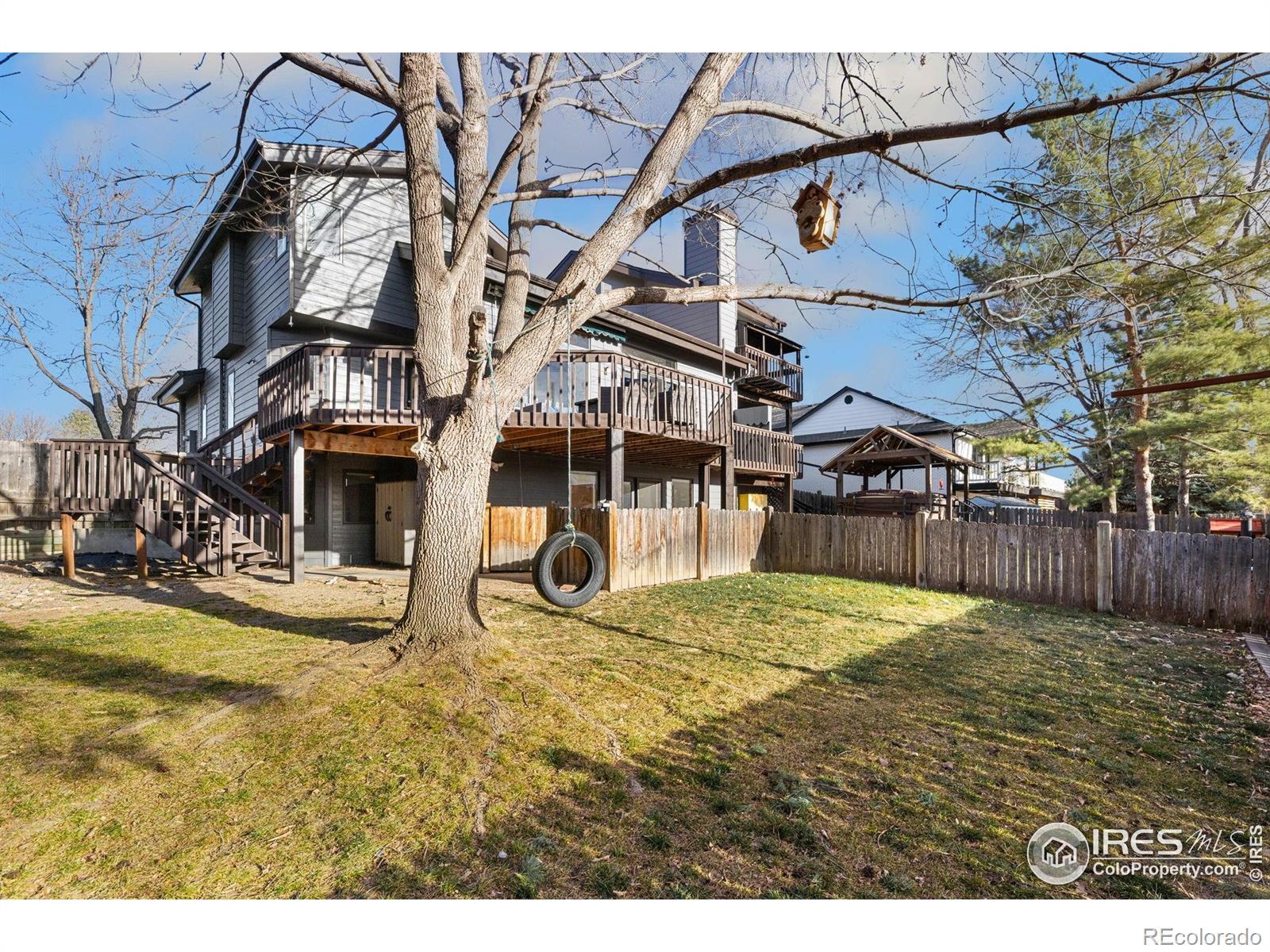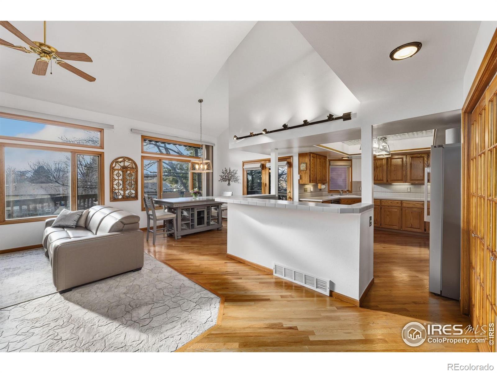 2988 Kiowa Dr in Loveland offers mountain views, standout outdoor living, and a flexible layout with multiple private living zones-plus NO HOA.With 6 bedrooms and 4 baths, the home is thoughtfully spread across three levels. Upstairs, you'll find 3 bedrooms, including a spacious primary suite with vaulted ceilings, a private balcony, and a 5-piece bath with a jetted tub. The main level features inviting living and dining spaces, porcelain stone tile in the living room, an eat-in kitchen with an island and a pantry, and a built-in office. Also on the main level is a separate bedroom space with a kitchenette and private entrance. The walk-out lower level adds 2 more bedrooms, a kitchenette, a private entrance, and a large rec room. Recent updates include a new stove, refrigerator, dishwasher, stackable laundry, new carpet, and fresh paint inside and out. Bonus details include a hidden Murphy-style door and a laundry chute from the primary.Step outside to a large wrap-around deck and a fenced backyard divided into two areas-with no immediate neighbors directly behind. A back gate opens onto a walking trail that connects to Mehaffey Park. Enjoy year-round fitness and relaxation in the 16' Michael Phelps Signature Swim Spa by Master Spas (only 3 years old and under warranty). The 3-car garage is designed for both parking and productivity, with built-in workbenches and separate storage that keeps all three bays usable. Rare dual-side parking provides space for a boat, RV, ATVs, or other gear. Schedule a private tour to see it in person.