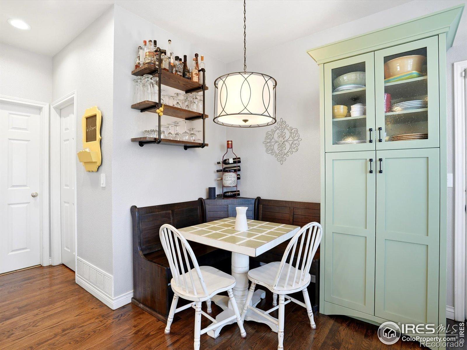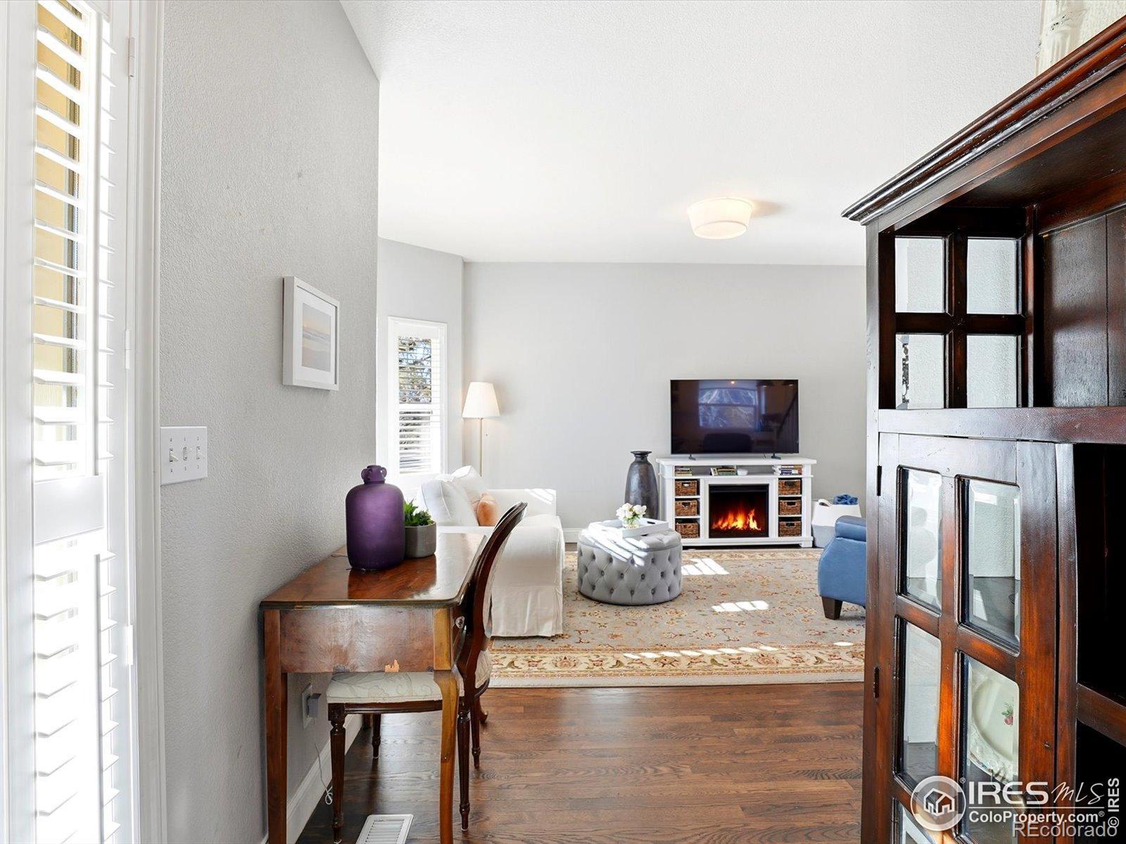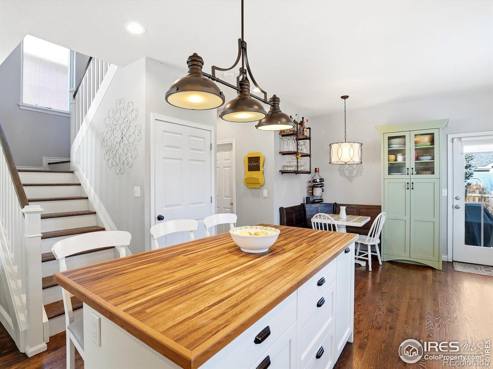 This beautifully maintained, light and bright home is more than 75% updated with modern colors,high-end materials,and tasteful decor throughout. Thoughtful upgrades include updated light fixtures and custom-fitted window coverings, with plantation shutters throughout most of the home. Wood floors extend through the main living areas, upstairs, and into the primary bedroom and hallway, creating a warm and cohesive flow.The fully remodeled kitchen (2019) is a standout, featuring custom top-of-the-line cabinetry, quartz countertops, a handcrafted butcher block island, and a premium Wolf gas range. Additional updates include a new refrigerator (2019) dishwasher (2023) furnace and water heater (2020), and a new roof installed in 2018 will provide long-term peace of mind. The home also features high-quality exterior paint and has been exceptionally well cared for.The finished basement offers newer, premium carpet (2021) and includes a bonus bedroom and bathroom-ideal for a mother-in-law suite or a private retreat for teens-along with a dedicated office nook. Upstairs, the spacious primary bathroom features a large walk-in shower, while the second, remodeled bath includes a soaking tub. A third upstairs bedroom works perfectly as a home office or a small bedroom.Outside, mature shade trees in both the front and back yards provide summer privacy, while a custom patio with a built-in fountain creates a relaxing outdoor escape. The location is exceptional: 1/2 block to trails for easy biking access through Longmont and beyond. Property is walkable to restaurants, grocery stores, bars, and a movie theater, and set in a friendly neighborhood with open spaces and a community-owned shaded path along Left Hand Creek. Just minutes to downtown Boulder, Niwot, vibrant downtown Longmont, recreation centers, and yoga studios