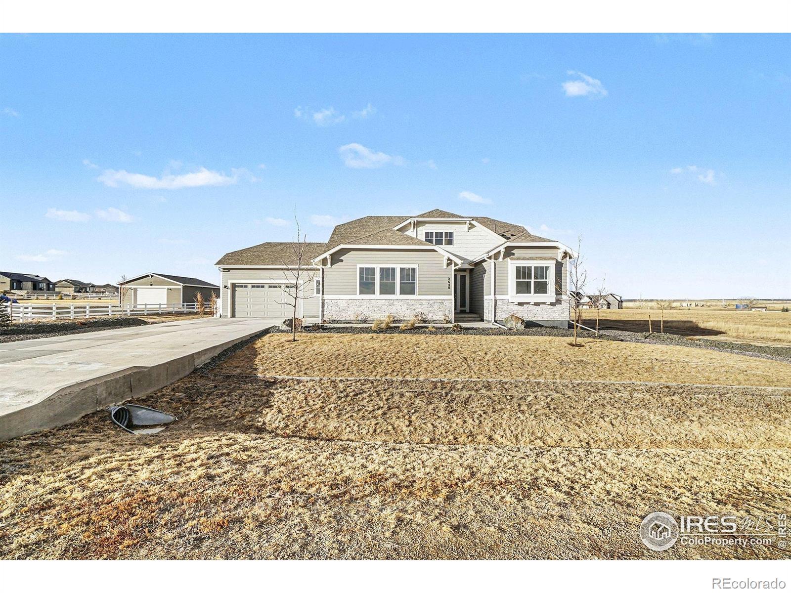 Welcome to wide-open living on 1.5 acres in the desirable Saddler Ridge subdivision of Severance. This spacious ranch-style home offers an open, functional layout with room to gather, relax, and grow-both inside and out.The main level features a bright living area with a cozy fireplace, complemented by fresh interior paint throughout the home. The kitchen is designed for everyday living and entertaining, offering quartz countertops, stainless steel appliances, a large island, and ample cabinetry. The primary suite provides a peaceful retreat with an ensuite bath and walk-in closet, while additional main-level bedrooms offer flexibility for guests, offices, or hobbies.The finished lower level expands the living space with a large recreation area, two additional bedrooms, and a full bathroom-ideal for movie nights, multigenerational living, or guest accommodations.Outside, enjoy big-sky views and plenty of room for outdoor living, gardening, play, or future projects. The 4-car garage provides ample space for vehicles, tools, and toys. The neighborhood allows outbuildings and ADUs (buyer to verify), offering rare flexibility for workshops, barns, or guest spaces. Located just minutes from Windsor, Timnath, and Fort Collins, this move-in-ready Severance property delivers space, functionality, and a relaxed Northern Colorado lifestyle.