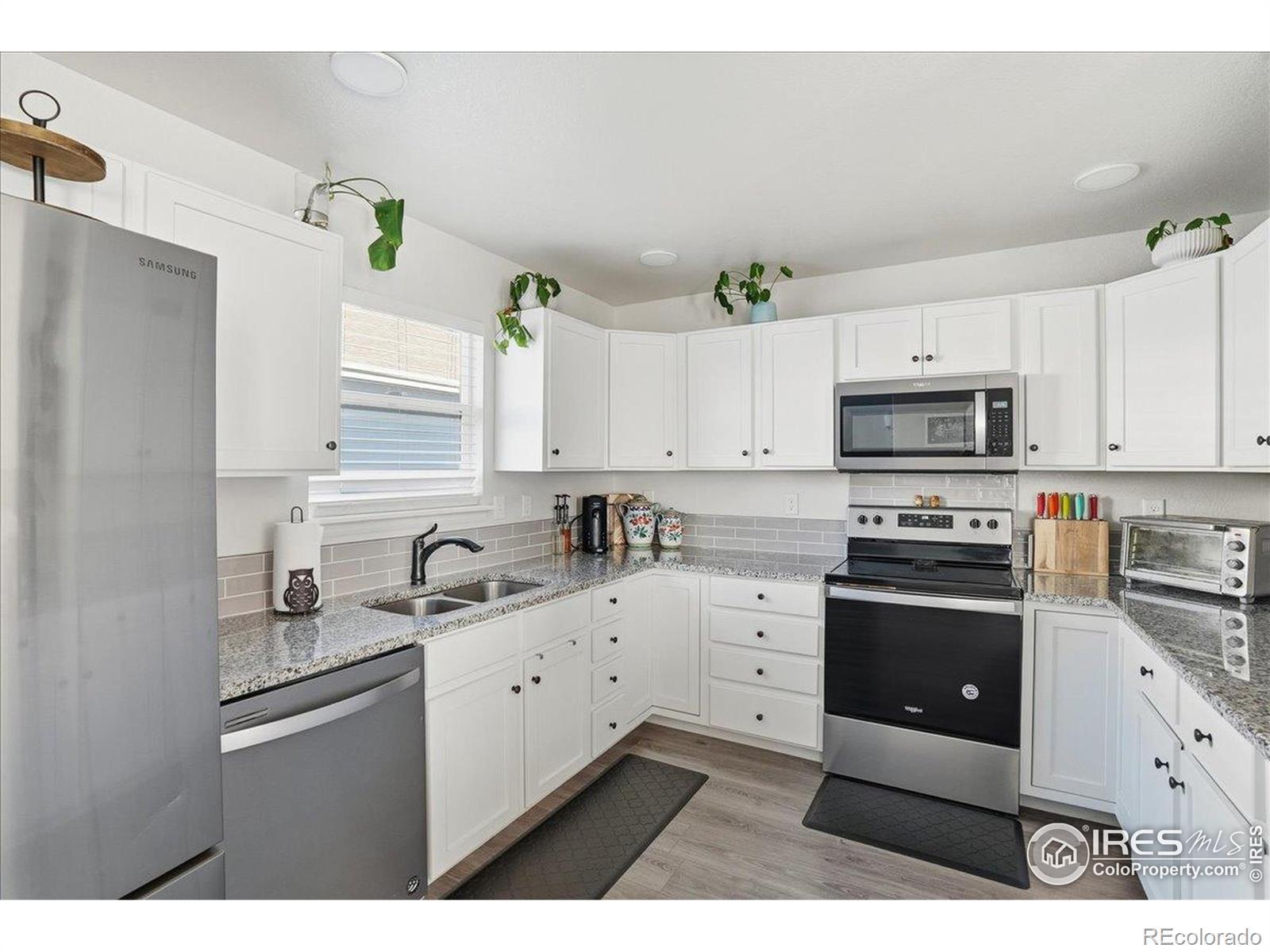 Welcome Home!! This beautifully maintained & stylish two-story property has everything you need! This residence features three bedrooms and two and a half bathrooms. Showcasing a main level with an open floor plan, beautiful beveled granite countertops, stainless steel appliances, and laminate flooring. Other major upgrades include an active radon mitigation system and tankless water heater. Enjoy the lovely, south facing, covered patio all year long. Although the side yard is a well maintained, no maintenance turf, the sprinkler system runs throughout the property. The primary bedroom has plenty of space and a large, private, double sink bathroom. Massive 3 car garage with ally access!! Come check out this newly constructed property today! Conveniently located near Highway 34 and Highway 85.