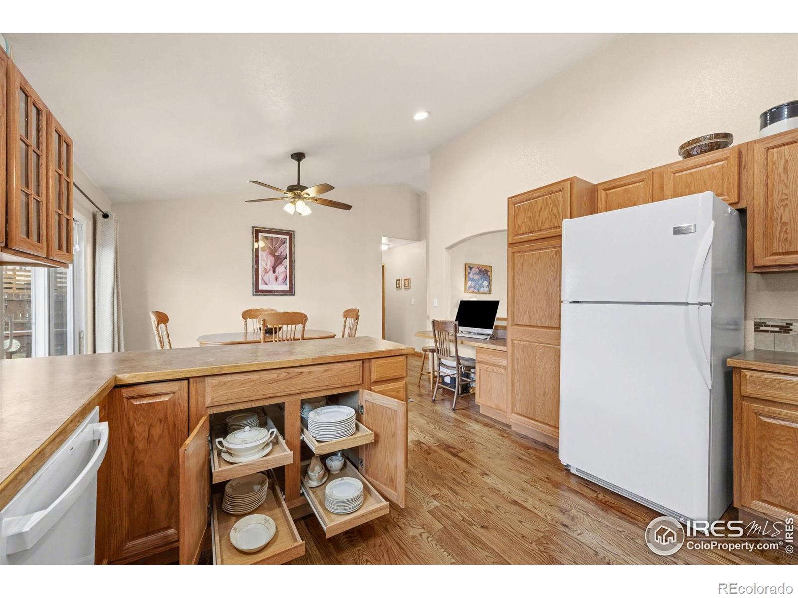 Move-in ready and beautifully maintained! This inviting 4-bedroom, 3-bath home is ideal for first-time buyers or those looking to downsize without sacrificing space. Situated on a .23-acre lot, this home offers rare features, including RV PARKING, a dog run, and for garden enthusiasts, a rain barrel, compost bin, and a small shed with an enclosed area-perfect for chickens, hobbies, or extra storage. Inside, you'll find solid wood oak floors on the main level, a spacious eat-in kitchen with abundant cabinetry, and beautiful updated bathrooms throughout. The primary bedroom features two walk-in closets. The finished basement adds flexible living space and a large unfinished storage room. Other features include quality Andersen windows and a built-in radon mitigation system. The professionally landscaped yard truly says "welcome," showcasing beautiful perennial beds featured on the Greeley Home Tour and a thoughtfully designed, easy-care backyard. Gardeners will appreciate the well-placed flower beds. Evans Pioneer park that offers two playgrounds, a nine hole disc golf course, walking paths, picnic area, and a large open turf/grass area, is just a short walk away, adding to the home's appeal. A rare combination of comfort, character, and outdoor space-this one is a must-see!