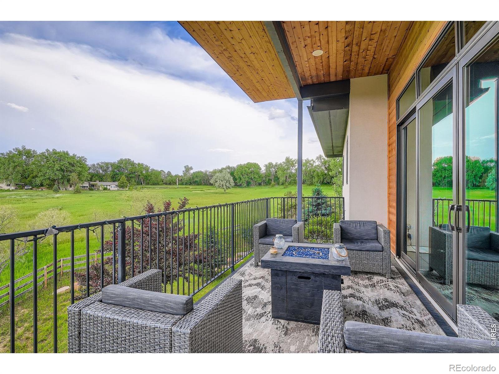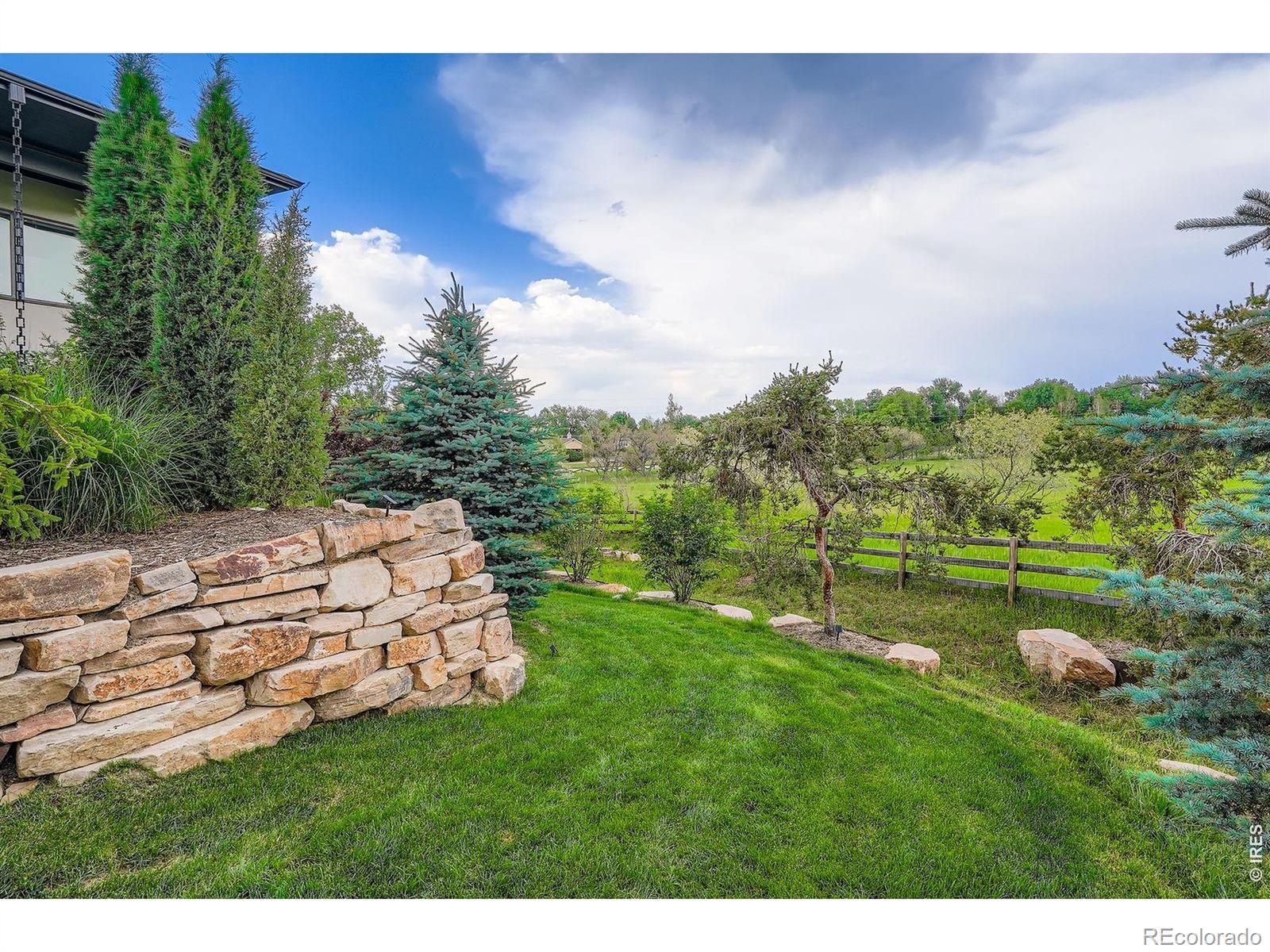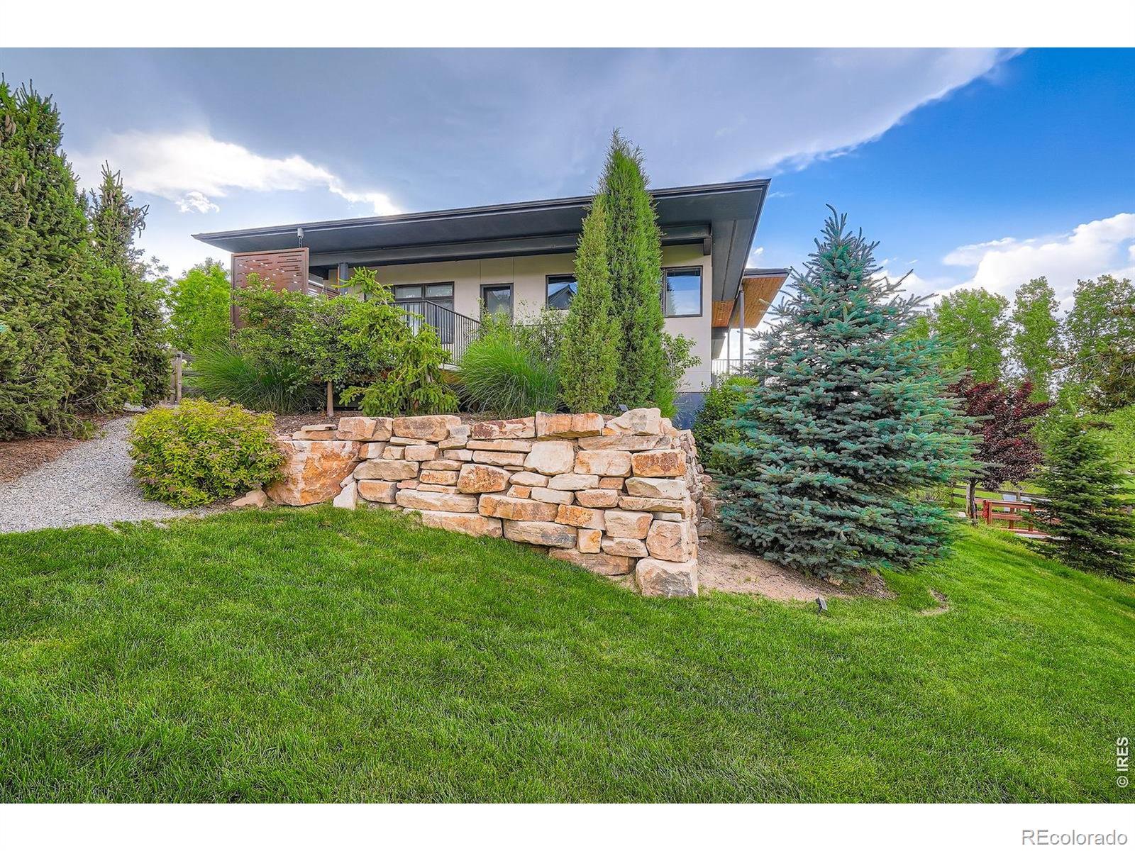 At the end of a quiet Niwot cul-de-sac, 8568 Foxhaven Drive showcases contemporary design with modern finishes, natural surroundings, and exceptional energy efficiency. This 2017 custom-built ranch offers 5,467 square feet on a 0.40-acre lot, creating a "right-sized" layout for everyday comfort and effortless entertaining.The main level features twelve-foot ceilings, natural wood and stone, industrial steel accents, and four indoor-outdoor living areas. An open, light-filled floor plan is enhanced by multi-zoned radiant floor heat, energy-efficient heating and cooling splits, automatic solar roller blinds, and UV-tinted Pella energy-rated windows.The gourmet kitchen includes Thermador and SubZero appliances, a striking single-slab Brazilian quartz island, walk-in pantry, custom steel range vent, walnut-finished cabinetry, and glass-front built-ins.The primary suite offers a spa-like ensuite with dual-head shower, oversized tub, walk-in closet, and private deck with a saline hot tub. Also on the main level are two additional bedrooms, two full baths, and a built-in work or studio space. A single step leads to the oversized, finished three-car garage with dual EV chargers and new doors.The lower level features a spacious recreation room with eight-foot sliding doors opening to a fenced, professionally landscaped yard bordering open meadow. With a kitchenette, theater room, office or play area, climate-controlled storage, and a private guest suite with dual-head steam shower, hosting is seamless.A west-facing driveway benefits from afternoon sun for easier winter maintenance. Just moments from downtown Niwot, the market, restaurants, and trails, 8568 Foxhaven is move-in ready.