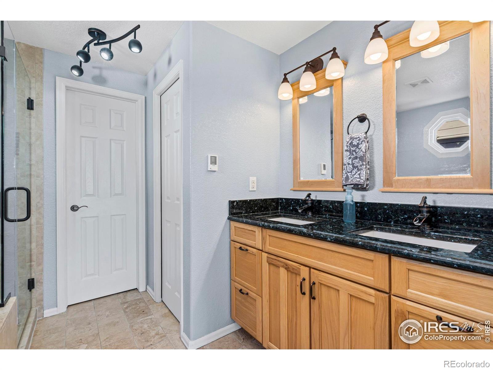 Immaculately maintained in the highly sought-after Ridgewood Hills subdivision, located just minutes from the community pool and Coyote Ridge Elementary. This home blends timeless appeal with modern updates, offering a comfortable, move-in-ready retreat in Fort Collins. This 4-bedroom, 3-bath residence features a main-floor primary suite with a fully remodeled bathroom designed for relaxation. Highlights include electric radiant heated tile floors, dual shower heads, a Roman tub faucet, granite countertops, and elegant travertine finishes-creating a true spa-like escape. The main level also showcases upgraded wood flooring and a bright, open layout ideal for both everyday living and entertaining. The kitchen is thoughtfully updated with granite countertops, a sleek glass tile backsplash, and new appliances installed in May 2024, including a stove, microwave, and refrigerator. Additional enhancements include new Performance Windows (December 2024), a Quiet Cool whole-house fan (May 2023), and an Active Radon System, providing energy-efficient comfort and added peace of mind. Step outside to the stamped concrete back patio, perfect for relaxing evenings or hosting gatherings. Residents of Ridgewood Hills enjoy access to lush greenbelts, a neighborhood pool, and a playground nearby, while outdoor enthusiasts will appreciate the adjacent ridgeline trail offering panoramic views of Longs Peak and Horsetooth Rock-ideal for morning hikes or weekend adventures.