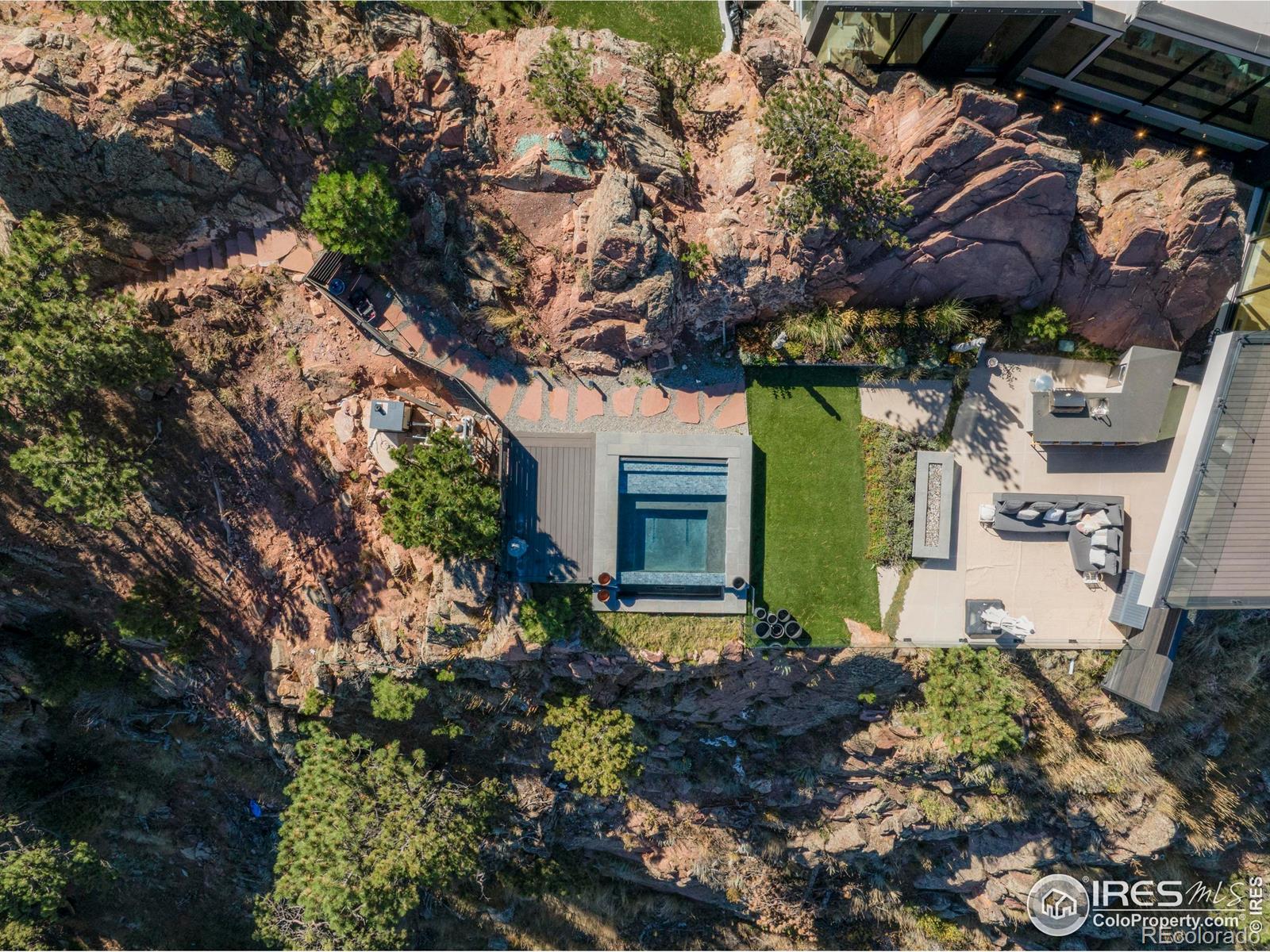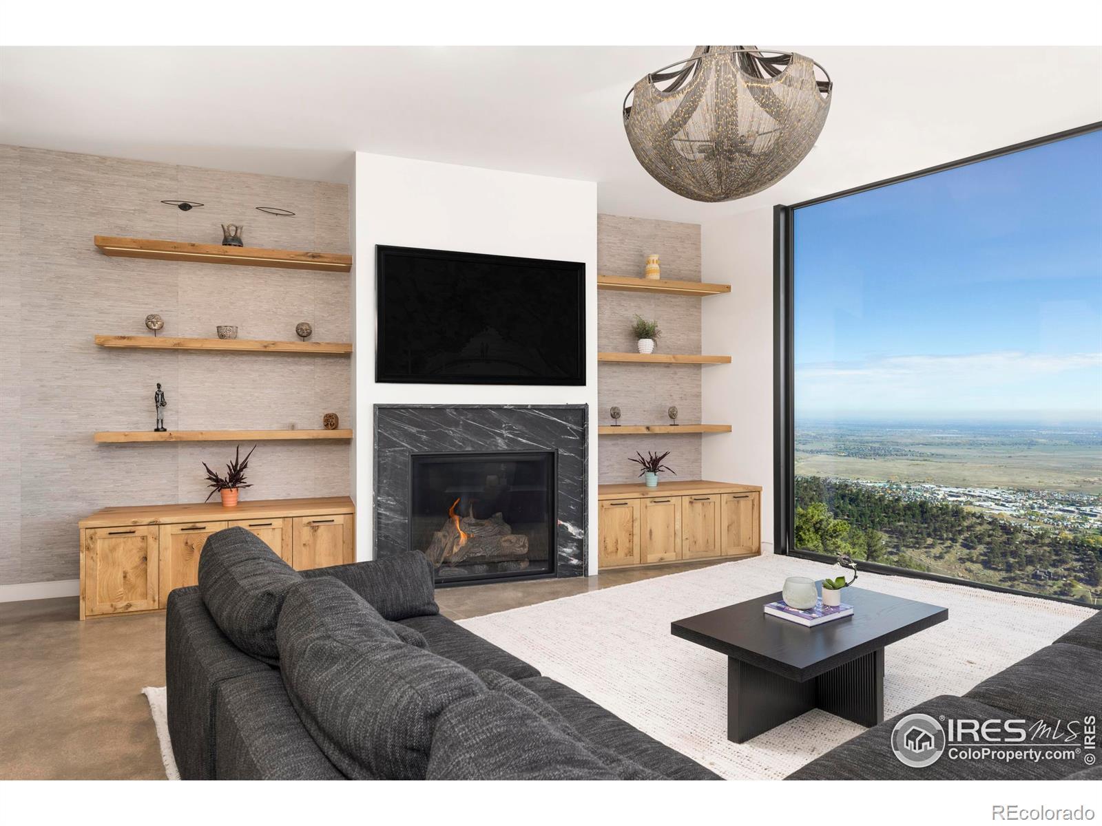 Nestled into the sandstone cliffs of Pine Brook Hills and offered for the first time since construction, 1151 Timber Lane is a bold architectural statement fusing modern design with Colorado's natural beauty. Conceived by Adam Oklesh Architects, this 5-bedroom, 5-bathroom residence captures panoramic east and west views while offering exceptional privacy and outdoor amenities. Set on 2.44 acres, the 4,348-square-foot home features soaring ceilings, floor-to-ceiling windows, and sophisticated natural finishes including rift-sawn white oak and stone. Radiant floor heating and energy-efficient, fire-rated materials ensure long-term comfort and resilience. The great room, anchored by a sleek fireplace, flows into the chef's kitchen with vaulted ceilings, luxury appliances, striking marble island, and breakfast nook connecting to the dining area. The private wing includes a luxurious primary suite with spa-like bath and walk-in closet, two additional en-suite bedrooms, and a flexible fourth bedroom or office. A fifth bedroom suite offers ideal guest or studio space. Expansive sliding glass doors lead to two outdoor sanctuaries. The main terrace features a fire pit, built-in grill and outdoor kitchen, oversized bar seating, outdoor heaters, and a dramatic infinity-edge pool floating above Boulder valley. The west-facing flat yard offers a sunlit retreat surrounded by rock outcroppings, mature trees, and custom Marpa landscaping. The rooftop deck provides unforgettable sunrises, sunsets, and stargazing with views stretching from the Flatirons to city lights and the Continental Divide. Additional features include an attached 2-car garage with generous storage and elevator access throughout. Experience Boulder living at its finest; luxurious interiors, architectural significance, unmatched outdoor spaces, and jaw-dropping 360-degree views in a one-of-a-kind retreat just 6 minutes from Broadway and 12 minutes from downtown Boulder.