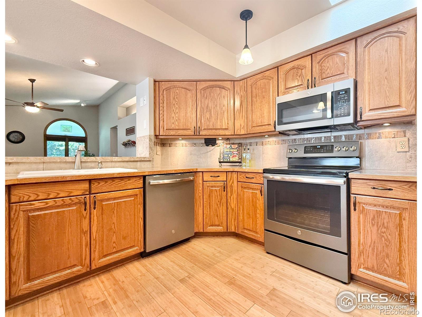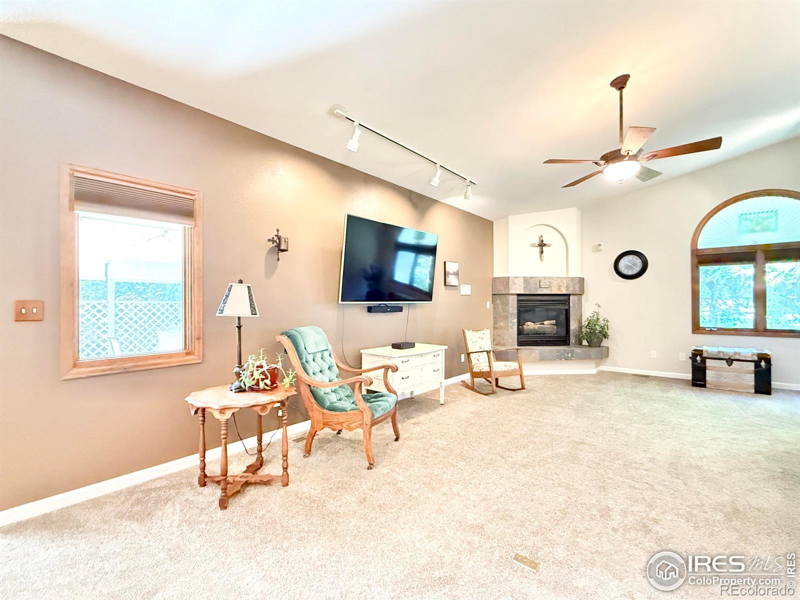 Welcome to this beautifully maintained ranch-style 4-bedroom, 3-bath home. Brick/stucco in a quiet neighborhood located in the central area of town to enjoy dining, shopping, and parks. Features include vaulted ceilings with skylights throughout. Large Primary suite with 5-piece bathroom, main floor laundry, and open concept kitchen/living area. The living room features a gas fireplace that you will find to be warm and inviting year-round. Basement fully finished with ample storage and living space. The secluded patio offers a quiet and peaceful space to enjoy your morning coffee or evening visits. Enjoy the beauty of the park in your own backyard. The HOA covers exterior water, lawn care, watering, mowing, tree trimming, snow removal, and trash. Roof installed in the fall of 2018 with class 4, hail-resistant shingles.