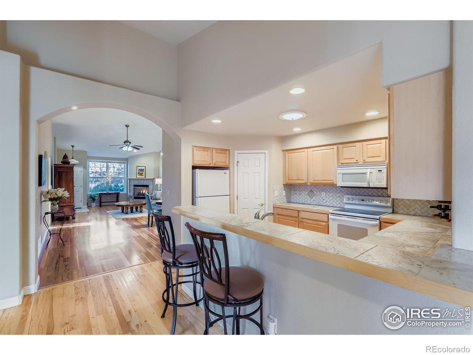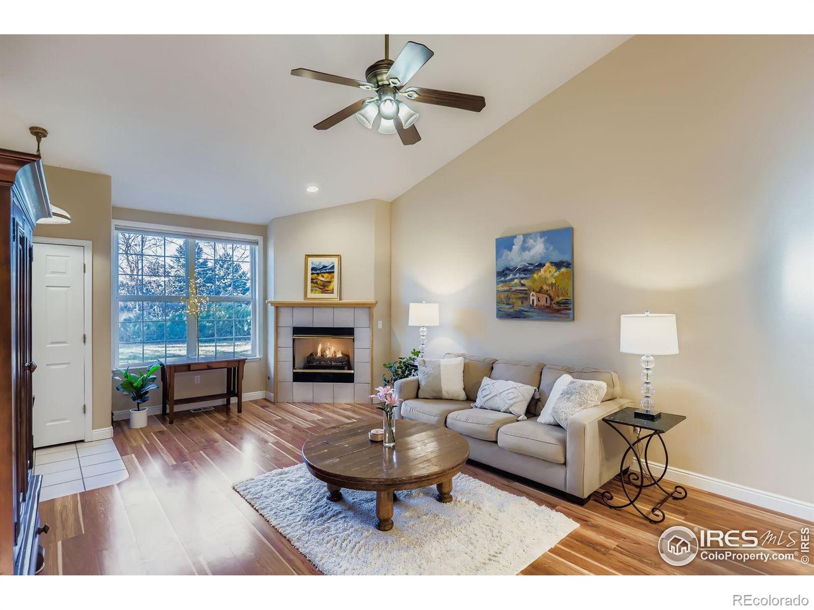 Rare find in the prestigious gated enclave of Hover Woods. This impeccably maintained ranch-style residence perfect for buyers seeking a sophisticated, low-maintenance lifestyle without compromising on quality or comfort.This home offers a true single-level floor plan. Upon entering, you are greeted by soaring vaulted ceilings and an expansive open-concept layout that feels bright, airy, and spacious. The home features a generous kitchen that flows seamlessly into a living area anchored by a cozy fireplace.The primary suite serves as a private sanctuary, boasting generous proportions, a large walk-in closet, and a spa-like ensuite bath. A versatile second bedroom with high ceilings provides the perfect space for guests, hobbies, or a home office.. Outside, a private patio offers a quiet space for morning coffee among lush, mature landscaping.Life at Hover Woods means trading the burdens of home maintenance for a premier "lock-and-leave" lifestyle. The HOA meticulously handles all landscaping, snow removal, and exterior upkeep, allowing you more time to enjoy the incredible surroundings. This home is perfectly situated just steps from Hover Acres Park, offering immediate access to paved walking trails, pickleball courts, and serene green spaces. Located minutes from Longmont's best dining, shopping, and medical facilities, this home combines the security of a gated community with the convenience of an active neighborhood. If you are ready to simplify your life while elevating your surroundings, this single-level gem is the perfect place to call home.