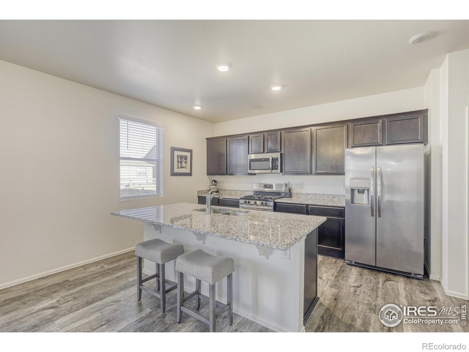 Located in Windshire Park this beautiful 2 story home features 3 bedroom, 3 bath, plus a loft/office space. This home has an open floor plan with luxury vinyl plank flooring throughout the main level and an abundance of natural light! The kitchen includes a stainless-steel gas range, refrigerator and dishwasher, granite counter tops, espresso cabinets and a walk-in pantry. Spacious primary suite with an ensuite bath and walk-in closet. South facing corner lot that backs to a greenbelt! Community amenities include non-potable irrigation water, an outdoor pool, open spaces, and walking trails. Conveniently located minutes from Windsor's shopping, dining, and entertainment, with easy access to Windsor Lake and the Windsor Community Recreation Center. Schedule your showing today!