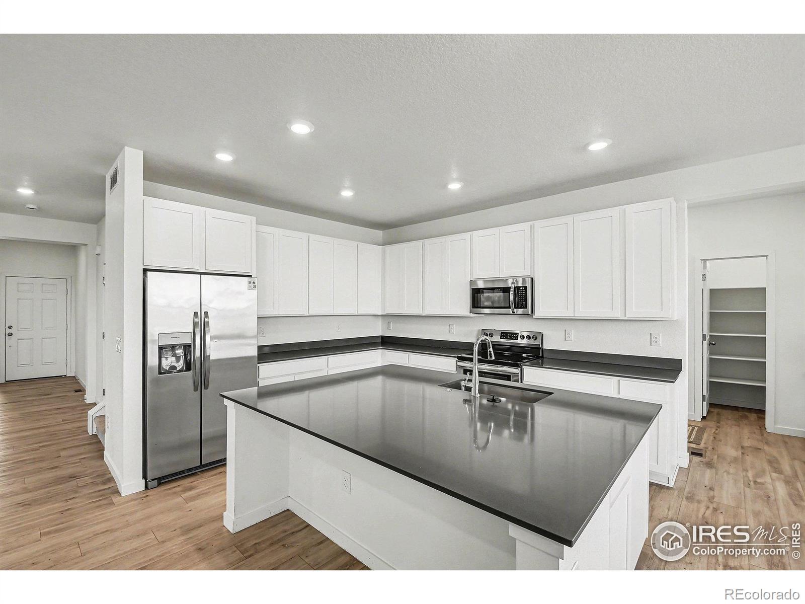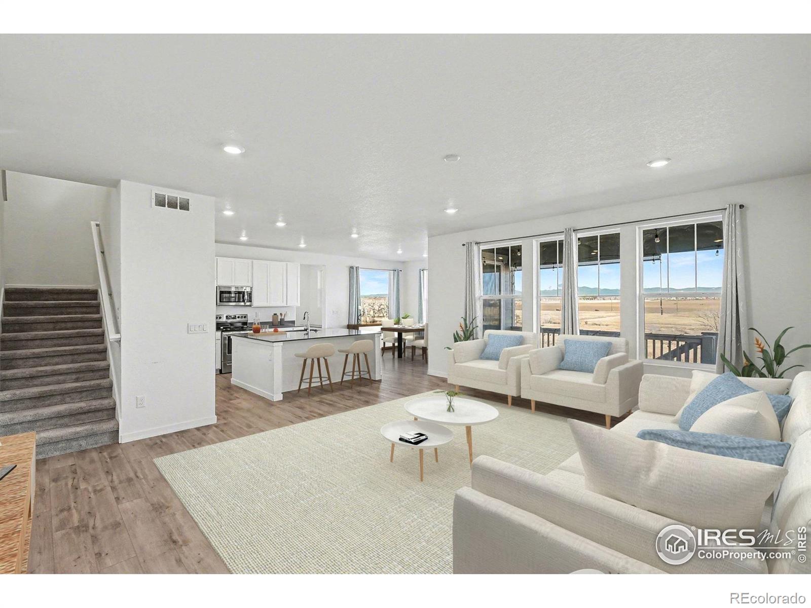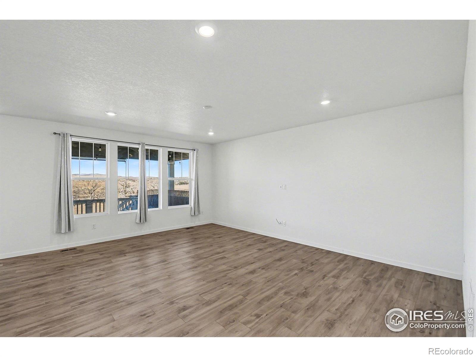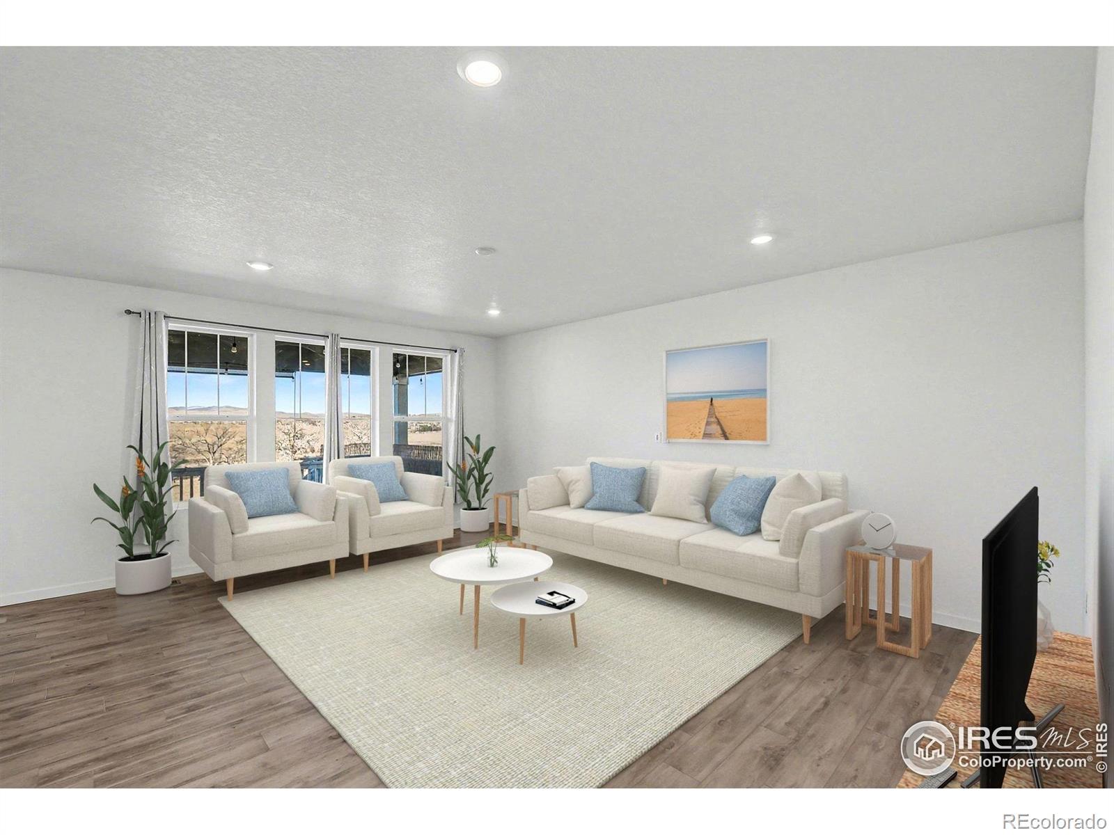 WOW! Quiet country like location with a serene backyard including a large private covered deck with a stunning view of the full mountain range from Fort Collins to the Boulder Flatirons! This four bedroom, 4 bathroom home, equipped with a 4 car garage including refrigerator, is move in ready! Open floor plan, HUGE kitchen island, and covered deck all overlook the mountain range to the West. Unfinished WALKOUT basement ready for your expansion. Don't want to miss this one or the beautiful mountain sunsets!