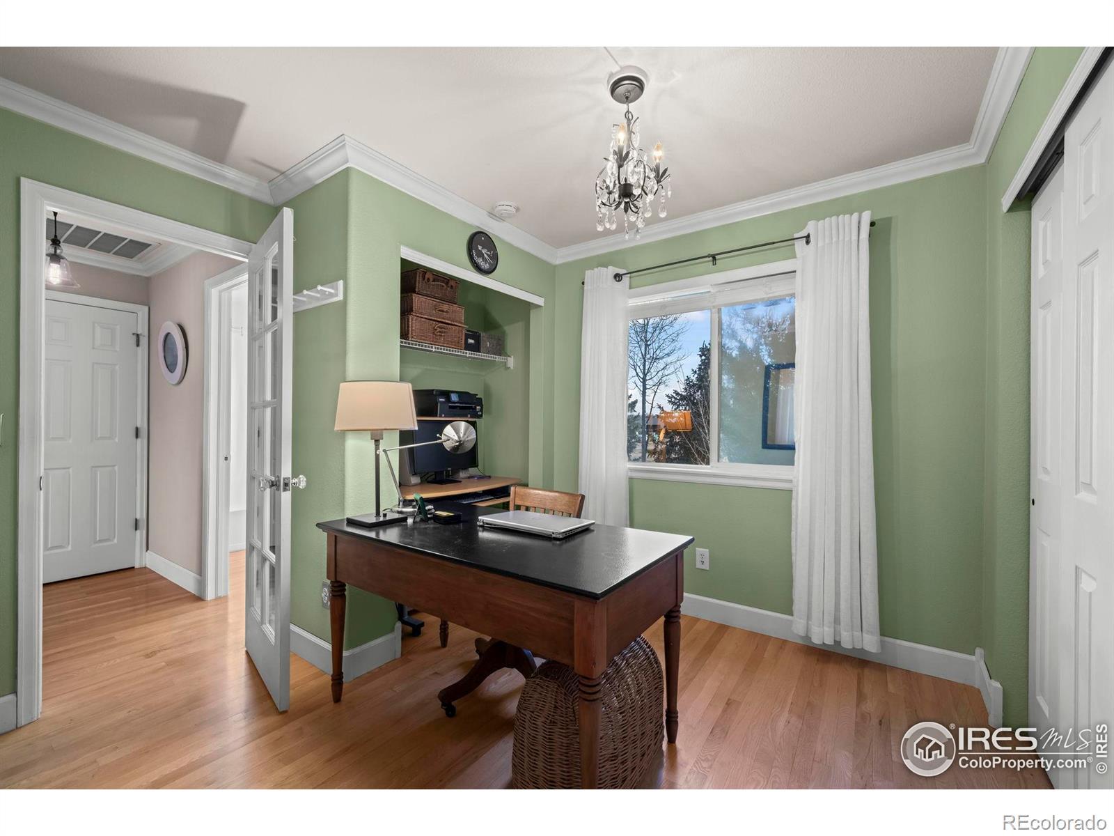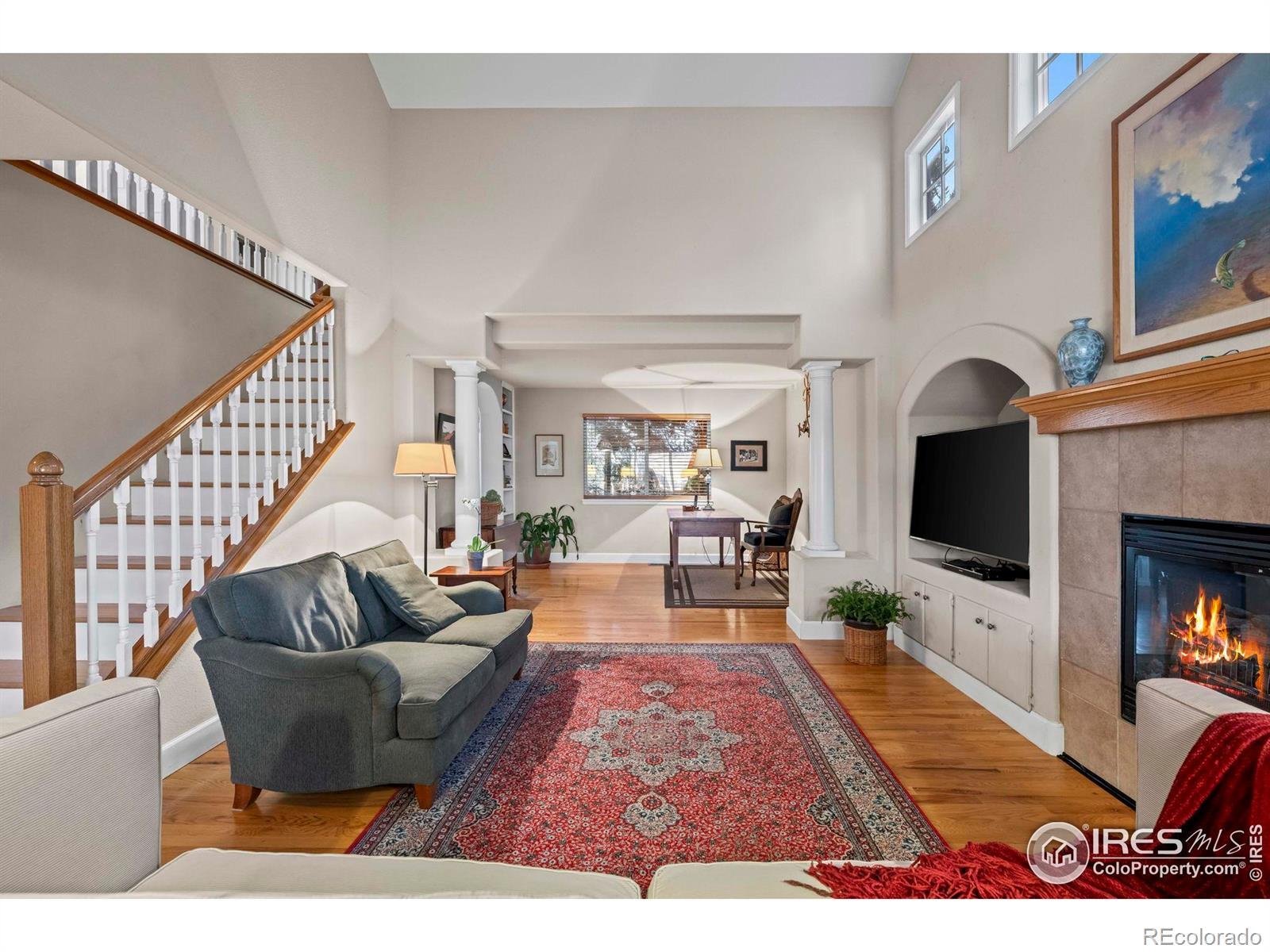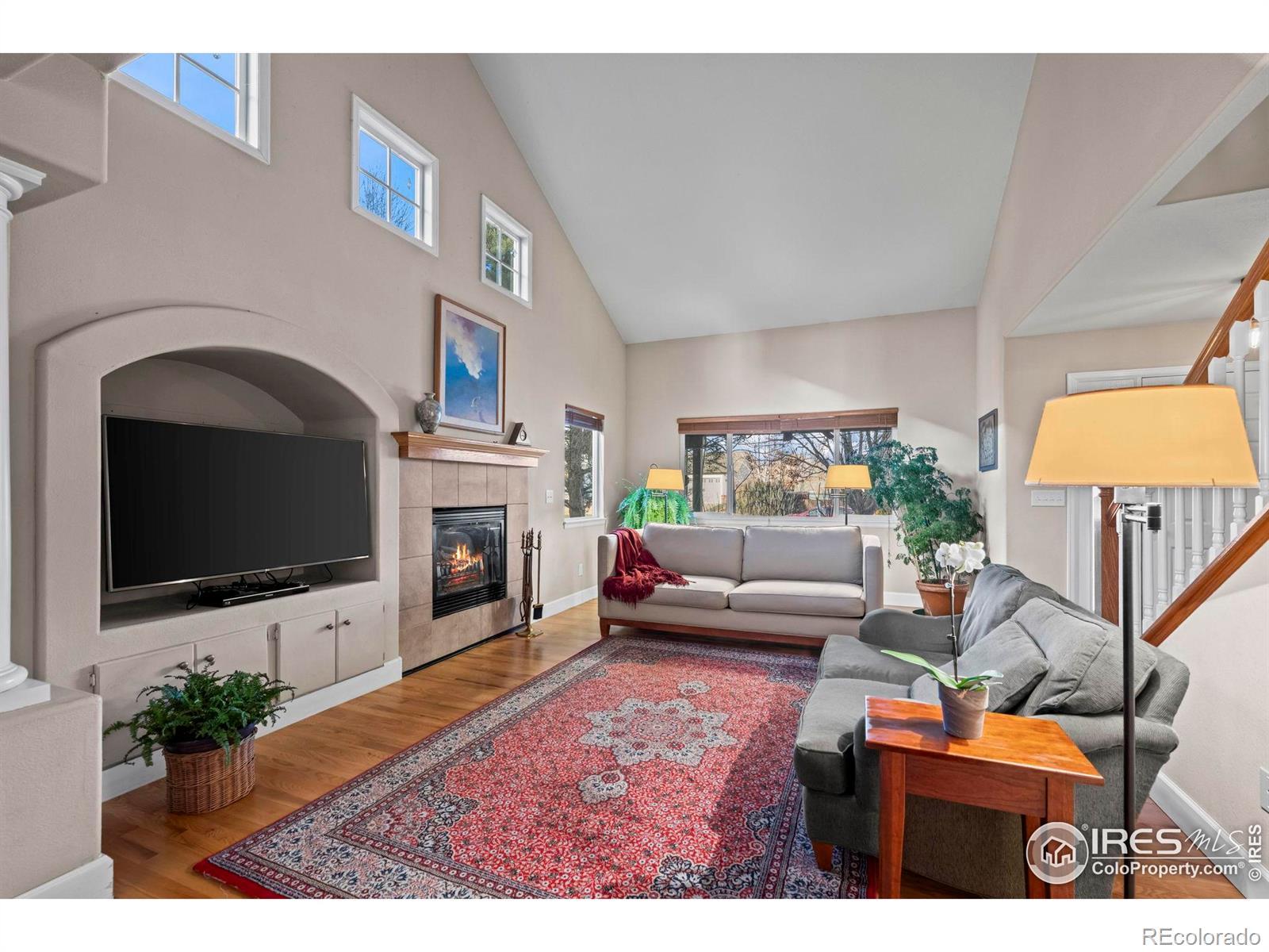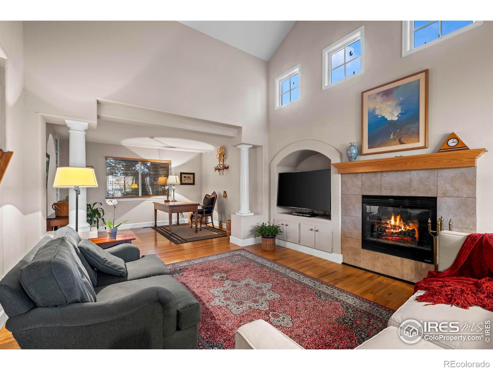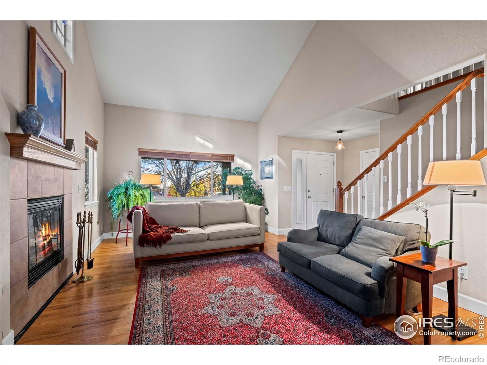Fabulous PRICE for this nearly 2800 sq ft, well-kept home with a welcoming front porch on a quiet cul-de-sac, offering a gardener's delight. Home appraised for $545,000 11/25. Light and bright with hardwood floors throughout, the main level features an inviting living room with a vaulted ceiling, fireplace, and an adjacent dining room or study.The south-facing kitchen includes a charming breakfast nook that opens to a patio with lush summer garden views-perfect for indoor-outdoor living.Upstairs, hardwood floors continue into the spacious primary suite featuring vaulted ceilings, custom doors, crown molding, a five-piece bath, walk-in closet, and a cozy window seat overlooking the garden, creating a peaceful retreat.Two additional bedrooms and a second full bath complete the upper level.Finished basement includes a kitchen & 3/4 bath and kitchen offering flexible space for guests or extended living. An oversized, insulated garage provides a workshop area plus ample storage.Enjoy nearby Settlers Park, offering a playground along with basketball, tennis, and pickleball courts. With convenient access to I-25 just 7 minutes away, commuting to Denver, Boulder, or Fort Collins is easy. NO Metro District. See this home today!