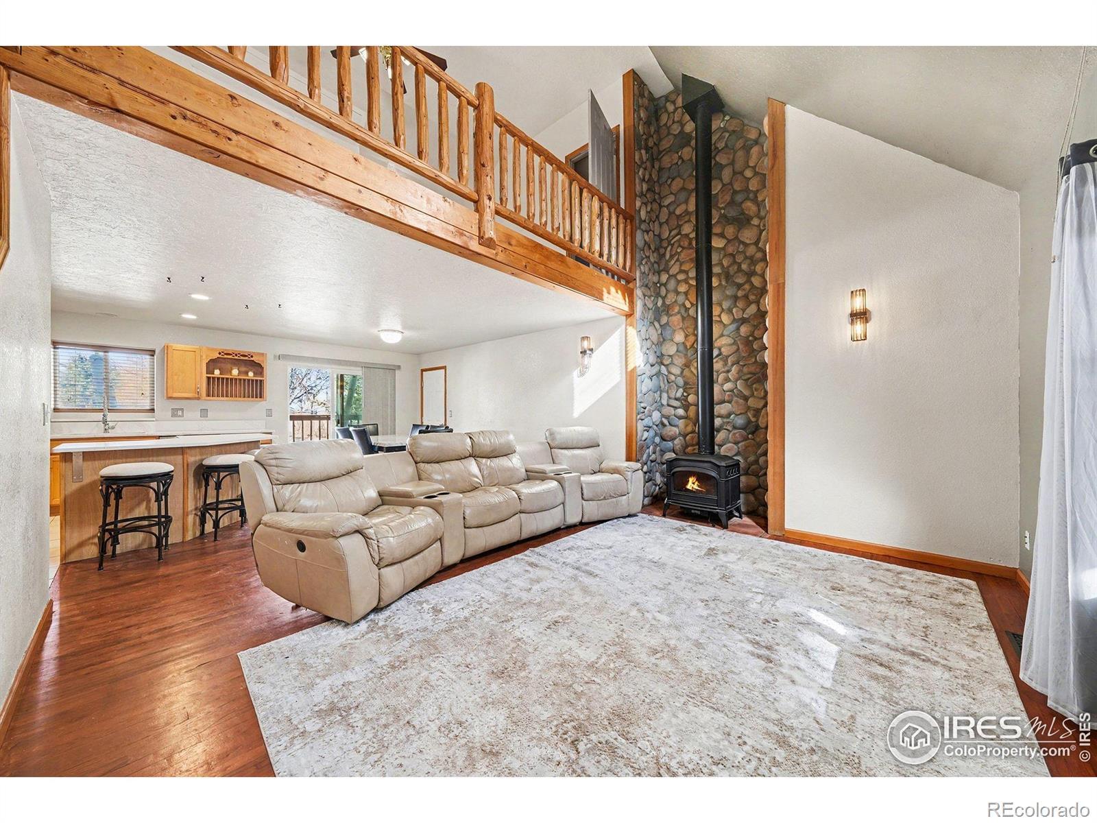 Not your average Greeley home. With its mountain-cabin vibe, rustic charm, and gorgeous log-accented exterior, this property breaks away from the sea of cookie-cutter homes that surround it. Nestled in the heart of the sought-after West Point neighborhood, this 5-bedroom, 4-bath standout offers the rare combination of warmth, character, and smart-home convenience - all in one move-in-ready package. The home's favorable southeast exposure provides excellent natural light and helps with faster snow melt during Colorado winters, a practical advantage for daily living. Inside, enjoy the ease of true main-floor living, with two bedrooms and two full bathrooms on the main level - perfect for flexibility, accessibility, or multigenerational needs. The open-concept kitchen is where functionality meets wow-factor: featuring quartz countertops, a large center island, and an impressive suite of brand-new smart stainless-steel appliances. And these aren't just buzzwords - you can watch TV directly from the refrigerator, have it track your grocery inventory, and even place orders straight from your screen to your local supermarket. The fridge, oven, microwave, washer, and dryer are all connected through a smart hub, giving you full control from your phone. Upstairs, a sun-filled loft adds bonus flexibility - ideal for a home office, library, or creative space. Downstairs, the fully finished basement features a private home theater room, brand-new carpet and fresh paint, and a third full suite with a primary bedroom and private ensuite - creating a secluded retreat. Outside, enjoy the mature landscaping, towering pines, and river rock details that complete the home's one-of-a-kind feel. The lot offers natural privacy rarely found in suburban settings. Located close to McAuliffe STEM Academy, neighborhood parks, and everyday shopping, this home combines the look and feel of a mountain getaway with everyday practicality - in one of Greeley's most desirable communities.