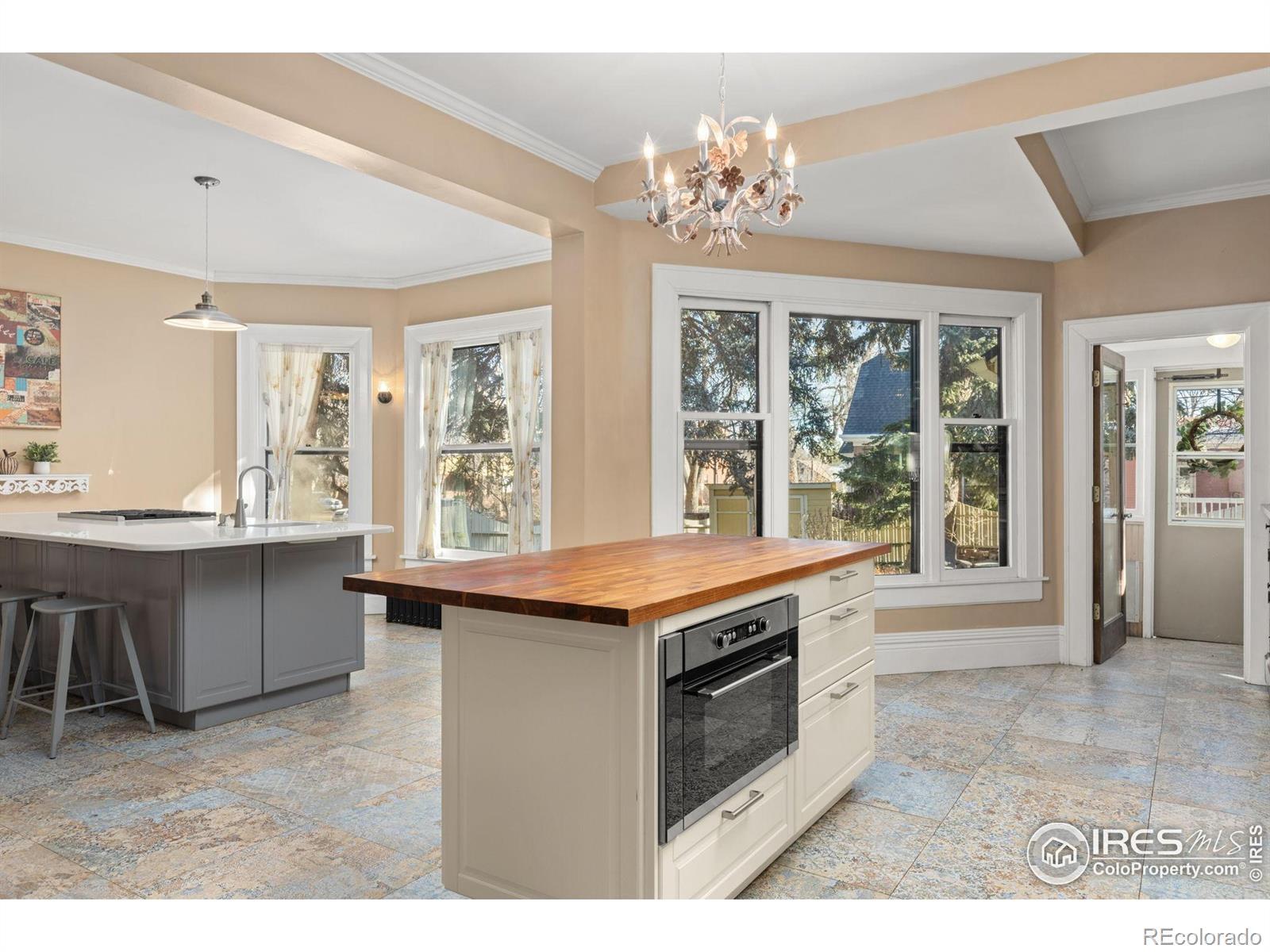 Old Town Longmont Corner of 4th & Pratt Perfectly placed across from Thompson Park and just two blocks from Longmont's vibrant Main Street, this one-of-a-kind Victorian blends historic beauty with thoughtful, modern updates-and the warmth of a truly special neighborhood. Wrapped in mature trees and a fully fenced yard, this home offers both privacy and connection. Enjoy two flagstone patios ideal for summer dining, garden gatherings, or lazy afternoons in the shade. Step inside through the enclosed sunroom-a cozy, heated space with both windows and screens, perfect for morning coffee or evening cocktails as you watch the neighborhood come alive. The main level features soaring ceilings, original hardwoods, built-ins, oversized windows, and a wood-burning fireplace that anchors the elegant dining area. The open-concept kitchen is rare for a home of this era-offering two generous islands, top-tier stainless steel appliances, a charming built-in display cabinet, and effortless flow for entertaining and daily living. Upstairs, four spacious bedrooms await. The primary suite feels like a treehouse retreat, complete with a walk-in closet and private balcony perched among the leaves. A 2nd bedrm also opens onto its own balcony overlooking the peaceful backyard. The updated bath features radiant heated floors, a luxurious double-head shower, and a custom-imported vanity-adding a bespoke touch to your daily routine. Downstairs, the finished basement includes a third bathroom, storage, a workshop space, and a large flex room perfect for yoga, art, or quiet escape. The original cast-iron boiler is displayed alongside a new high-efficiency system, honoring the past while preparing for the future. Other upgrades include a new roof and 44 storm-protected windows, combining energy efficiency with enduring charm. With no through traffic on Pratt Street, this is one of Old Town's most peaceful and community-centered pockets.