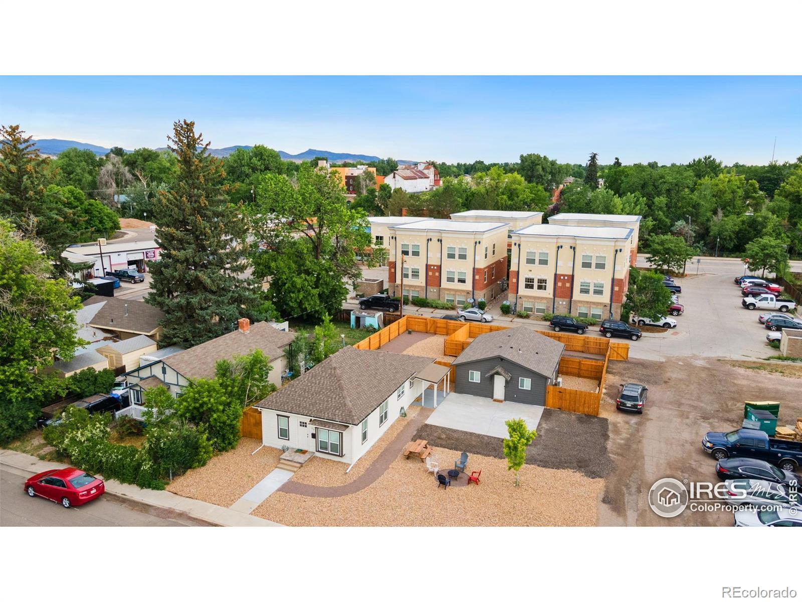 Rare downtown Loveland investment or owner-occupant opportunity. Two fully detached, ranch-style homes on one lot plus RV/Tiny Home parking with full hookups. Both homes are stair-free and were updated in 2022. Zoned Downtown-buyers to verify permitted uses with the City of Loveland.Main home at 123 2nd St SE features 3 beds, 2 baths, open floor plan, stainless steel appliances, and included washer/dryer, with on-site and street parking. Second home at 121 2nd St SE offers 2 beds, 1 bath, updated kitchen with stainless steel appliances and quartz countertops, included washer/dryer, and a private fenced backyard with patio.Property includes a 47-ft RV or Tiny Home space, fully fenced for privacy. Ideal for owner-occupy one unit and rent the others, multi-generational living, or income potential. Minutes to downtown Loveland and approx. 45 minutes to Estes Park and Rocky Mountain National Park. No HOA and no metro tax. See additional documents for list of improvements.