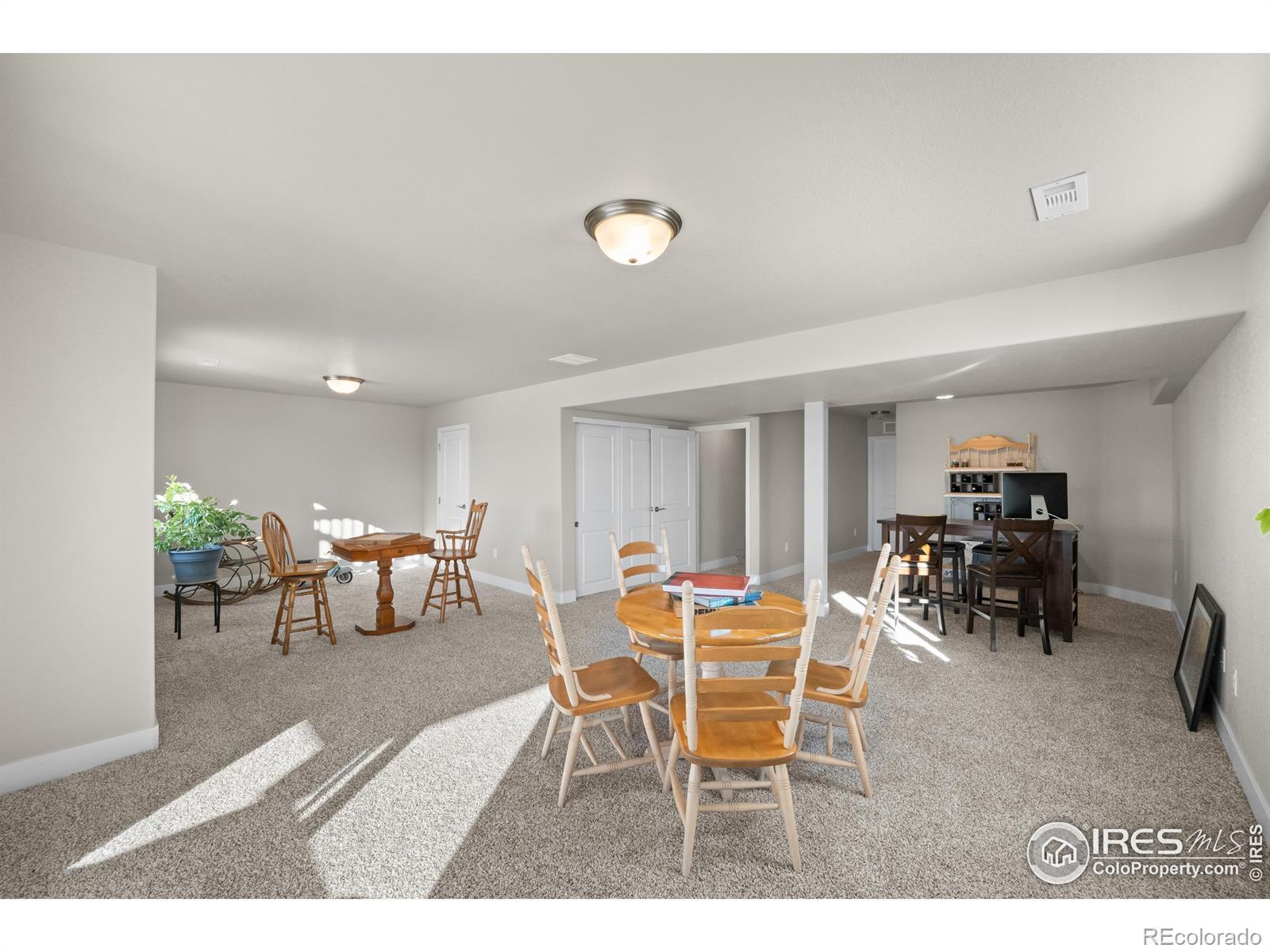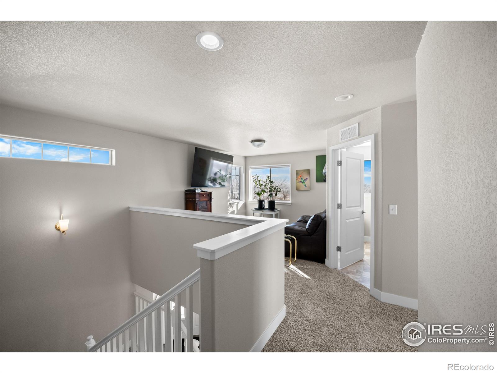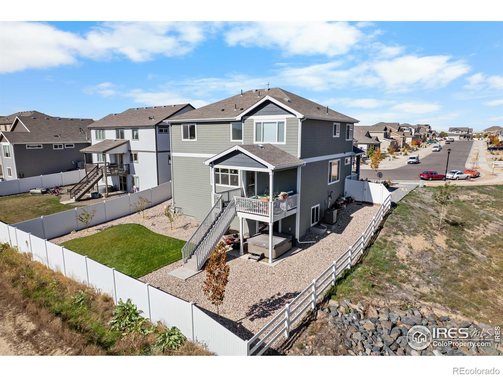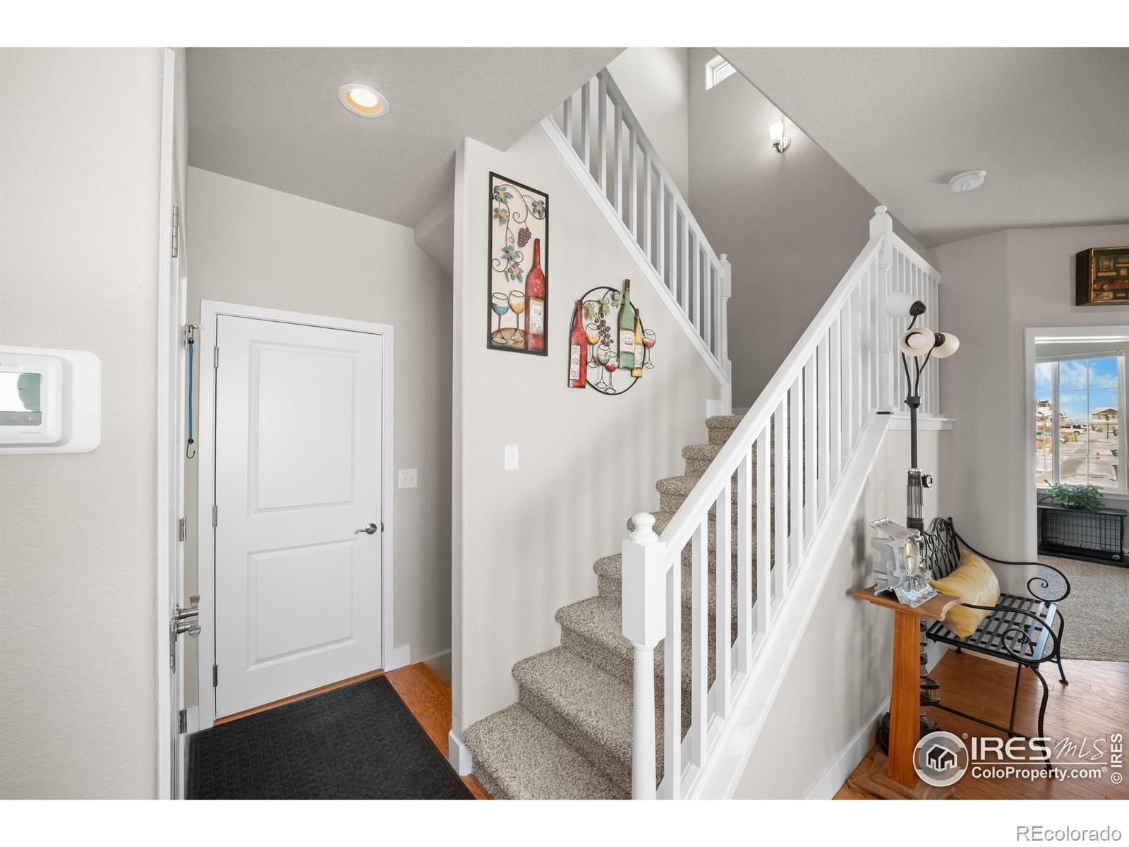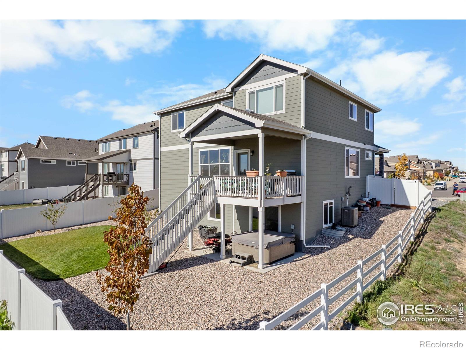 $15,000 CLOSING CREDIT INCLUDED IN THE PRICE!! This lot may be the most private lot you can have in a subdivision, (no neighbors behind you or to the side of you), yet have expansive views and sunset views to the west and easy access to the Walking Trails! This is one of those "GEM" homes....from the moment you walk in, you feel warm and welcome. This home sits up higher in the front (but without the steep typical stairs) & gives you a Walk-Out Basement in the back, making for lots of sunlight & spectacular views. There is a large Entry Way with a Built-In Coat & Shoe Nook, a half Bath & a Front Office with Glass French Doors. Then heading past the upstairs Staircase, is the Open Kitchen & Living Room/Great Room. The Dining Nook has true antique Barnwood from an old Loveland Barn and a very cool Chandelier made of Resin Antlers, looking out a HUGE picture window to the East. A Large Kitchen Island with Gray & White Granite with Garnet Red Flecks immediately catches your eye! Black Appliances including; Side by Side Refrigerator, Microwave, Dishwasher and Smooth Top Stove/Oven. Adjoining Great Room is good size with Beautiful Wood Built-In Bookcases that will stay & also has a HUGE picture window looking out to the South & the Back Door to the Covered Deck. Upstairs is another Living Room Space in the Loft, the Laundry Room with Blue Matching Washer & Dryer Set & 4 Bedrooms! The Large Primary Bedroom and Bath boast a Large Walk-In Closet with 2 CUSTOM SHOE SHELVES, an Oversized Soaking Tub, Separate Walk-In Shower and door to the Toilet. All Upstairs Bedrooms are good size rooms. Finished Walk-Out Basement has a large Open Room that has room to add a Kitchenette or Wet Bar Area, a Full Bathroom & a Large Storage Room. (Storage Shelves are not included). Front & Backyard Low-Maintenance Landscaping is gorgeous! Fully Fenced 6' White Vinyl Fencing on 3 sides & White Vinyl Split Rail Fence on East Side, plus another covered Back Patio & close to Park/Playground.