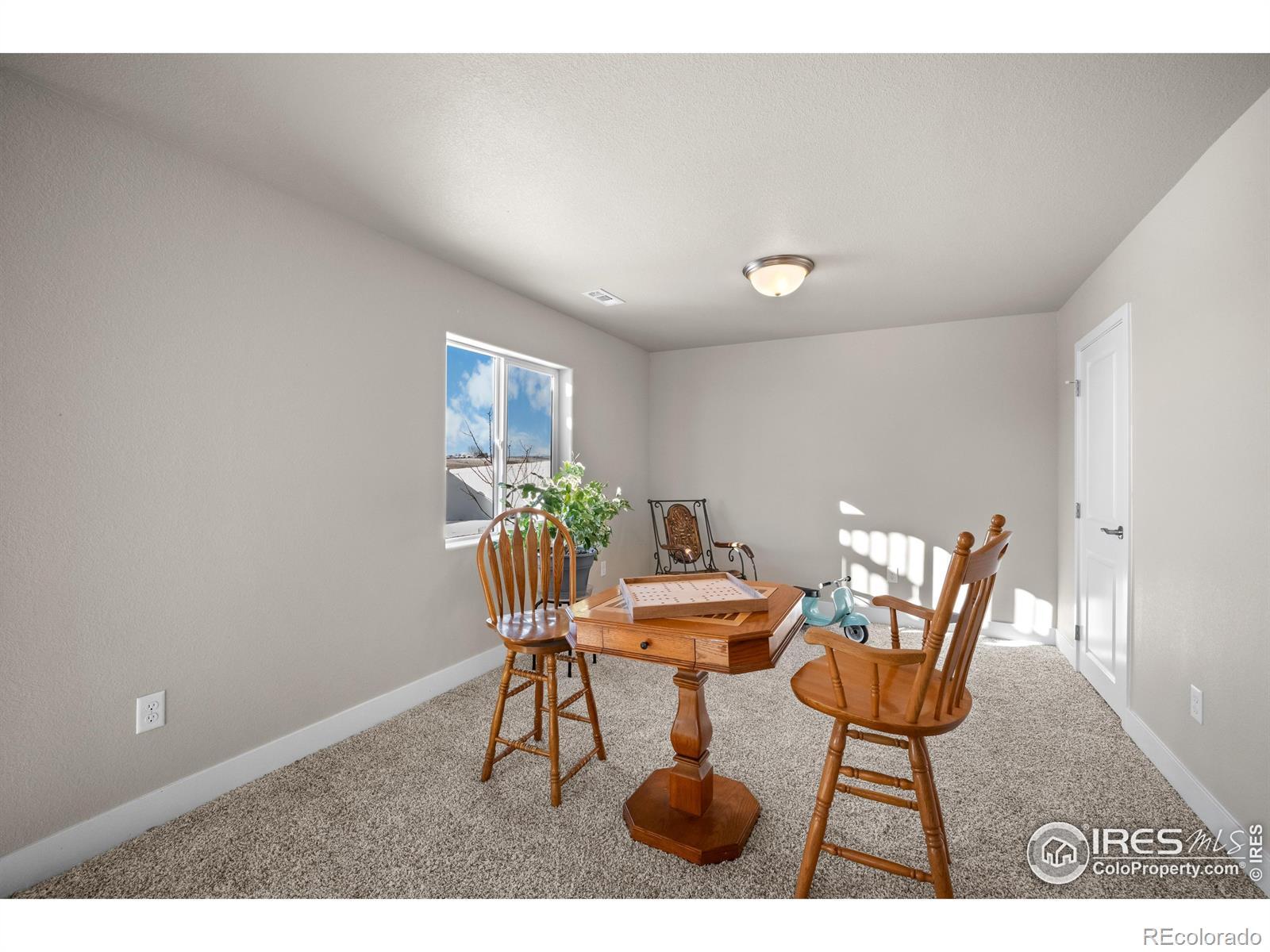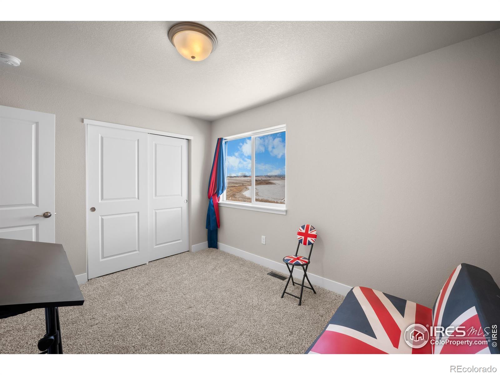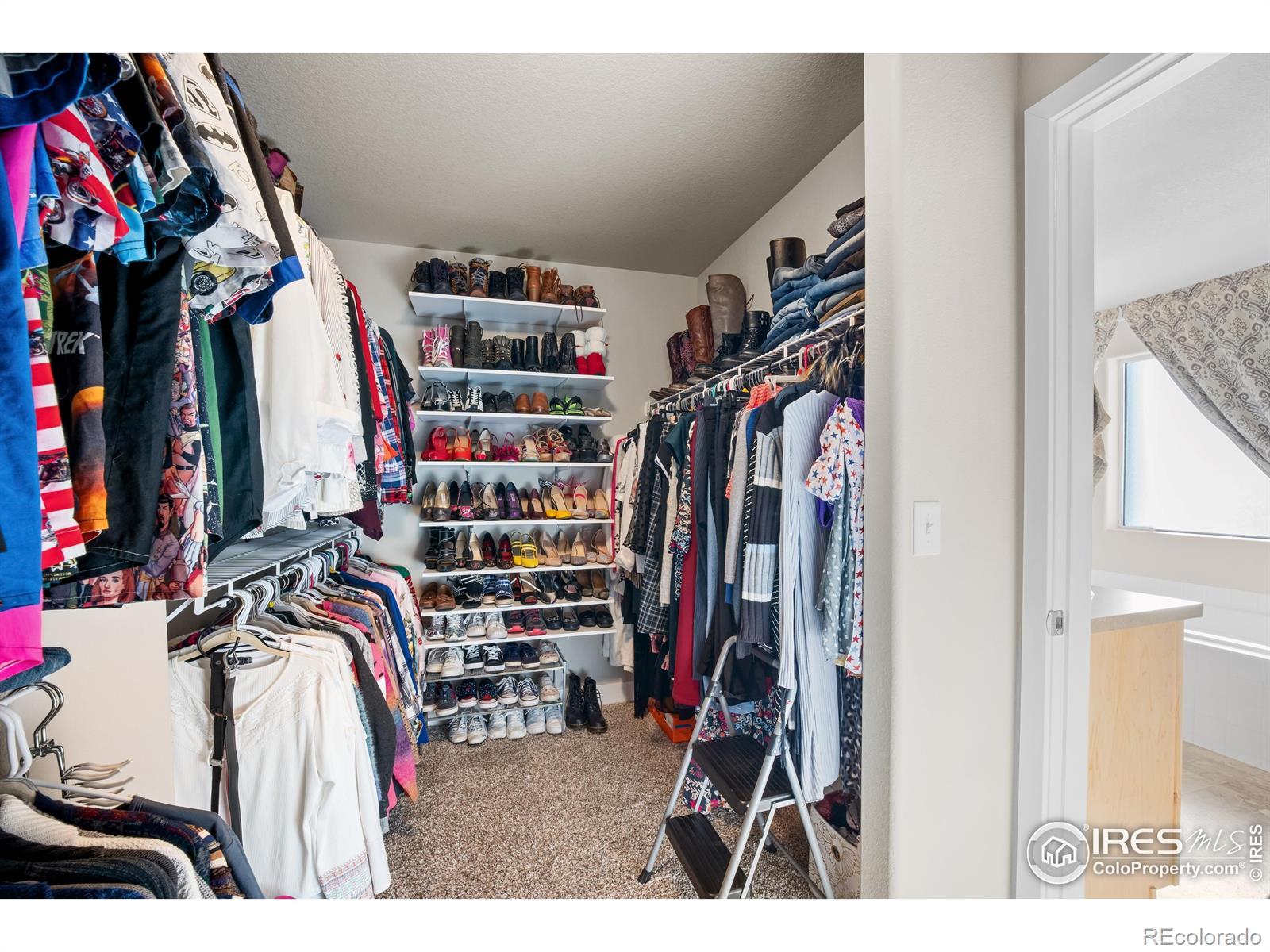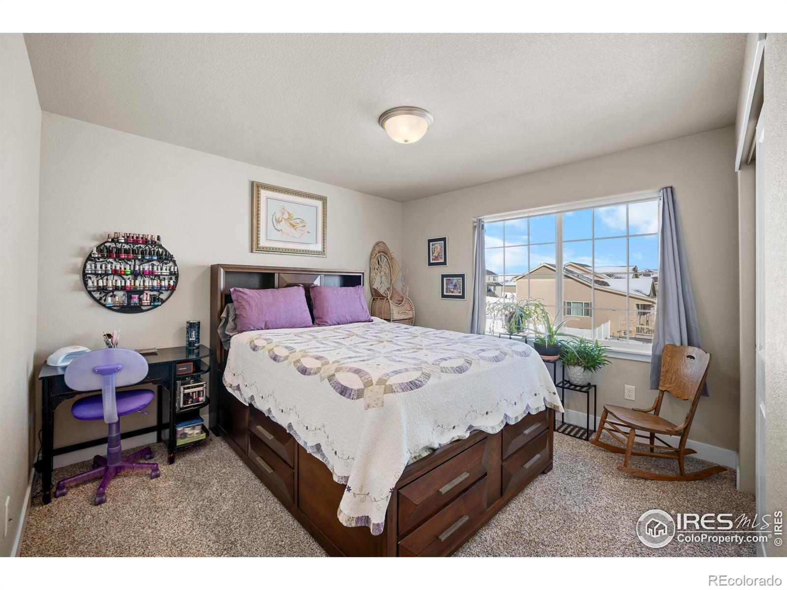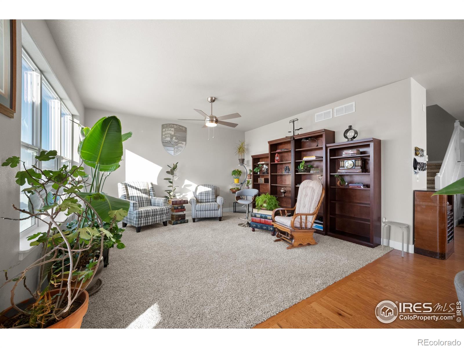 $15,000 CLOSING CREDIT INCLUDED IN THE PRICE!! This lot may be the most private lot you can have in a subdivision, (no neighbors behind you or to the side of you), yet have expansive views and sunset views to the west and easy access to the Walking Trails! This is one of those "GEM" homes....from the moment you walk in, you feel warm and welcome. This home sits up higher in the front (but without the steep typical stairs) & gives you a Walk-Out Basement in the back, making for lots of sunlight & spectacular views. There is a large Entry Way with a Built-In Coat & Shoe Nook, a half Bath & a Front Office with Glass French Doors. Then heading past the upstairs Staircase, is the Open Kitchen & Living Room/Great Room. The Dining Nook has true antique Barnwood from an old Loveland Barn and a very cool Chandelier made of Resin Antlers, looking out a HUGE picture window to the East. A Large Kitchen Island with Gray & White Granite with Garnet Red Flecks immediately catches your eye! Black Appliances including; Side by Side Refrigerator, Microwave, Dishwasher and Smooth Top Stove/Oven. Adjoining Great Room is good size with Beautiful Wood Built-In Bookcases that will stay & also has a HUGE picture window looking out to the South & the Back Door to the Covered Deck. Upstairs is another Living Room Space in the Loft, the Laundry Room with Blue Matching Washer & Dryer Set & 4 Bedrooms! The Large Primary Bedroom and Bath boast a Large Walk-In Closet with 2 CUSTOM SHOE SHELVES, an Oversized Soaking Tub, Separate Walk-In Shower and door to the Toilet. All Upstairs Bedrooms are good size rooms. Finished Walk-Out Basement has a large Open Room that has room to add a Kitchenette or Wet Bar Area, a Full Bathroom & a Large Storage Room. (Storage Shelves are not included). Front & Backyard Low-Maintenance Landscaping is gorgeous! Fully Fenced 6' White Vinyl Fencing on 3 sides & White Vinyl Split Rail Fence on East Side, plus another covered Back Patio & close to Park/Playground.
