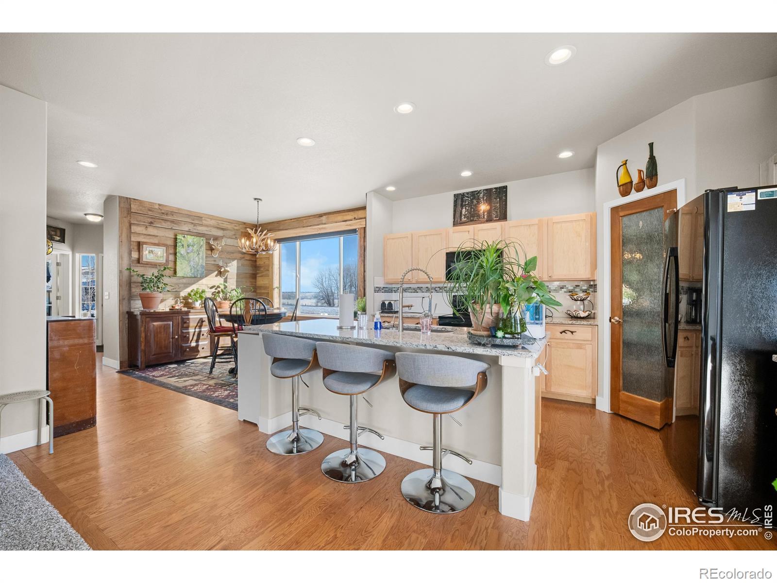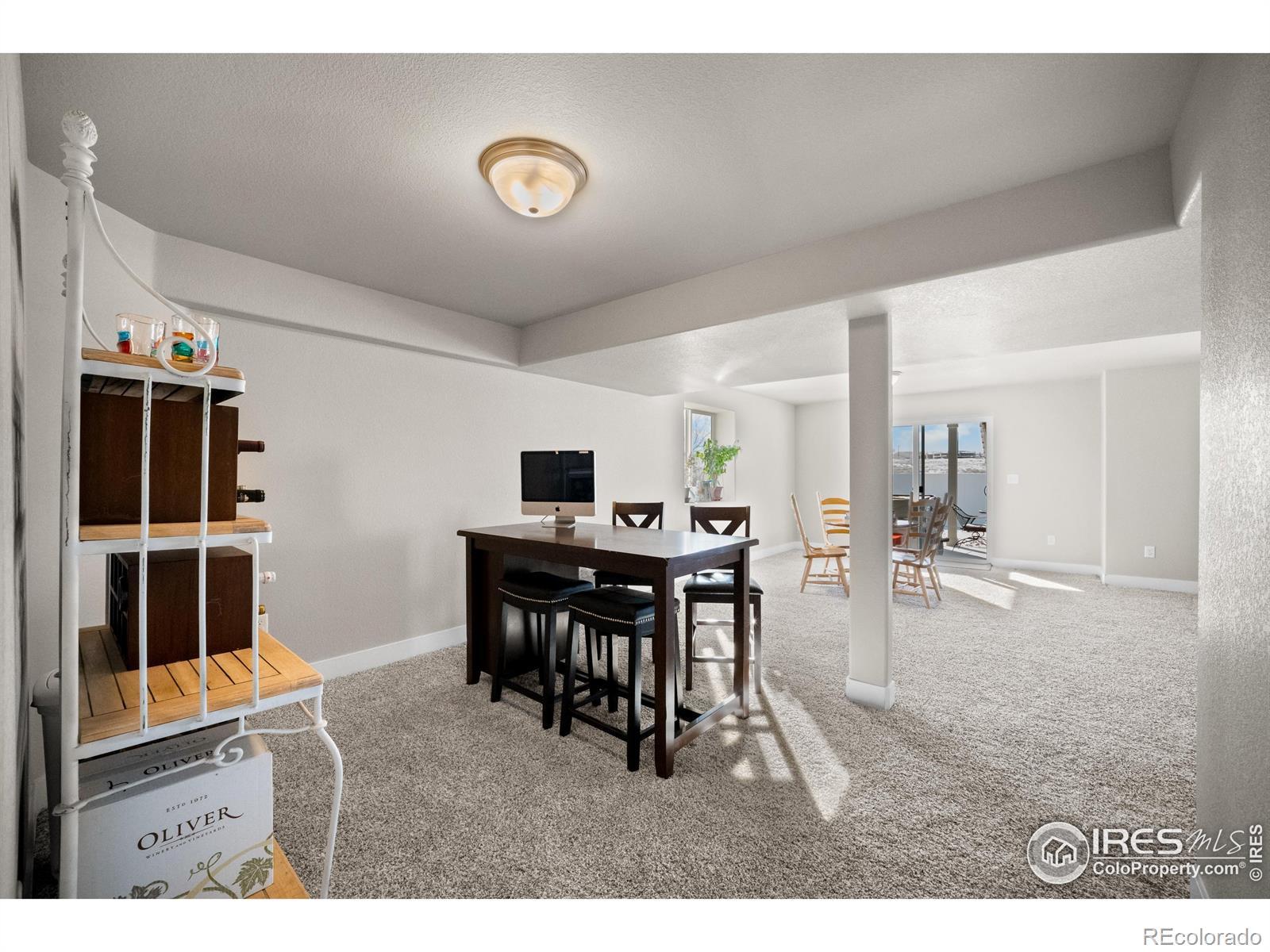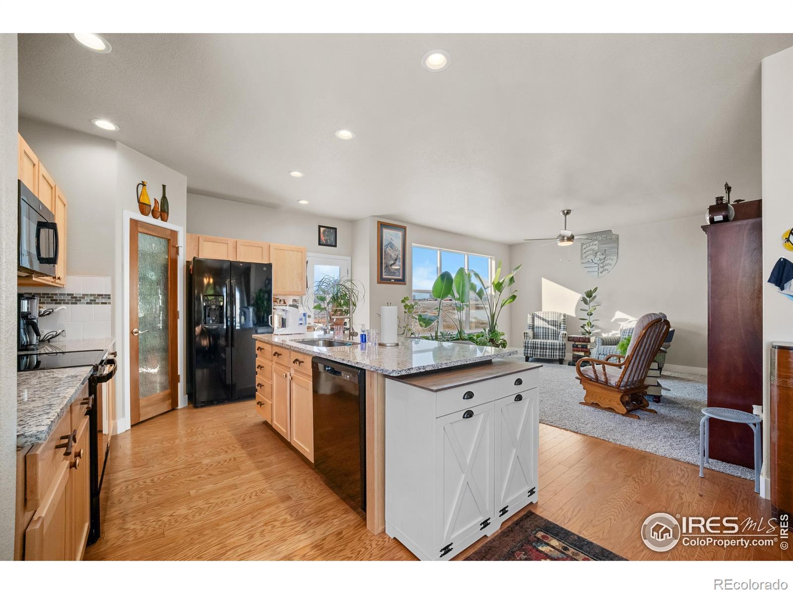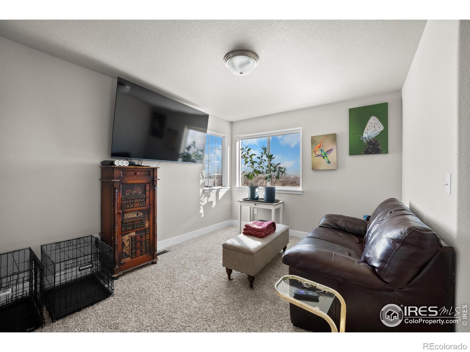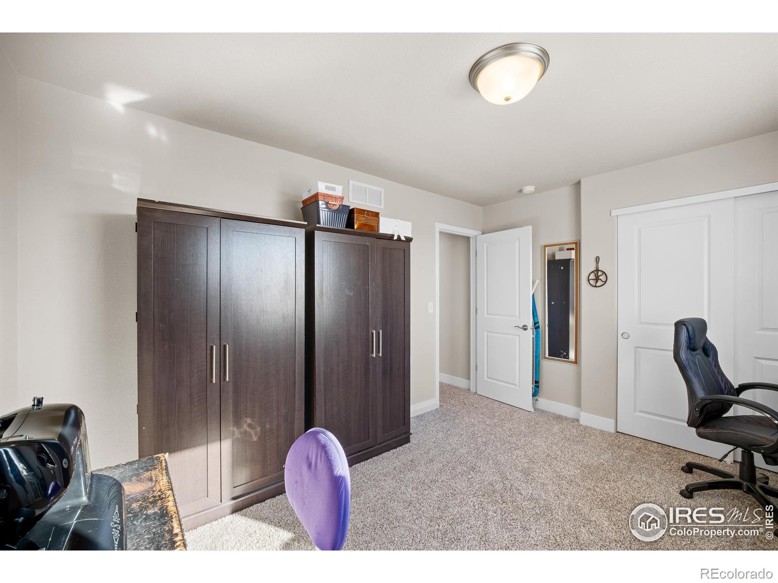 $15,000 CLOSING CREDIT INCLUDED IN THE PRICE!! This lot may be the most private lot you can have in a subdivision, (no neighbors behind you or to the side of you), yet have expansive views and sunset views to the west and easy access to the Walking Trails! This is one of those "GEM" homes....from the moment you walk in, you feel warm and welcome. This home sits up higher in the front (but without the steep typical stairs) & gives you a Walk-Out Basement in the back, making for lots of sunlight & spectacular views. There is a large Entry Way with a Built-In Coat & Shoe Nook, a half Bath & a Front Office with Glass French Doors. Then heading past the upstairs Staircase, is the Open Kitchen & Living Room/Great Room. The Dining Nook has true antique Barnwood from an old Loveland Barn and a very cool Chandelier made of Resin Antlers, looking out a HUGE picture window to the East. A Large Kitchen Island with Gray & White Granite with Garnet Red Flecks immediately catches your eye! Black Appliances including; Side by Side Refrigerator, Microwave, Dishwasher and Smooth Top Stove/Oven. Adjoining Great Room is good size with Beautiful Wood Built-In Bookcases that will stay & also has a HUGE picture window looking out to the South & the Back Door to the Covered Deck. Upstairs is another Living Room Space in the Loft, the Laundry Room with Blue Matching Washer & Dryer Set & 4 Bedrooms! The Large Primary Bedroom and Bath boast a Large Walk-In Closet with 2 CUSTOM SHOE SHELVES, an Oversized Soaking Tub, Separate Walk-In Shower and door to the Toilet. All Upstairs Bedrooms are good size rooms. Finished Walk-Out Basement has a large Open Room that has room to add a Kitchenette or Wet Bar Area, a Full Bathroom & a Large Storage Room. (Storage Shelves are not included). Front & Backyard Low-Maintenance Landscaping is gorgeous! Fully Fenced 6' White Vinyl Fencing on 3 sides & White Vinyl Split Rail Fence on East Side, plus another covered Back Patio & close to Park/Playground.