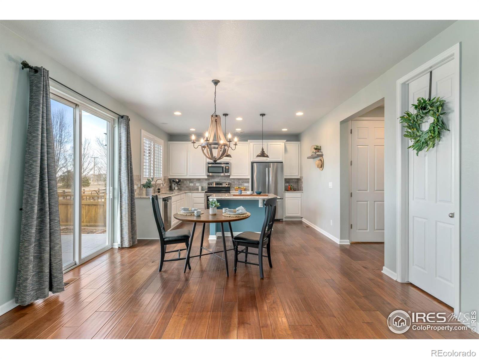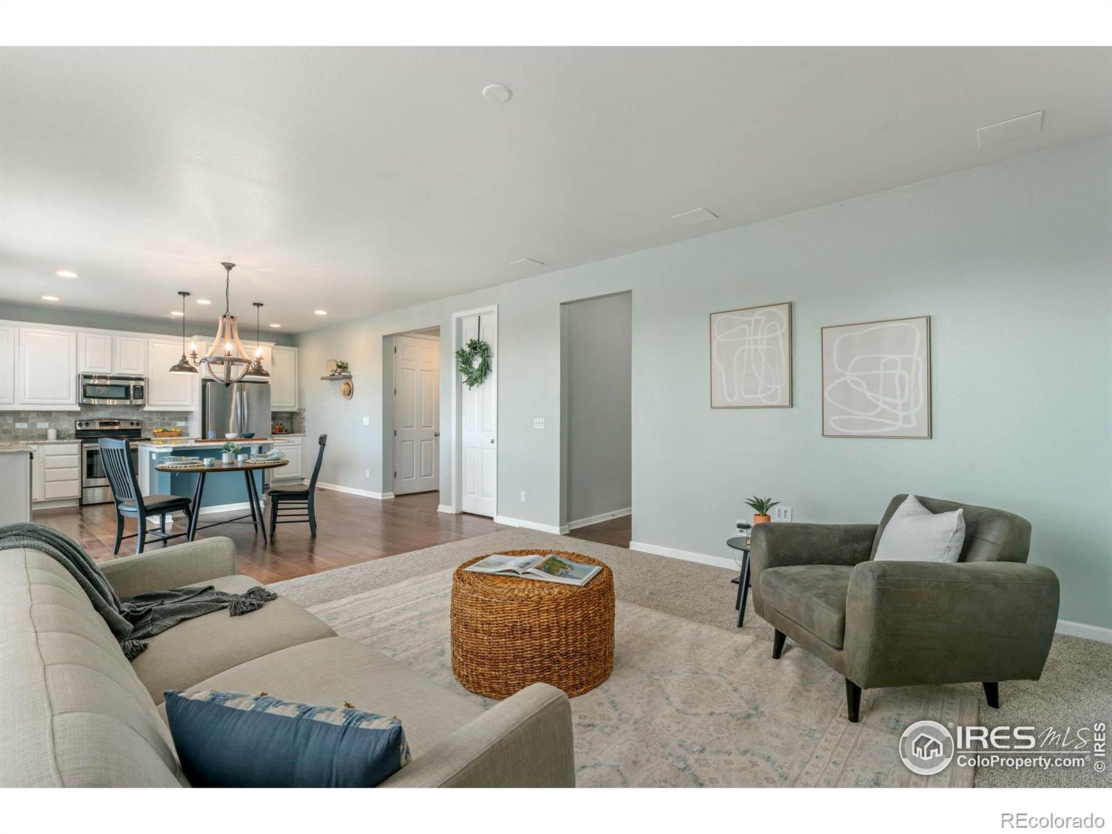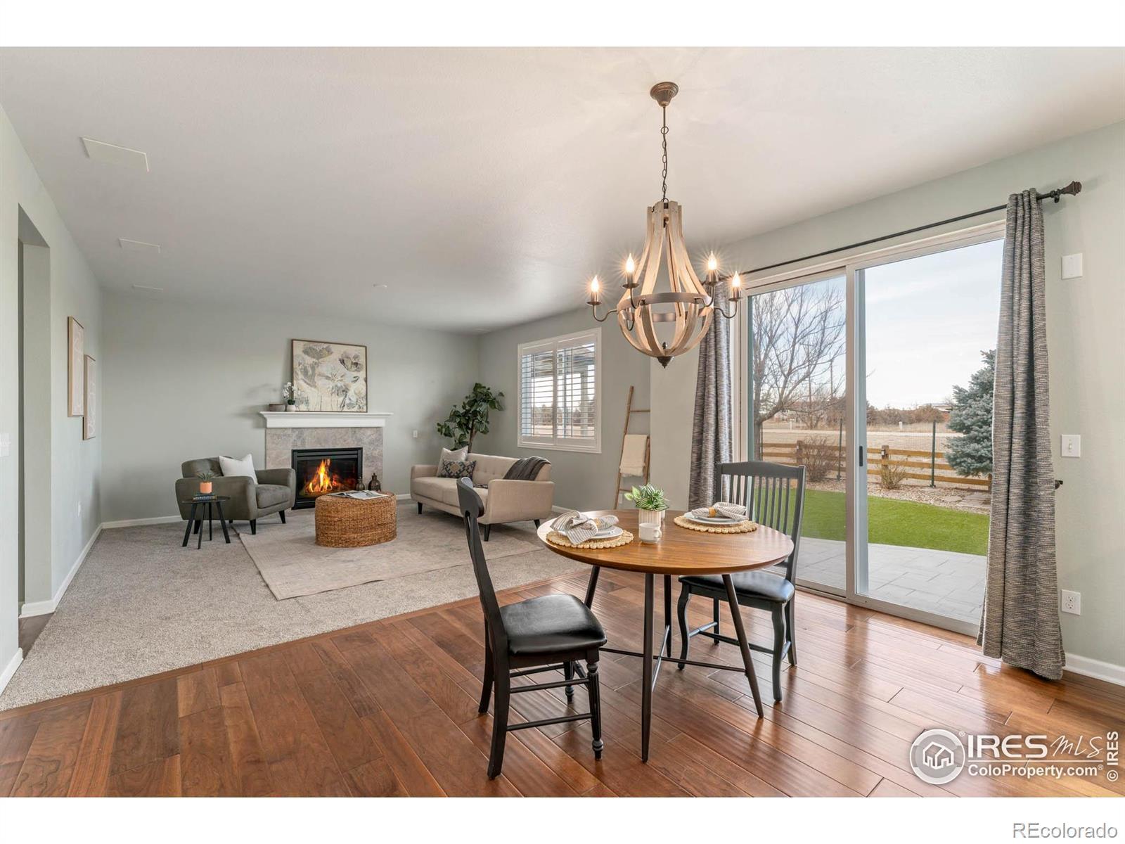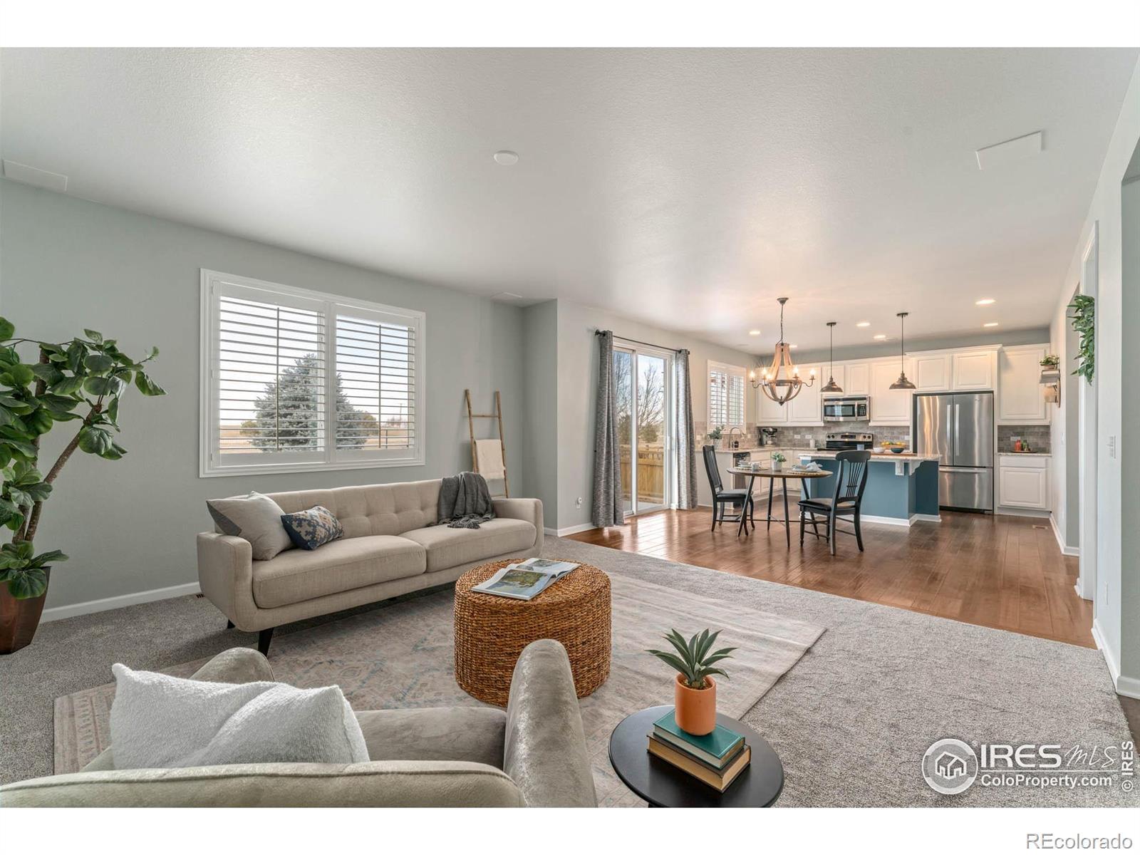 Open space with mountain views that are here to stay, this home offers a thoughtful blend of comfort, style, and future flexibility. With 3,132 total square feet, including a large unfinished basement, this three-bedroom, three-bath residence is designed to support everyday living while leaving room to grow.Covered front porch welcomes you in, creating the perfect spot for morning coffee or winding down in the evening. Inside, hardwood floors in the entry lead into a well-appointed kitchen featuring crisp white modern cabinetry, upgraded countertops, stylish lighting, stainless steel appliances, and a kitchen island with seating.Kitchen is plumbed for gas and flows seamlessly into the eat-in dining area, connecting effortlessly to the living space for easy entertaining. Sliding doors off the dining area open to a stamped concrete patio and a beautifully landscaped backyard that backs to open space. The result is a peaceful outdoor setting with expansive views and a sense of privacy that is increasingly hard to find.Living room is anchored by a gas fireplace and filled with natural light from a large picture window, creating a warm and inviting gathering space. Convenient half bath completes the main level. Upstairs, a loft offers flexible use as a TV room, office, etc. The primary retreat features tray ceilings, abundant natural light, and an ensuite bathroom with double vanities, a large walk-in shower, bathtub, white cabinetry, and a spacious walk-in closet. Two additional bedrooms share a modern bathroom with a tile shower. Large second-floor laundry room with ample storage adds everyday convenience. Unfinished basement provides endless potential for a future recreation room, workout space, home theater, allowing the next owner to customize the space to fit their lifestyle. Community pool, upgraded finishes throughout, mountain views, and open space that will remain undeveloped, this home offers a rare combination of setting, functionality, and long-term value.