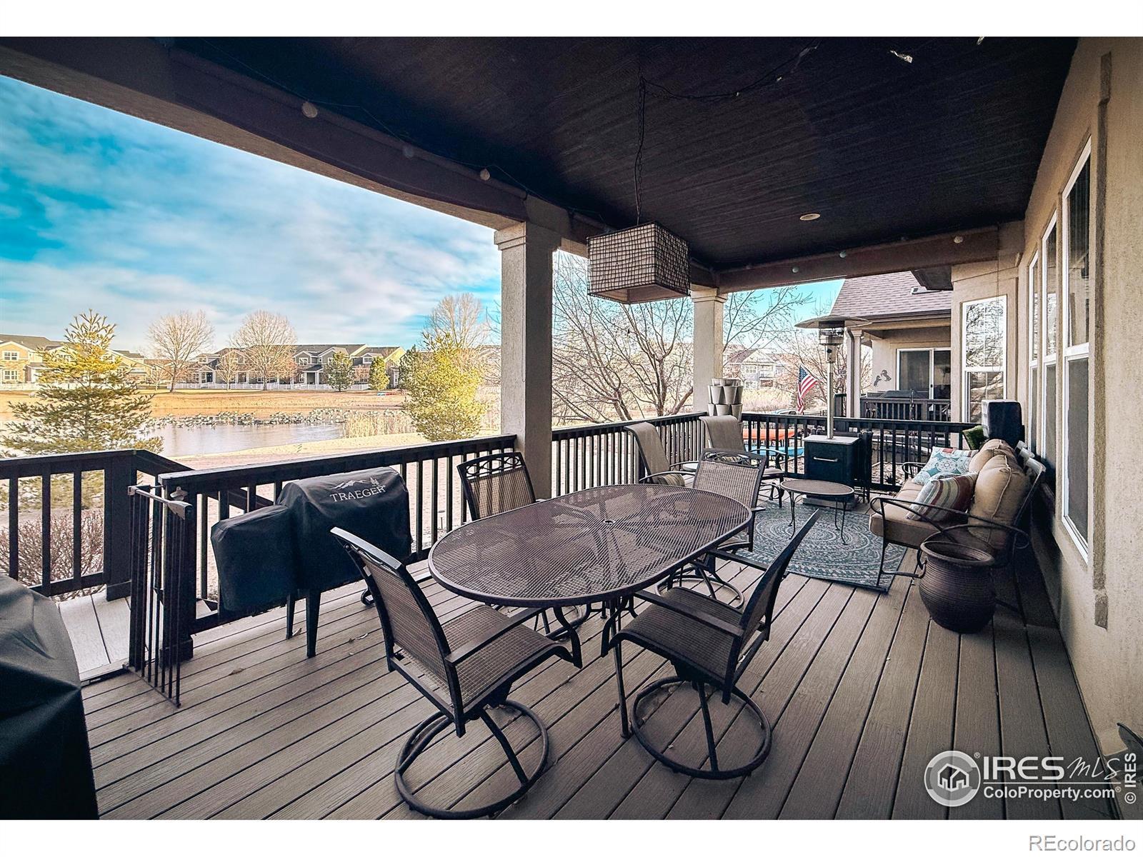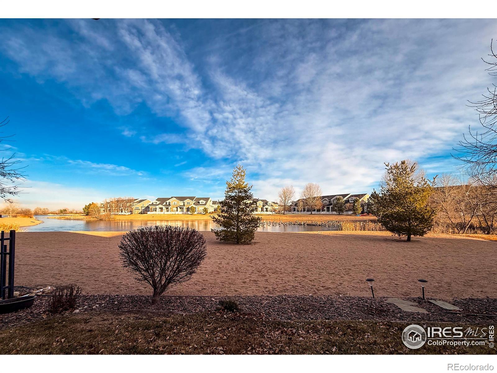 Limited Service Listing please call owner for all questions and showings. Luxury patio home in the Stonewater subdivision in South Water Valley, Windsor with incredible floor plan. 3 bed, 4 bath backing to a sandy beach and Grandpa Lake. You can drive your pontoon boat right up to the beach for the summer. 10-ft ceilings and 8-ft doors. Gourmet kitchen with stainless steel appliances, 5-burner gas stove, double oven, enormous island, roll-out shelves, instant hot water, and 16-foot pantry. On the main floor you'll find the main bedroom with a view of the lake and the sunrise. There is a quaint sitting room/office with a Solatube light, a gas fireplace, and custom-built television/storage wall in the living room. The laundry room with sink is right off the main bedroom closet. In the basement you'll find a spacious bedroom with ensuite, a large family room with a pull-down ("Murphy") bed, a hobby room (or non-conforming bedroom) and a long L-shaped storage room. In the back of the house is a 25-foot long covered back patio with roll-down shades for multi-season use, and several raised garden beds. The garage is finished with an epoxy floor and ample storage. The HOA dues covers trash removal, snow removal, mowing, annual pruning, water used for the automatic sprinkler system, and maintenance of the neighborhood vineyard, apple orchard, plum trees, putting green, and pickle ball/basketball court. The home has been well maintained and is in a quiet, friendly community that is close to Greeley, Loveland, and Fort Collins.