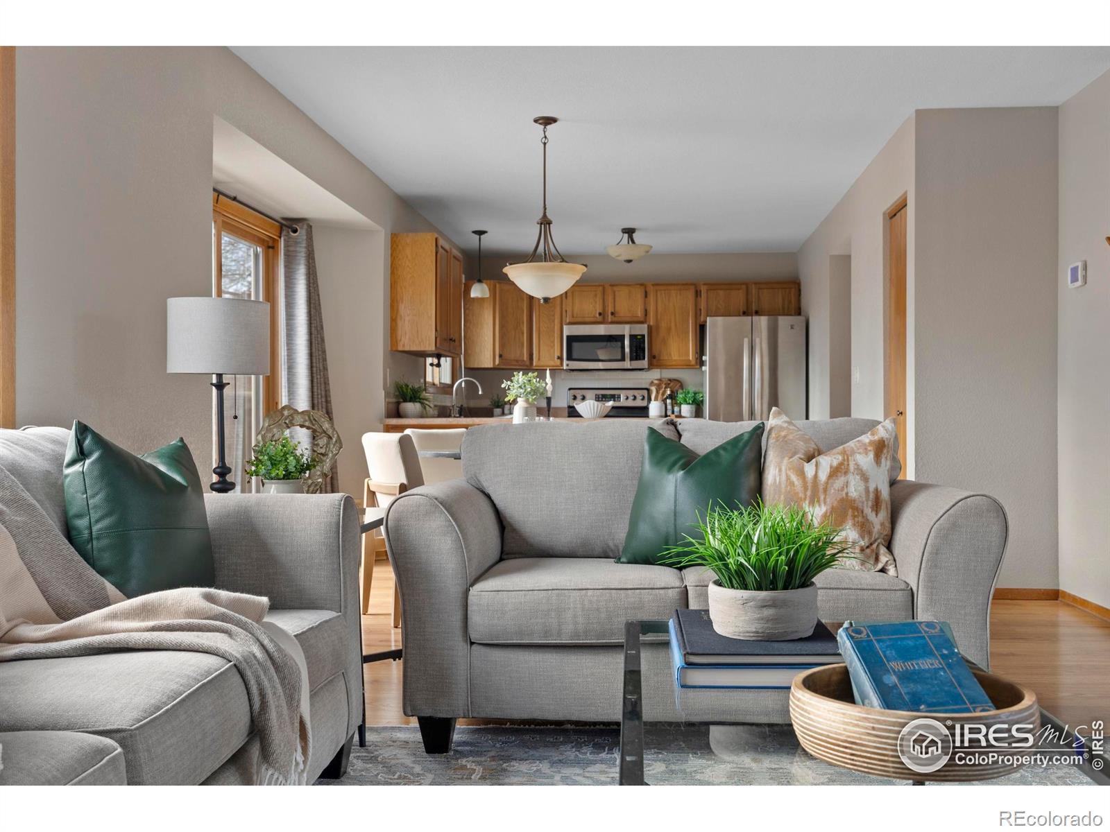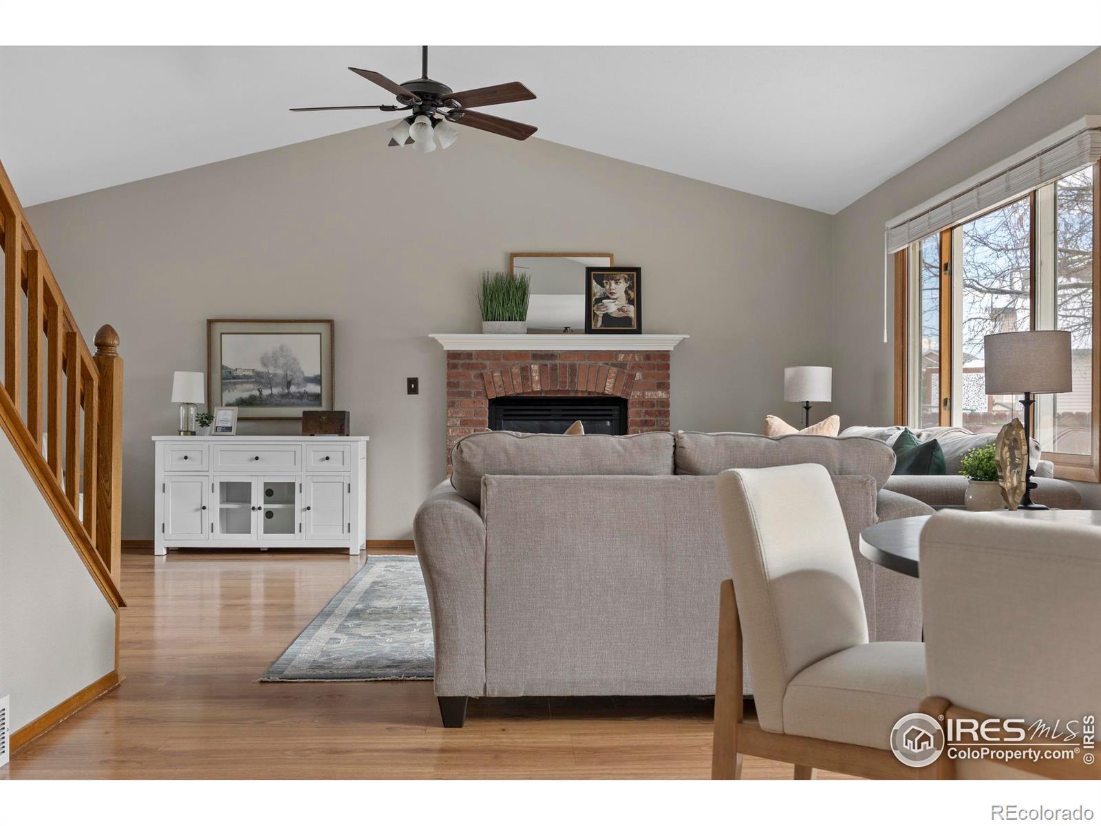 Welcome to 2384 Hampstead Drive, a beautifully crafted home in the serene setting of Loveland, CO. Spanning 2,130 square feet, this modern residence offers a blend of style and comfort with three inviting bedrooms and three well-appointed bathrooms.Step inside to discover a great open floor plan accentuated by vaulted ceilings and elegant laminate wood floors. The living area is a cozy haven featuring a gas fireplace with a classic brick mantel and hearth-perfect for relaxation.The well-organized kitchen, a true centerpiece, boasts massive counter space, bar seating, and stainless steel appliances, seamlessly connecting to the living spaces. Adjacent, a powder room enhances the main level's functionality.Upstairs, the primary bedroom suite is a retreat of its own with an ensuite bathroom with double sink vanity and a spacious walk-in closet. Two additional bedrooms share a guest bathroom, offering ample space and privacy for all.Outside, enjoy the lush and private backyard, a haven for relaxation and entertaining. The property also features an unfinished basement ready for future expansion, attached garage, and newly painted exterior.Additional amenities include air conditioning, forced air heating, a washer and dryer, and both common and private outdoor spaces. Enjoy serene lake and water views from this delightful home that promises a modern and smart living experience. Explore this gem in the perfect location in town and where every detail is designed for your comfort and enjoyment.