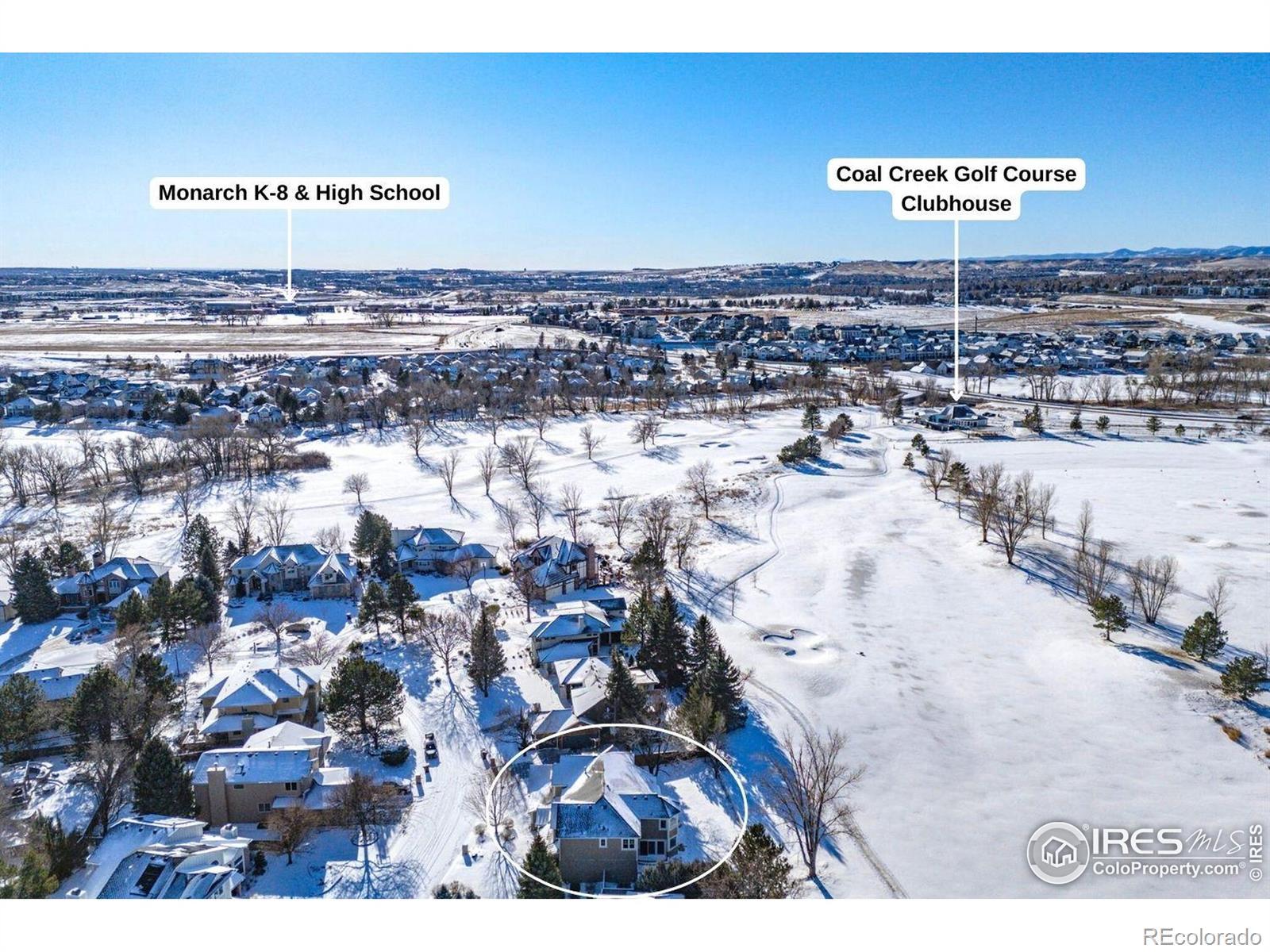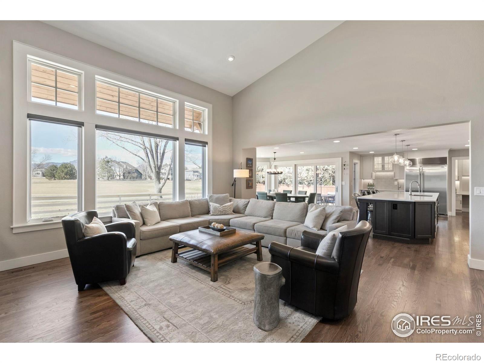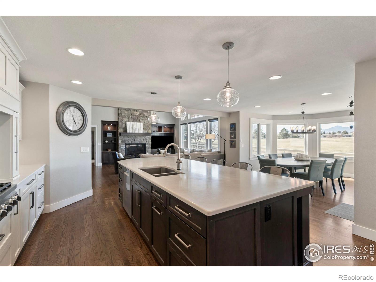 Perfectly positioned along the 1st hole of the Coal Creek Golf Course, this stunning home in the Island at Coal Creek Ranch showcases breathtaking mountain views and timeless craftsmanship. From the inviting front porch to the impressive curb appeal, every detail welcomes you home. Inside, the formal living room and expansive family room, each with its own fireplace, create warm, inviting spaces, while the family room offers views of the mountains. At the heart of the home, the chef's kitchen is a masterpiece, featuring top-of-the-line appliances, including a 6-burner gas range, double ovens, a beverage fridge, custom cabinetry, an oversized walk-in pantry, and a large island. Upstairs, the primary suite is a true retreat, featuring a sitting rotunda with sweeping western views, a spa-inspired 5-piece en-suite bath, and a walk-in closet. Three additional bedrooms complete the upper level. Seamlessly blending indoor and outdoor living, the backyard oasis is an entertainer's dream, complete with a fire pit, built-in grill, and picturesque sunset views over the golf course. With an oversized 3-car garage, spacious mudroom with laundry, dedicated home office, and thoughtfully designed living spaces, this home embodies elevated living in one of Louisville's most coveted locations.