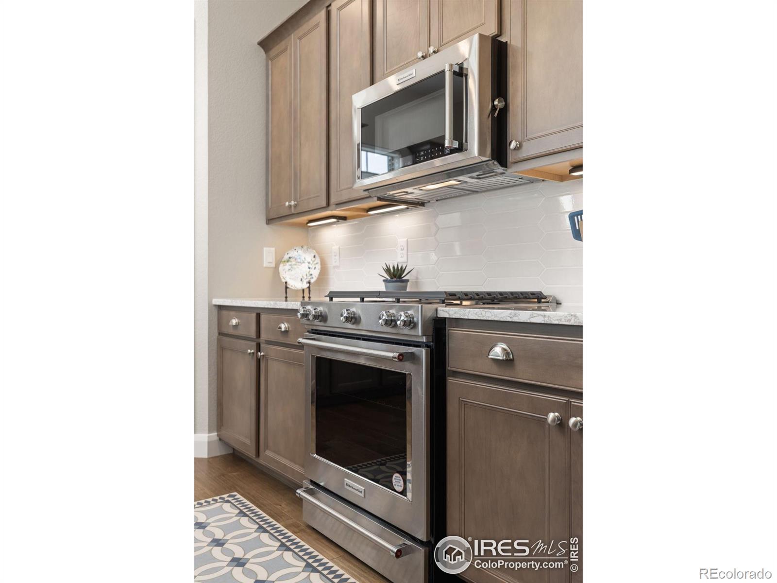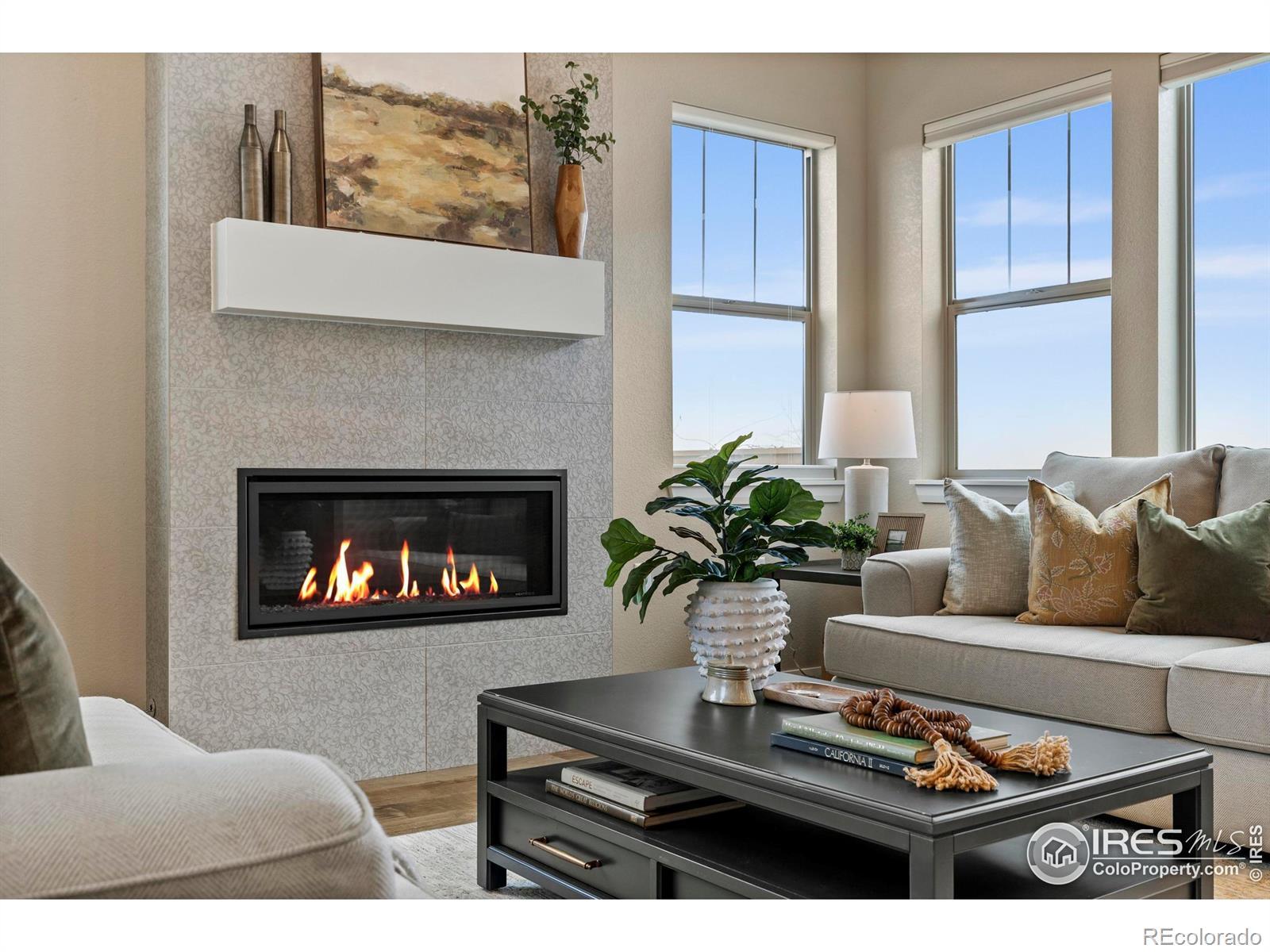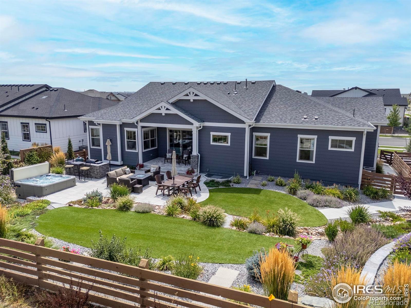 Discover refined ranch-style living in this south-facing Boulder Creek Builders home, perfectly set in Erie's highly sought-after Colliers Hill - WEST EDGE community. With 10-foot ceilings on the main level, a flexible open layout, and spaces designed for both comfort and entertainment, this home offers low-maintenance ease and a welcoming neighborhood lifestyle. Inside, a great sunlit room with fireplace flows into a chef's kitchen featuring a quartz island, KitchenAid stainless appliances, and a walk-in pantry. The main-level had two primary suites offering elegant four-piece baths and walk-in closets. Main level office with French-doors. Custom remote-control blinds - top down and bottom up. The finished basement expands the living space with a rec/media room, bedroom, full bath, and three generous unfinished sections for storage, a workshop, a gym and a potential 4th conforming bedroom. Step outside to a professionally landscaped backyard by J & S Landscape. Entertain with ease in the outdoor living space that includes an expansive patio featuring a hot tub, built-in grill/bar, and covered porch-all with mountain views and direct access to the community's walking paths and open space. Over-sized attached two car garage with EV Charger outlet. Life in Colliers Hill is about more than just a home-it's a vibrant community. Enjoy neighborhood happy hours, two community parks, extensive trails, and resort-style amenities including community pools. HOA services also include front yard care and snow removal, making everyday living seamless.