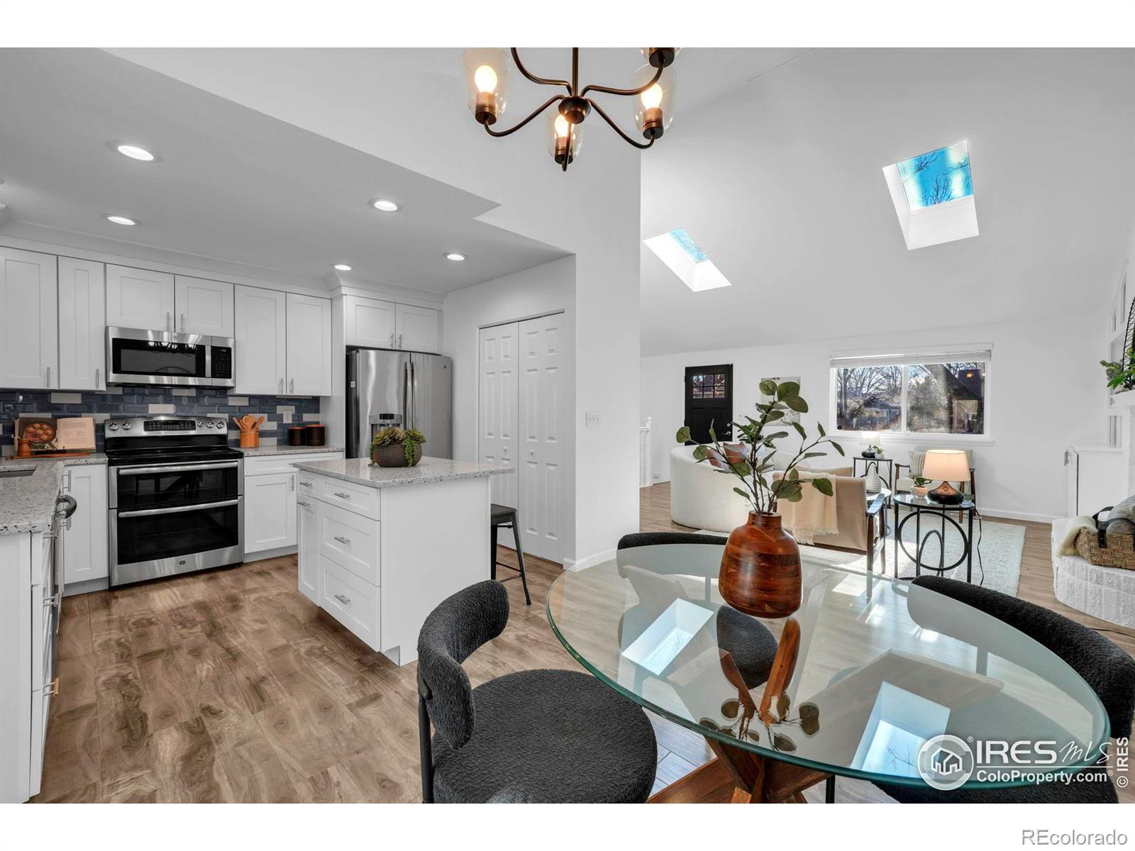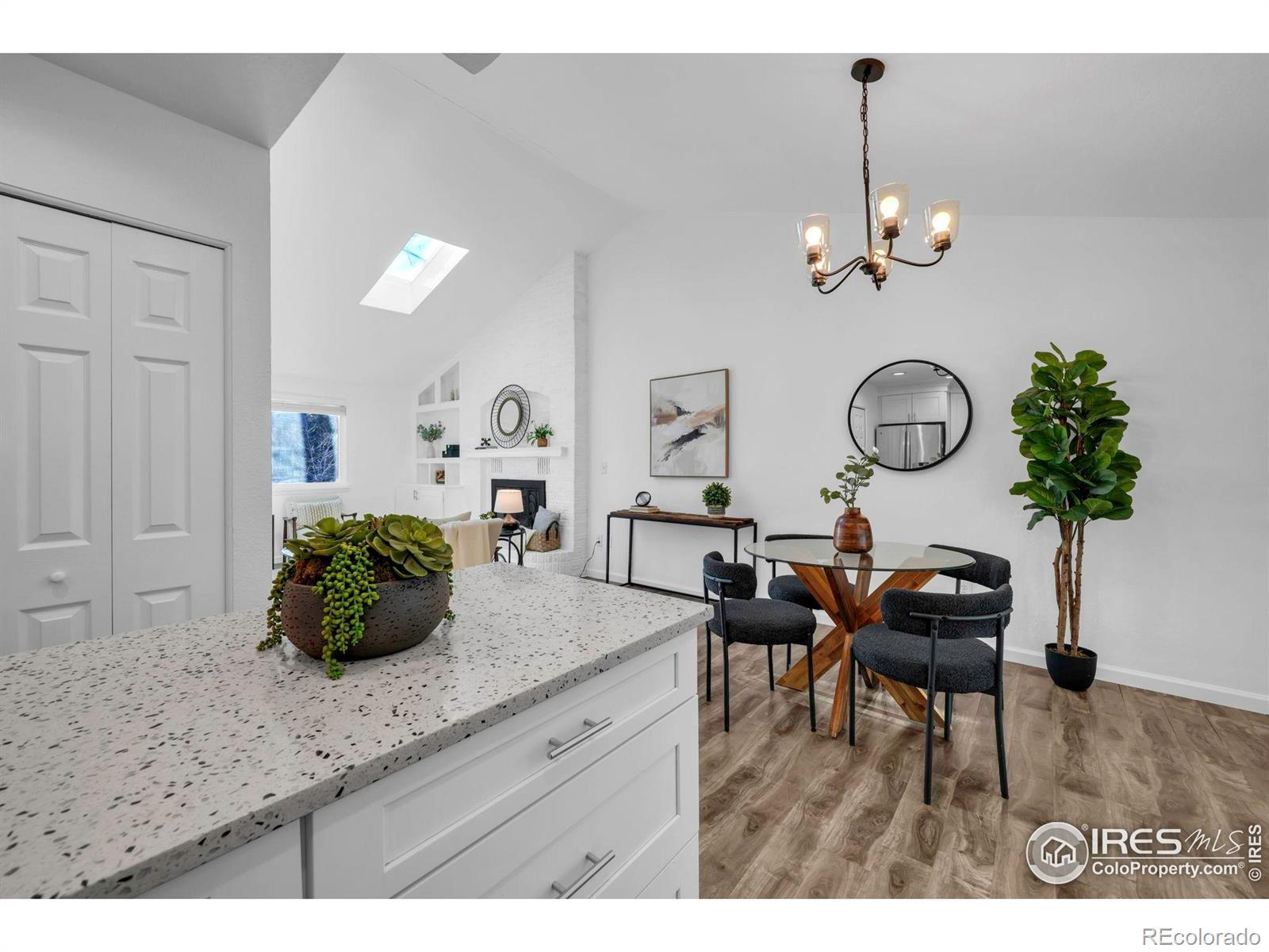 Beautifully remodeled and move-in ready! Backing directly to the path leading to Waneka Lake Park, this charming home combines modern updates with an unbeatable location. Step inside to an open island kitchen with white cabinetry, stainless steel appliances, and gleaming engineered wood floors that flow throughout the entire main level featuring vaulted ceiling in the main living area. Enjoy tastefully remodeled baths with designer finishes, new interior paint and carpet, and stylish new lighting. Newer furnace, windows, and roof have all been replaced for peace of mind. Tucked away in a quiet, friendly neighborhood just moments from the trails and beauty of Waneka Lake Park, this lovely home is ready to welcome you!