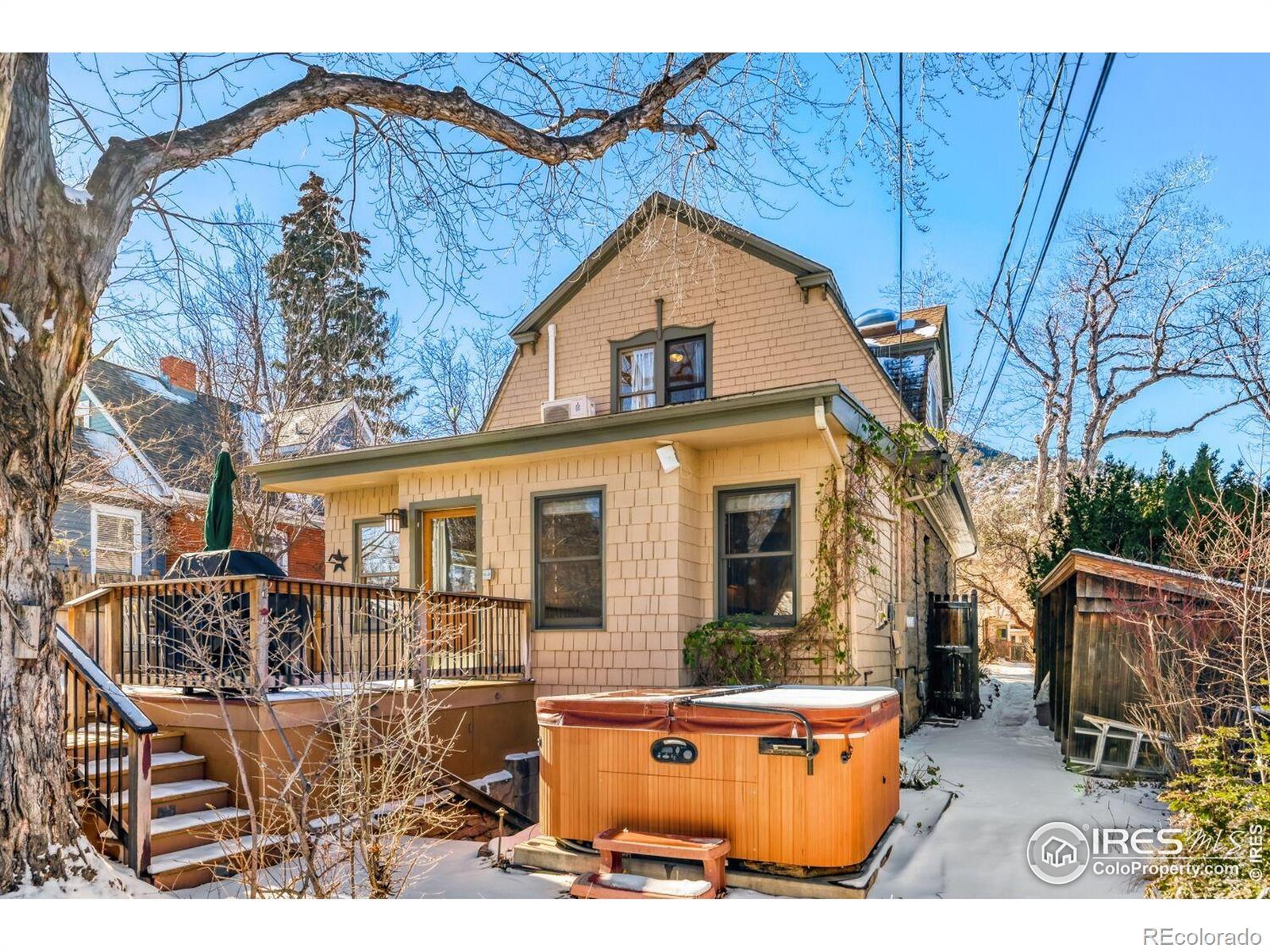 Welcome to your Boulder sanctuary on Grant Place, a classic residence nestled beneath the iconic Boulder Flatirons three blocks from Chautauqua Park. Step inside through a covered front porch and discover bright, open living spaces drenched in natural light. High ceilings, rich hardwood floors (recently refinished), large windows and classic wood moldings hint at the home's architectural heritage, while upgraded fixtures and thoughtful touches deliver modern convenience. The gourmet kitchen is a chef's delight, featuring a Wolf range, white birch cabinets, tile-brick accents, ample counter space and stainless-steel appliances. The open, inviting family room features custom shelving that houses a cozy gas fireplace and flows to the fully fenced, beautifully landscaped backyard, all naturally shaded by a stately silver maple tree. The spacious deck is perfect for summer gatherings, morning coffee and quiet evenings, and the included hot tub provides a luxurious retreat. Bedrooms are tastefully appointed and include surprisingly large walk-in closets. Bathrooms have been charmingly updated, pairing modern finishes with the home's classic architecture. The walkout lower level expands the possibilities, complete with a rec room, wine cellar and abundant space to relax or play. Top-rated schools are within walking distance. Hiking, biking, tubing and Chautauqua's cultural events are right outside your door in one of the nicest neighborhoods in Boulder. Classic architecture, quality updates, and one of the best locations in Boulder make this an absolute must-see!