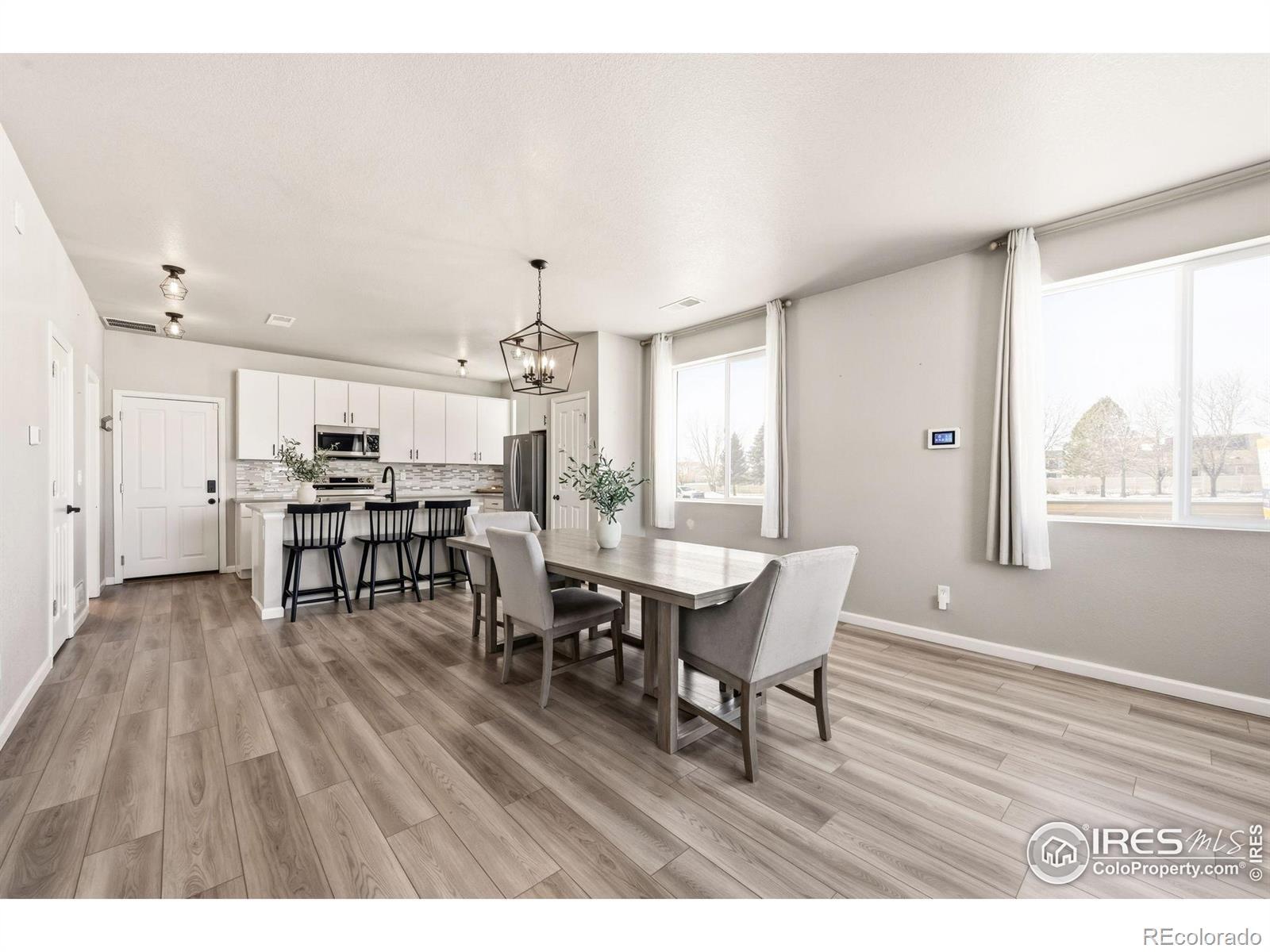 Light, bright, and low-maintenance, this nearly new end-unit home in Johnstown Village lives larger than its footprint and feels like a standalone house thanks to extra windows and only one shared wall. The main level centers around an open kitchen, dining, and living area that flow together for easy everyday living and entertaining, with direct access to the attached 2-car garage and a convenient powder bath. Upstairs, all bedrooms and baths are on the same level as the laundry, creating an easy, lock-and-leave lifestyle that works well for busy professionals, first-time buyers, or anyone looking to downsize without giving up modern comforts. Tucked at the end of a quiet street in Pintail Commons, this home offers the benefits of a newer build, contemporary finishes, efficient systems, and a low-maintenance setting within an established Johnstown location that keeps you close to commuter routes, shopping, and community amenities.