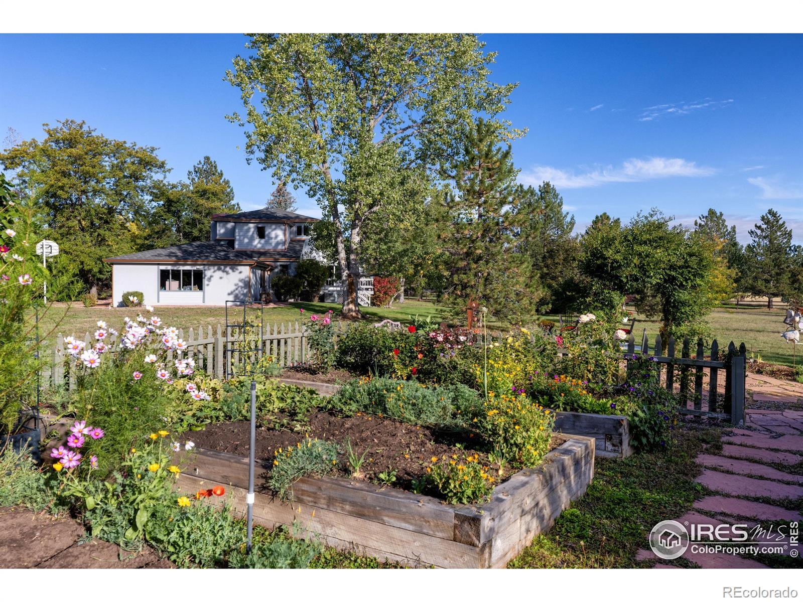 Experience the best of SW Longmont living: quiet, scenic, and connected. From nature to local shops and restaurants, everything you love is close by, with Longmont, Niwot, and Boulder just a short drive away! After visiting a nearby town, imagine coming home to your own custom retreat set on two lush acres with a private yard, mature trees, and a six-bed organic garden bursting with vegetables and flowers. Outdoors, there's room for everyone to play, relax, and gather. Multiple spaces - including a horseshoe pit - make the expansive yard perfect for both recreation and entertaining. Gardeners and dog lovers alike will find this property a dream come true. Step inside through striking double doors and you're welcomed by warm Southwestern architecture. Designed with both comfort and entertaining in mind, the home's cozy layout connects a gourmet kitchen, living area, and wood-burning fireplace-an inviting space for family and friends. From here, two decks extend the living areas outdoors, offering peaceful spots to unwind in every season. Upstairs, the primary suite spans the entire second floor, creating a true retreat. A cozy window nook invites you to curl up with a book, while the spacious five-piece bath-with a soaking tub-makes relaxation easy. On the main floor, two additional bedrooms provide comfort and convenience, while a fourth bedroom rests on the lower level. Downstairs also offers a flexible recreation room and office with direct access to the backyard. Nestled on a quiet private street, this serene neighborhood feels worlds away yet offers convenient access to the best of Colorado.