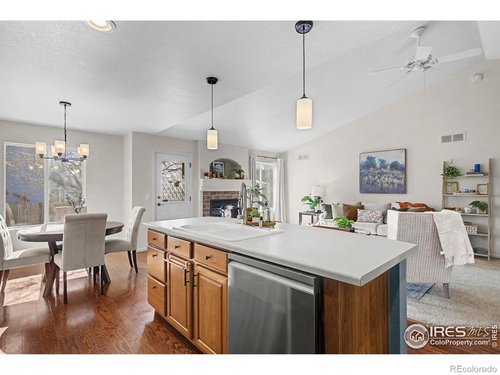 **Must See In Person**Main Level Living**Low Maintenance Fully Fenced Yard**Super Cute home, Open Floor Plan, Vaulted Ceilings and a Gas Fire Place. Stainless Appliances with an Island for additional Prep Space, 2 bedrooms + an office that could be turned into a 3rd bedroom, Large Primary and Private Bath with Walk-in-Closet all on the Main Level, Additional Family Room in the Basement for expanded living space. Home is located on the South Side of Fort Collins, easy access to the Power Trail