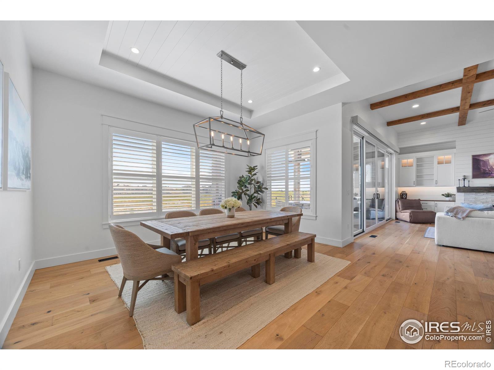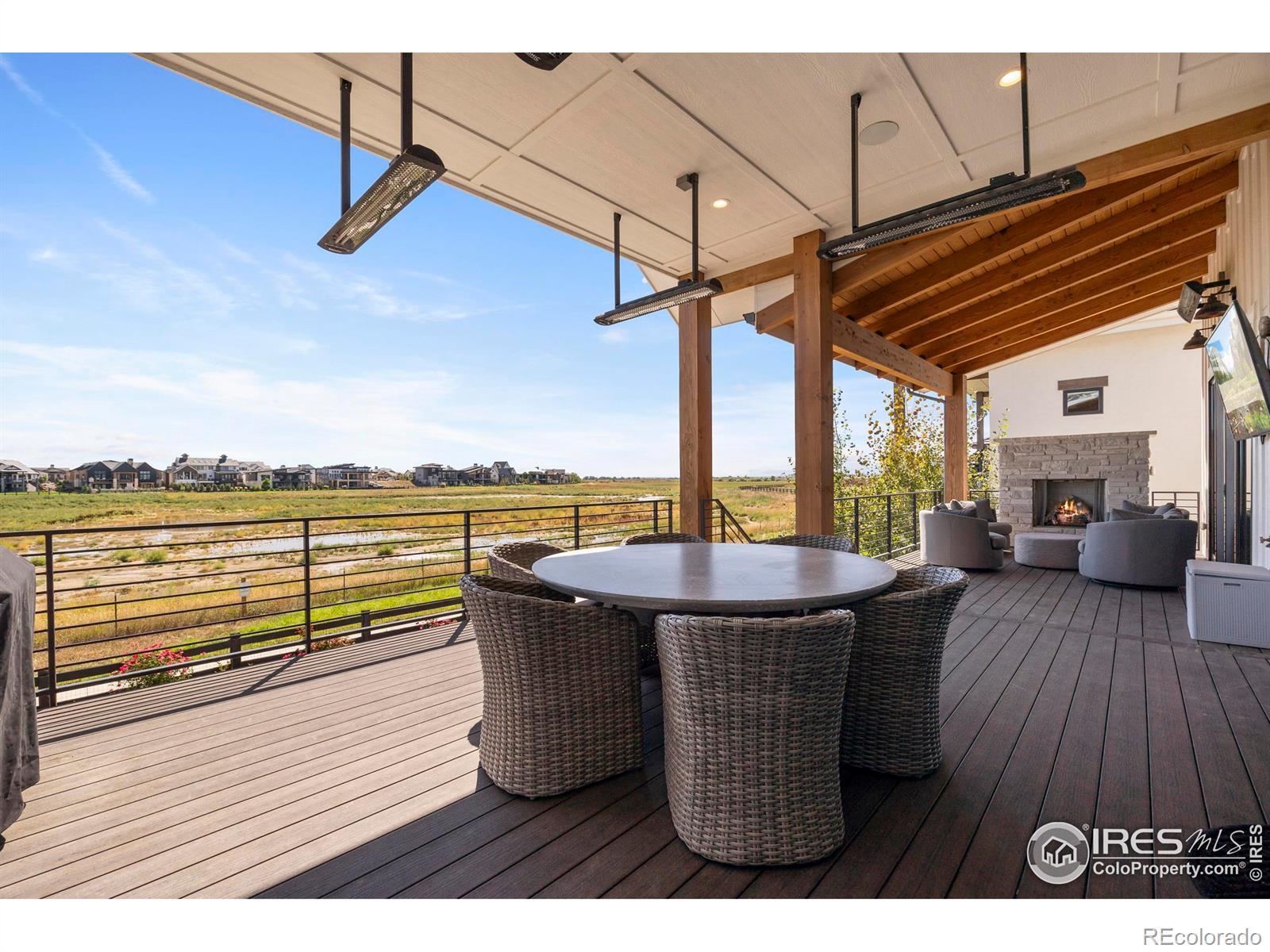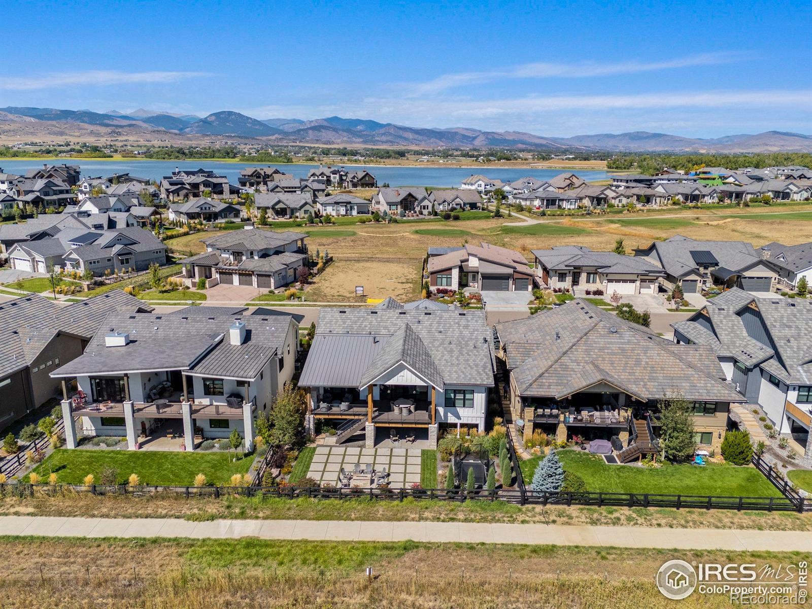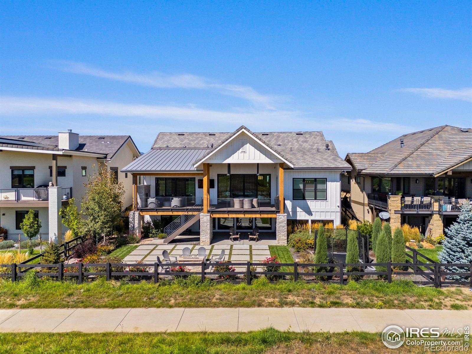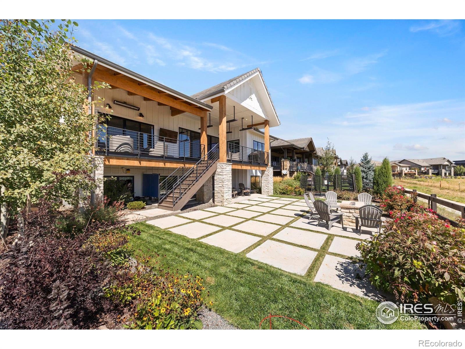 Welcome to this stunning custom-built farmhouse style home, with mountain views. The neighborhood features a TPC Colorado golf course, clubhouse, state of the art gym, and pool, offering access to world-class recreation and resort-style living. This home has 4 bedrooms and 4.5 half bathrooms, a dedicated office with French doors, a beautiful open-concept kitchen, and a living area that creates the perfect gathering space. Outside, the expansive deck has a fireplace and TV to enjoy Colorado sunsets and views of the flatirons. The professionally landscaped backyard is a true outdoor paradise, featuring a fire pit, built-in trampoline. The daylight basement is designed for entertainment, complete with a wet bar, TV, fireplace, and dedicated movie screen. The 180-square-foot gym brings fitness right to your doorstep.This home is rich in luxury details, including heated bathroom floors, hardwood flooring throughout, and a spacious three-car garage with custom cabinetry and finished floors. With its timeless farmhouse design, modern amenities, and unbeatable location, this home is the perfect place to enjoy Colorado living at its finest.
