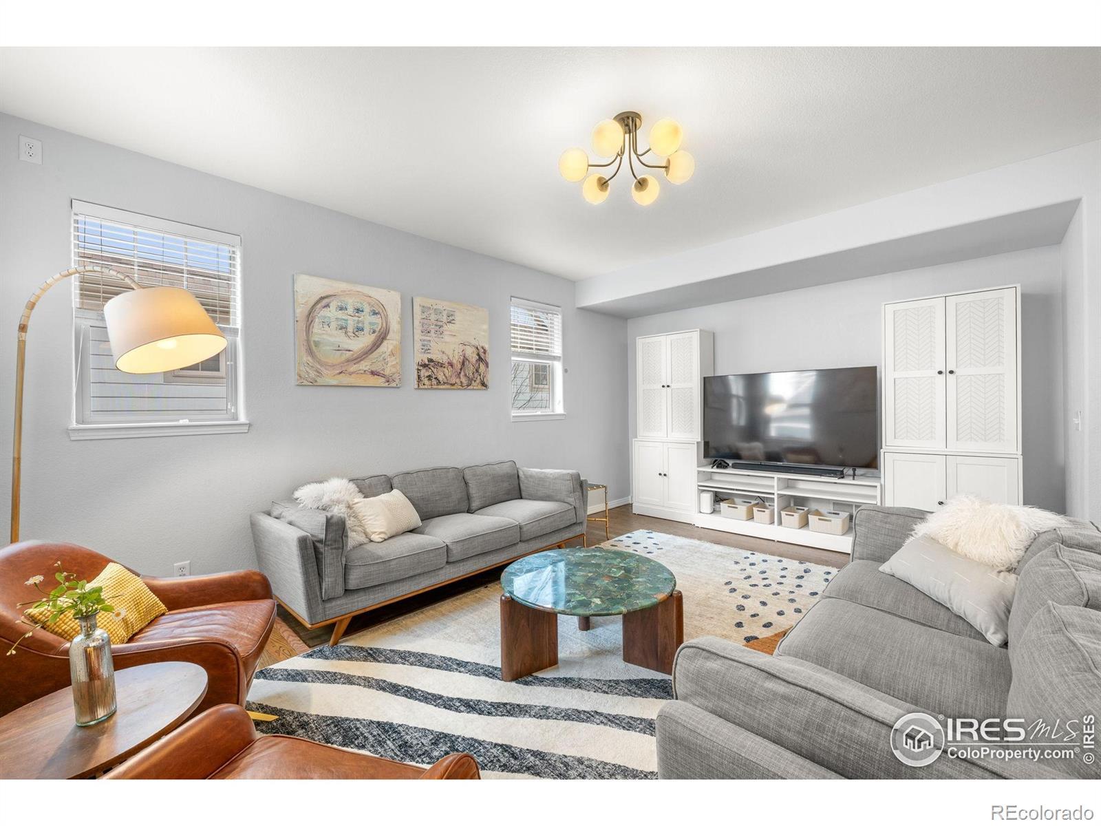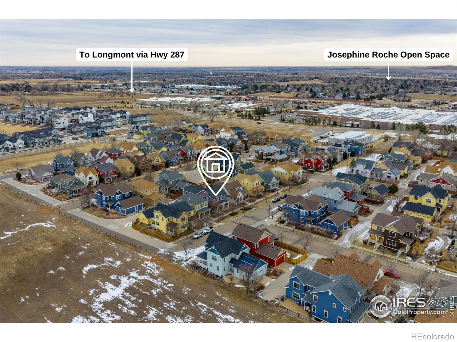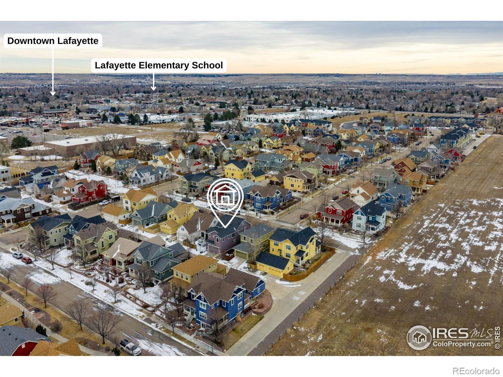 Set within Lafayette's Anna's Farm neighborhood, this home welcomes you with a charming covered front porch, gleaming hardwood floors, and a dramatic foyer featuring a wooden staircase. A separate office at the front of the home offers flexibility to serve as a private main-floor dining room, if desired. The layout is anchored by a lovely living room that flows seamlessly into the kitchen and eat-in area, while the adjacent patio invites easy outdoor dining and entertaining. Upstairs, the second level is highlighted by a primary suite with a walk-in closet and private bath, where views of Longs Peak truly stand out. Two secondary bedrooms share a nearby hall bath, while a fourth bedroom is thoughtfully set apart with its own ensuite bathroom. A central loft provides versatile space ideal for a play area or study zone. The finished basement expands the home's nearly 3200 sqft of living space with a comfortable family room, a 5th bedroom and bathroom, plus additional storage. Ideally located with easy access east to Old Town Lafayette via Baseline Road, west to Boulder & Louisville, and south to the open space & trails surrounding Waneka Lake.