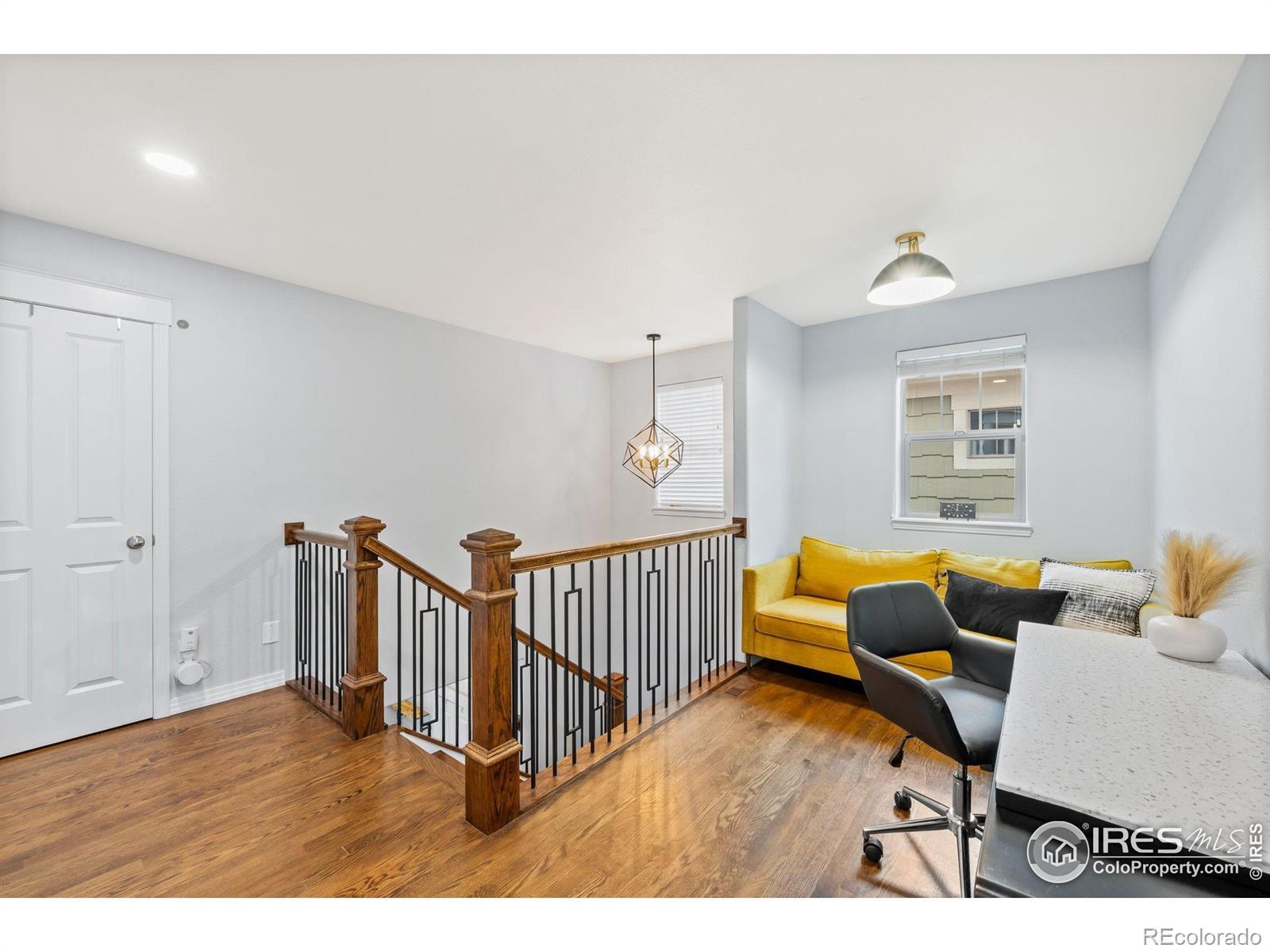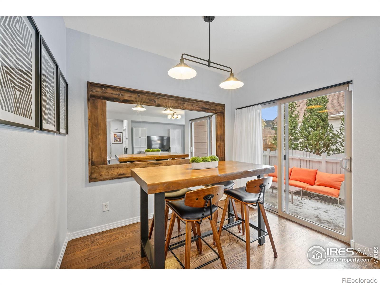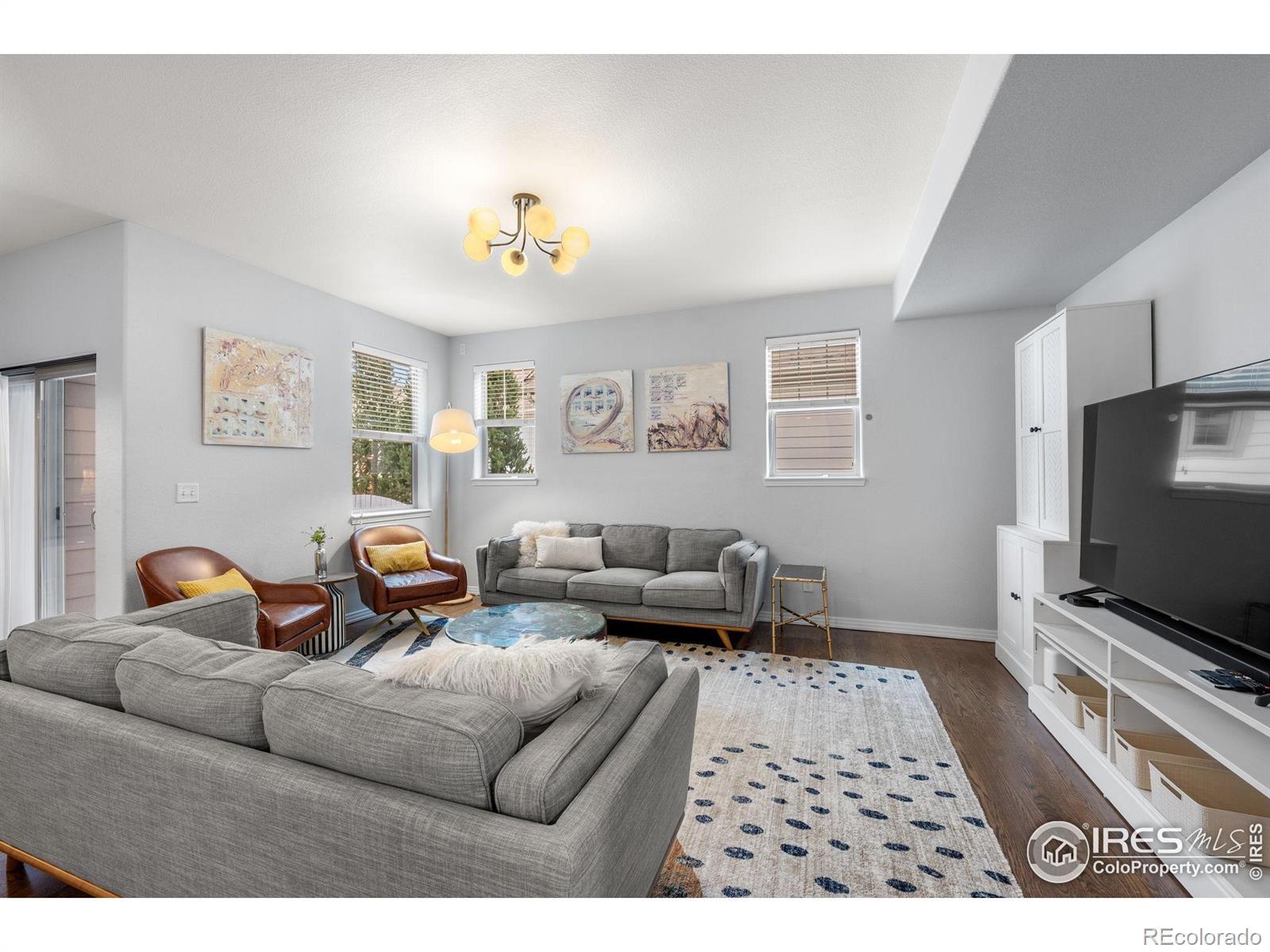 Set within Lafayette's Anna's Farm neighborhood, this home welcomes you with a charming covered front porch, gleaming hardwood floors, and a dramatic foyer featuring a wooden staircase. A separate office at the front of the home offers flexibility to serve as a private main-floor dining room, if desired. The layout is anchored by a lovely living room that flows seamlessly into the kitchen and eat-in area, while the adjacent patio invites easy outdoor dining and entertaining. Upstairs, the second level is highlighted by a primary suite with a walk-in closet and private bath, where views of Longs Peak truly stand out. Two secondary bedrooms share a nearby hall bath, while a fourth bedroom is thoughtfully set apart with its own ensuite bathroom. A central loft provides versatile space ideal for a play area or study zone. The finished basement expands the home's nearly 3200 sqft of living space with a comfortable family room, a 5th bedroom and bathroom, plus additional storage. Ideally located with easy access east to Old Town Lafayette via Baseline Road, west to Boulder & Louisville, and south to the open space & trails surrounding Waneka Lake.