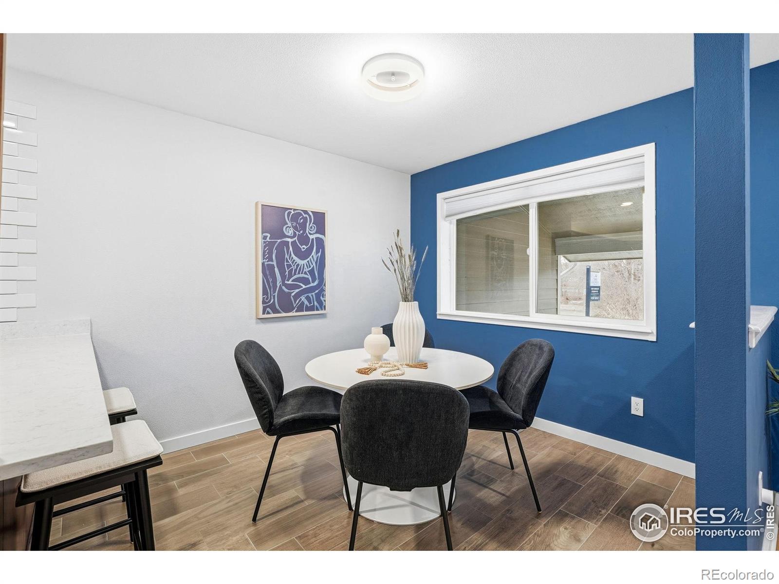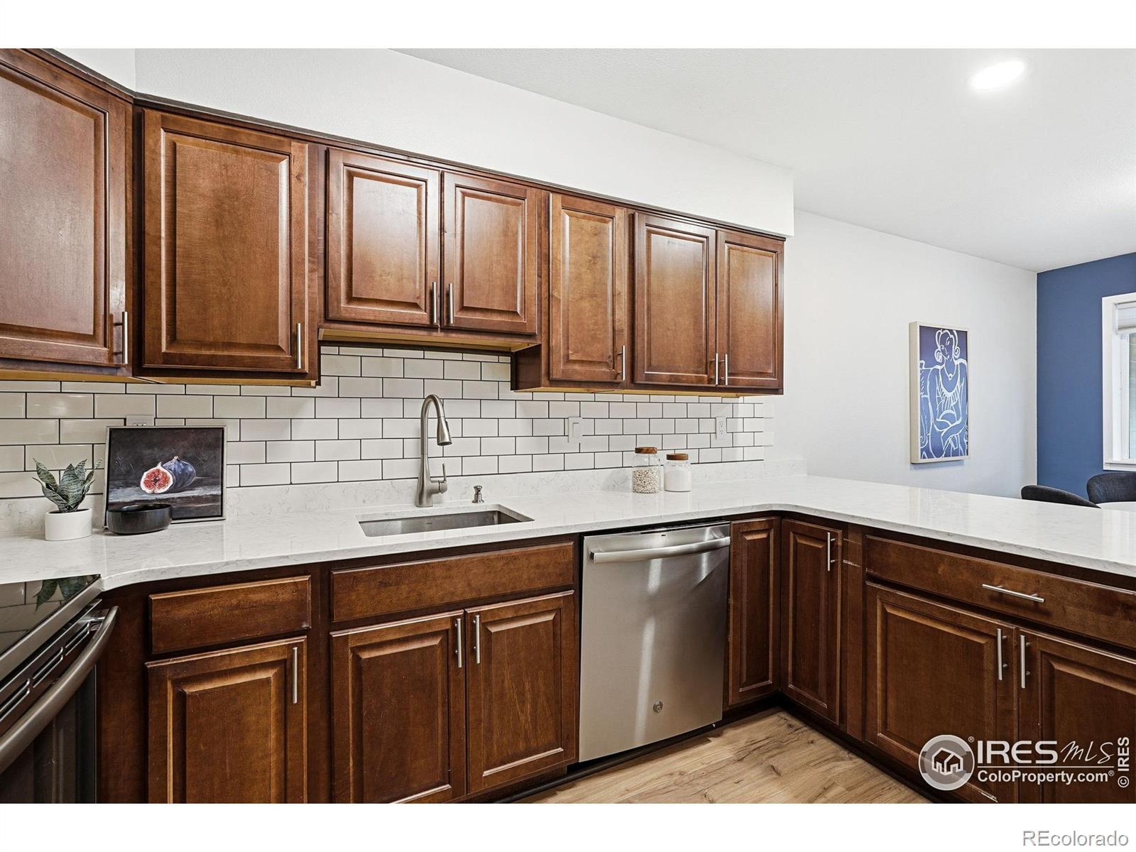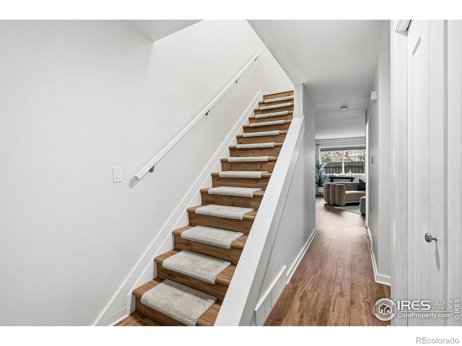 Tucked into a quiet, centrally located North Boulder enclave, this beautifully updated end-unit offers a thoughtfully designed interior paired with an unbeatable location. The remodeled kitchen features quartz countertops, an induction range, and ample cabinet space, flowing effortlessly into the inviting living room-perfect for relaxing by the fire or stepping out to the patio to enjoy a peaceful Boulder evening. Upstairs, a Euro-style laundry station with washer and dryer is conveniently located between two oversized bedrooms. The primary suite features a west-facing balcony, ideal for taking in sweeping views of the Boulder Flatirons and evening sunsets. Additional interior highlights include solid core doors throughout and a large, well-lit crawl space offering excellent storage.The home is set within an expansive, beautifully maintained green space, creating a park-like atmosphere rarely found this close to town. Parking is a breeze with one covered carport space plus an additional dedicated reserved parking spot. Ideally situated less than a five-minute walk to Movement Climbing + Fitness and just ten minutes to Whole Foods and the Boulder Junction Transit Station, with easy access to downtown Denver and the airport. Commuting is effortless with quick connections to US-36, Foothills Parkway, and the Diagonal Highway. Outdoor enthusiasts will love being just blocks from Boulder's extensive bike path network, including Goose Creek, Wonderland Creek, Boulder Creek, and Elmer's Two Mile. The dog-friendly neighborhood is surrounded by local favorites such as Rayback Collective, Cork, AOI Sushi, Fringe Pizza, Verde, and Verb Coffee Roasters. A rare opportunity to enjoy comfort, convenience, and the very best of the Boulder lifestyle.