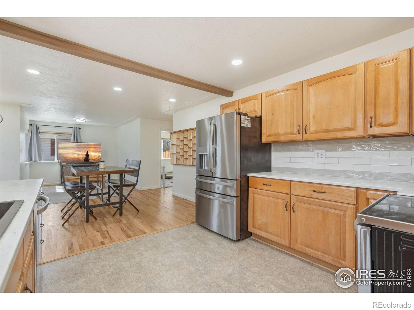 Welcome to 113 Balsam Street, a beautifully updated ranch-style home in the heart of Fort Morgan. This 4-bedroom, 2-bathroom residence offers a perfect blend of vintage character and modern convenience, with over 1,920 square feet of thoughtfully designed living space. As you step inside, you're greeted by refinished 3/4" oak flooring and fresh interior paint that enhances the home's warm and inviting atmosphere. The updated kitchen features stainless steel appliances, a farmhouse sink, classic subway tile backsplash, and added beam and beadboard ceiling details that bring charm and craftsmanship into focus. New windows and doors provide both efficiency and natural light throughout the home, while a new electrical panel and added attic insulation offer peace of mind and comfort year-round. The living and dining spaces are bright and open, perfect for both everyday living and entertaining guests. Downstairs, the finished basement adds even more flexibility for a media room, play area, or home office. Outside, enjoy your mornings on the composite front patio, with freshly laid sod, a sprinkler system, and a fully fenced backyard offering privacy and room to relax. An attached 1-car garage, along with extra parking space for an RV or boat, adds convenience and functionality to this move-in-ready property. Located in a quiet neighborhood near schools and local amenities, this home is a rare opportunity to own a turnkey gem in Fort Morgan.