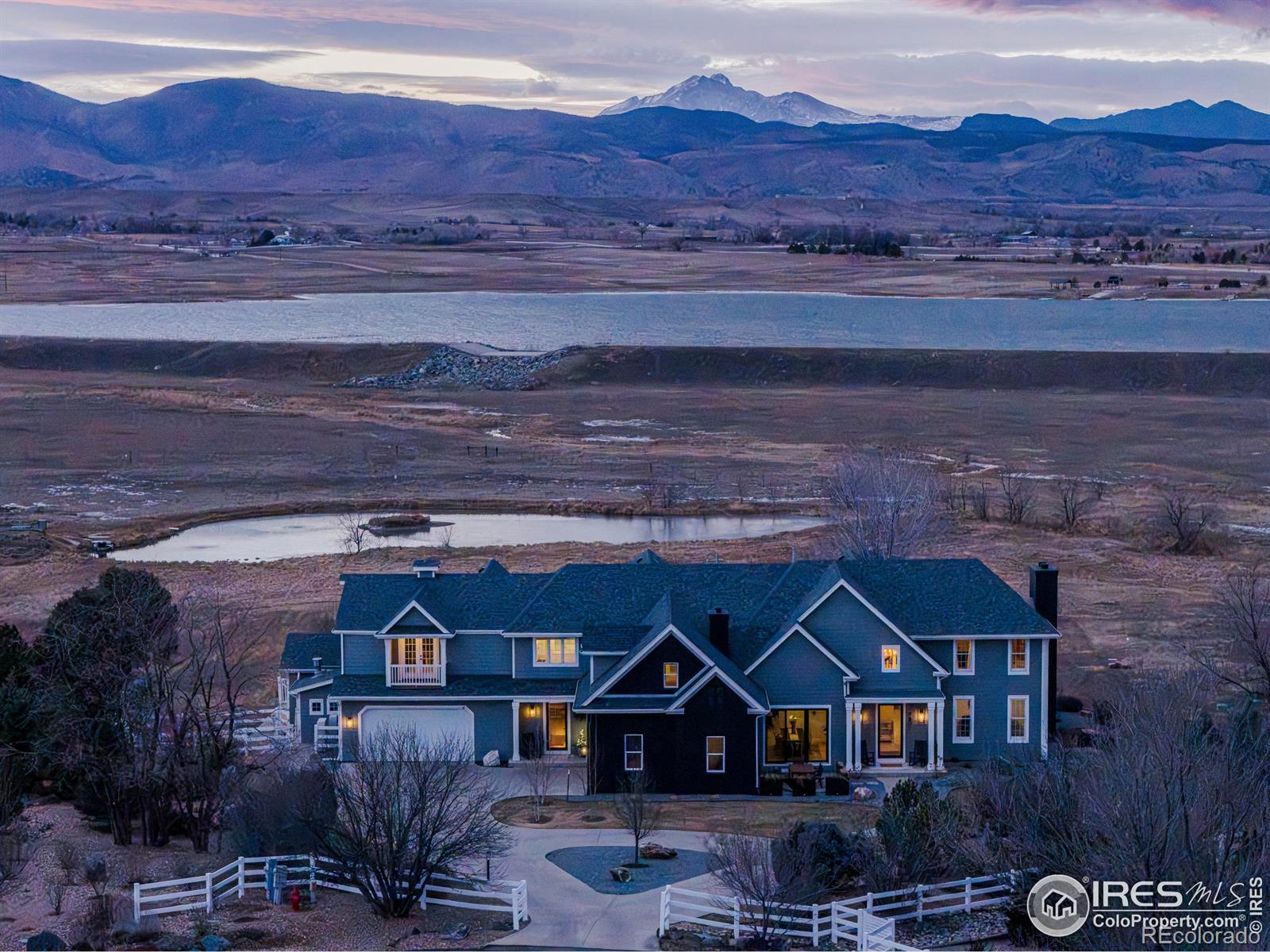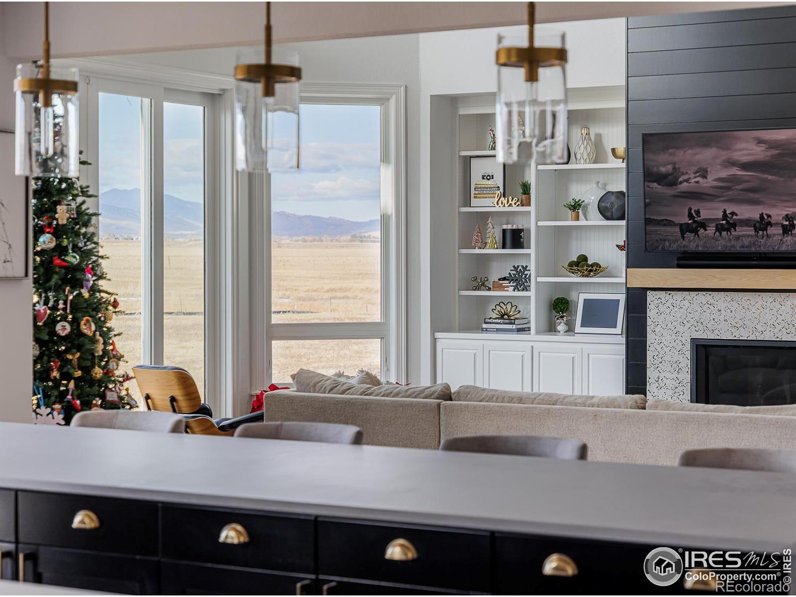 Welcome to 7401 Deerfield Road, an exceptional retreat in Longmont, Colorado, where refined modern design meets peaceful country living. Set on an expansive lot with breathtaking mountain views, this beautifully remodeled home offers privacy, luxury, and resort-style amenities at every turn. The thoughtfully updated interior showcases an open-concept layout filled with natural light and high-end finishes throughout. The gourmet kitchen is a true centerpiece, featuring Caesarstone Mineral countertops, stainless steel appliances, and two oversized islands perfectly suited for entertaining. Adjacent living spaces include a cozy living room with a fireplace, creating an inviting atmosphere for everyday living and gatherings alike.The luxurious primary suite is a private sanctuary, complete with a newly remodeled, spa-inspired bathroom. Additional interior highlights include a butler's pantry, a spacious mudroom, a dedicated workout or yoga room, a private office, and an indoor hot tub-ideal for unwinding at the end of the day. Outdoor living is equally impressive. The property boasts a pristine pool, expansive covered porches for alfresco dining, and multiple outdoor living areas designed to capture stunning sunset and mountain views, creating a true backyard oasis. Practicality meets convenience with two oversized 2-car garages, one pre-wired for an electric vehicle charger, abundant indoor storage for seasonal items, and additional outdoor structures for equipment and recreational gear. A gas-powered whole-house generator ensures uninterrupted comfort and peace of mind. Significant upgrades include extensive remodels completed in 2023 and 2025, a new heat pump installed in 2025, and a fully remodeled primary bathroom, making this home both stylish and energy-efficient. Ideally located just minutes from downtown Longmont and Niwot, this remarkable property offers the perfect balance of serene privacy and easy access to local amenities, dining, schools, and recreation.