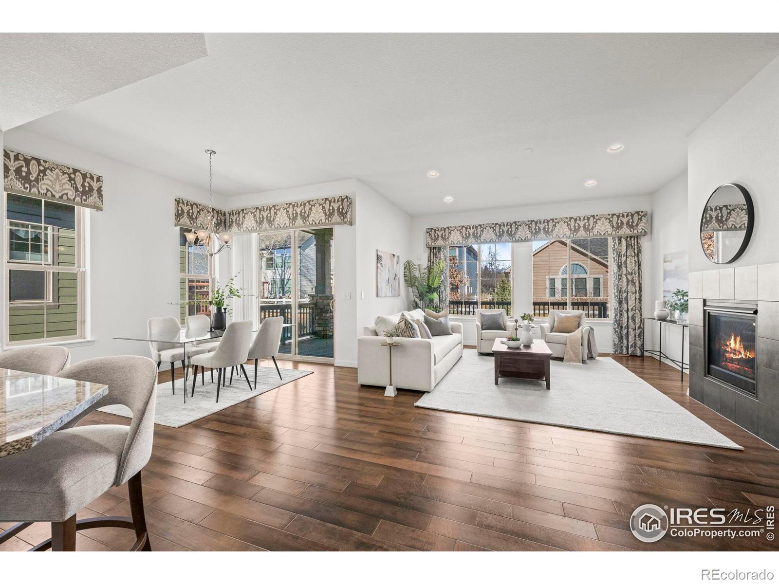 Meticulously maintained and thoughtfully upgraded ranch-style, paired home in Longmont's coveted Tramonto neighborhood, offering the largest floor plan (Solstice) with an open layout and 10' ceilings. Fresh interior paint and custom upgrades make this home truly move-in ready. Chef's kitchen features a gas range, stainless appliances, and oversized island. The spacious primary suite includes a zero-entry walk-in shower, dual vanity, bidet, and walk-in closet, plus a second main-floor bedroom for guests or office use and full bath. Enjoy Colorado outdoor living on the large, covered private patio. Finished lower level expands living space with a wet bar and beverage center, custom cabinetry, large family room, two additional bedrooms, and a third full bath. Additional highlights include high-end shutters, custom window treatments, epoxy-coated garage floor, tankless water heater, and high-efficiency HVAC. Low-maintenance HOA covers exterior maintenance, snow removal, trash, and grounds, with community gardens and park space. Ideally located in southwest Longmont with easy access to Longmont, Niwot, and Boulder.