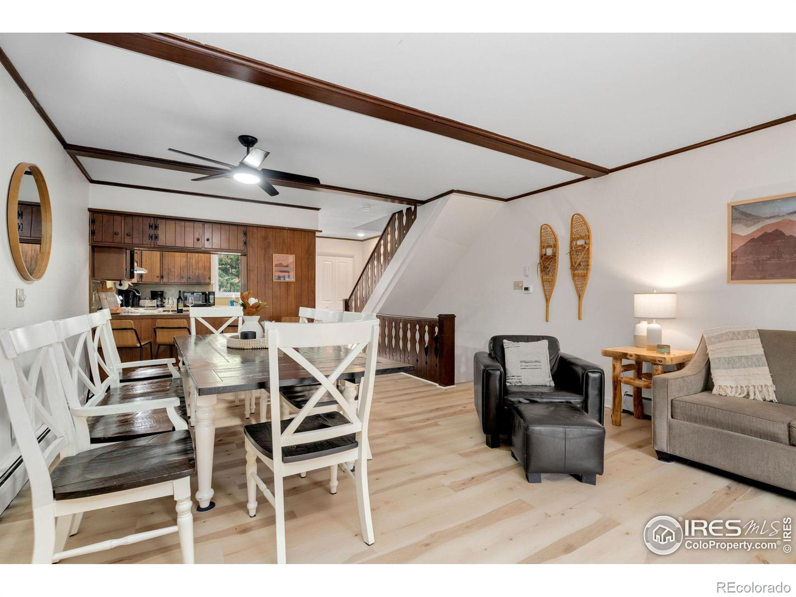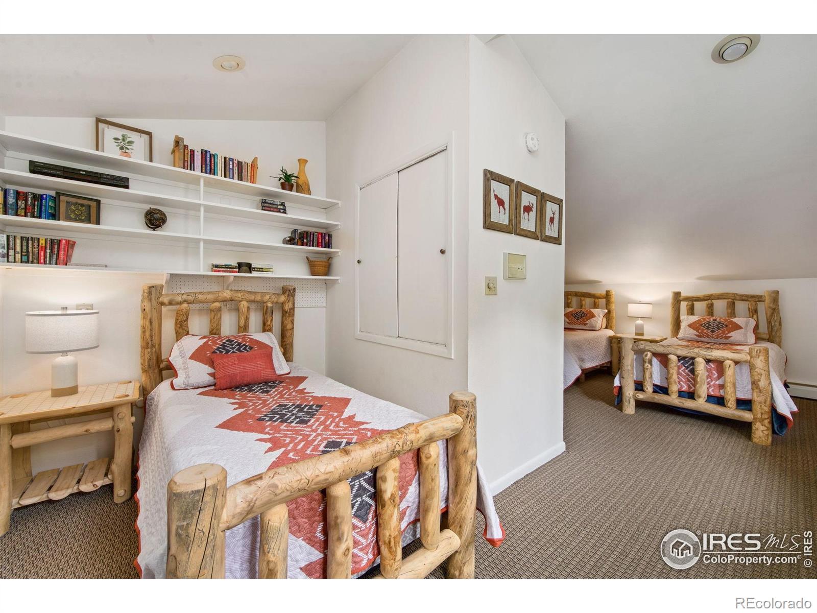 Incredible investment opportunity with $85,000 in gross revenue over the past 12 months and a transferable short-term rental license! Even better, you can self-manage to maximize profits-a huge bonus in Estes Park-or choose to use the convenient onsite management.This is the largest unit in the complex with 4 bedrooms, 2 baths, and room to sleep 10 guests. Step out onto any of the four private decks-three overlooking the peaceful river-and take in the unmatched beauty of Estes Park and the Rocky Mountains. Elk are often in the front yard, creating a true Colorado mountain experience, yet you're only one mile from the entrance to Rocky Mountain National Park and just five minutes to downtown.The property features a modern design with a recently updated kitchen, new LVP flooring, and a cozy fireplace. Sold fully furnished, it's completely turn-key for you and your guests. The HOA includes a pool, cable, internet, water, sewer, exterior maintenance, common areas, snow removal and trash for your convenience. Whether you're looking for a high-performing short-term rental or a personal mountain oasis that pays for itself, this one is not to be missed! Agent owned.