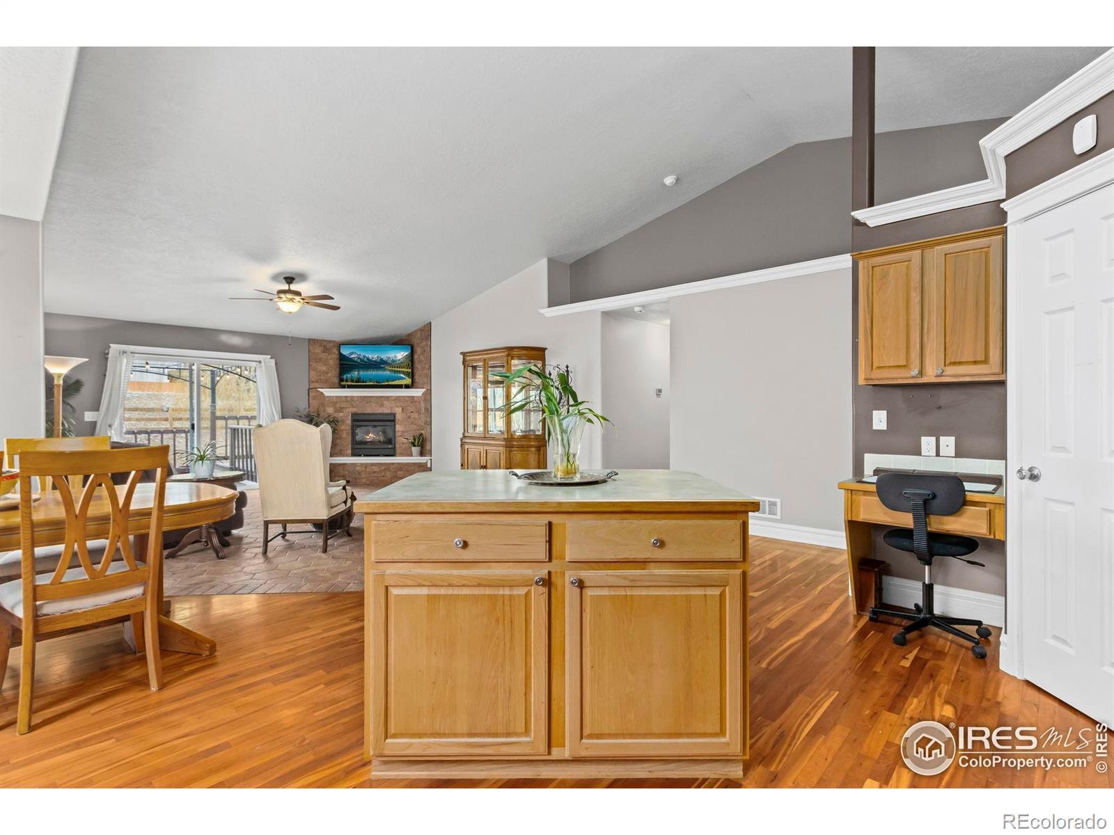Tucked away on a quiet street in NE FTC, 1027 Elgin Court offers the perfect blend of comfort, function, and location. This well-maintained ranch-style home delivers easy single-level living with an open, inviting layout designed for both everyday life and entertaining. Inside, vaulted ceilings and abundant natural light create an airy feel throughout the main living space. The open floor plan flows seamlessly from the living room into the kitchen, dining area and family room, making gatherings effortless. Cherry hardwood floors, a cozy gas fireplace add warmth and character, while the practical layout provides flexibility for work-from-home needs, guests, or growing households. The kitchen features ample counter space, an island for casual meals, a spacious pantry for storage, and sightlines to the dining and family room areas-ideal for hosting or staying connected while cooking. Three comfortable bedrooms offer privacy and versatility, including a spacious primary ensuite that feels like a retreat at the end of the day. A private, 5 piece bathroom with jetted tub and walk in closet complete the primary bedroom. Step outside to enjoy a tiered deck overlooking the fenced backyard perfect for summer barbecues, morning coffee, or relaxing evenings. The back of the property abuts a green belt with trail and outdoor recreation is always within reach. The manageable yard offers room to play or garden with raised garden beds, lawn sprinkler and Tuff Shed. The fence is freshly stained and a mature willow tree provides shade. 2 apple trees planted for future enjoyment. Located just minutes from Old Town Fort Collins, CSU main campus, breweries, trails, and everyday conveniences, this home combines a peaceful residential setting with quick access to the best of Fort Collins living. Whether you're looking for move-in-ready simplicity, a smart long-term investment, or a home that supports an active Colorado lifestyle, this home checks all the boxes.