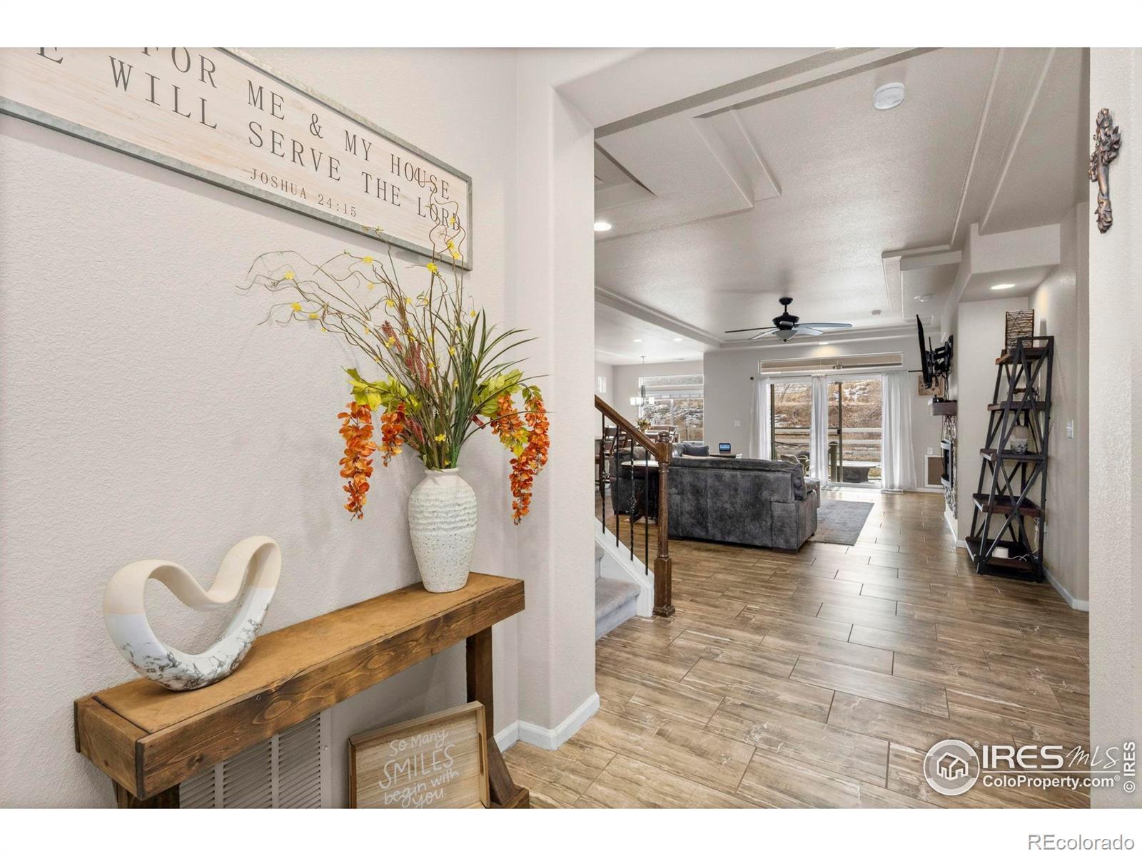 This impressive two-story home enjoys a quiet cul-de-sac setting that offers a calm, tucked-away feel while still being connected to everything that makes the area so desirable. Step inside and feel at home right away in the open main living area, where wood-grain ceramic tile flooring flows throughout, creating a clean, cohesive space that's easy to enjoy and even easier to maintain. The kitchen takes center stage with stainless steel appliances, granite countertops, and a massive island that delivers generous prep space, storage, and a natural spot for casual gatherings. The split-bedroom design places two bedrooms on the main level along with a dedicated office area featuring French doors. This thoughtful layout allows for privacy while keeping key spaces easily accessible. The primary suite offers a peaceful place to unwind, complete with an ensuite bathroom and a spacious walk-in closet. Upstairs, a family-area loft adds extra living space alongside an additional bedroom and bathroom. This level can easily function as a second bedroom suite, offering flexibility and privacy, with mountain views from the bedroom windows adding a charming touch. The fully fenced backyard features an extended patio with a hot tub hookup, mature trees for shade and privacy, and a storage shed. Backing to a neighborhood trail and greenbelt, the home offers scenic walking paths that lead directly to Thompson River Ranch's wide range of amenities. Enjoy access to an outdoor pool, clubhouse, parks, and even a disc golf course all just steps away. This home delivers a lifestyle that feels easy, inviting, and ready to enjoy from day one!