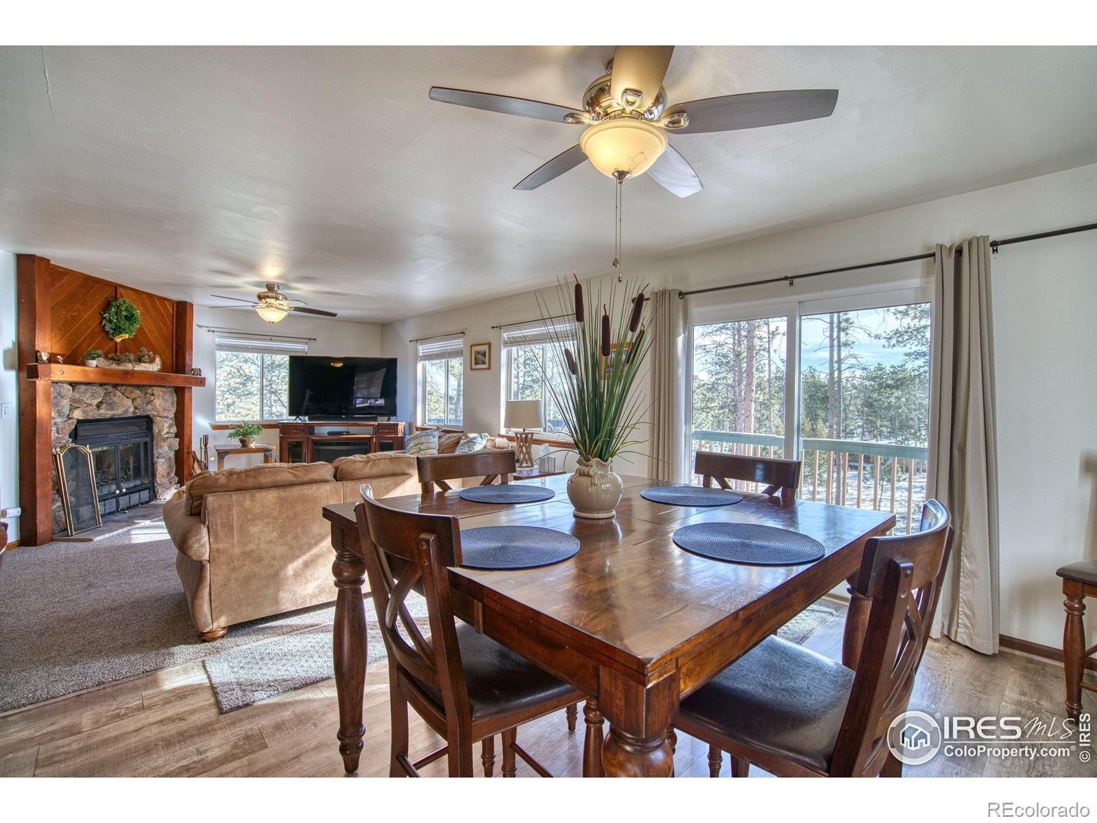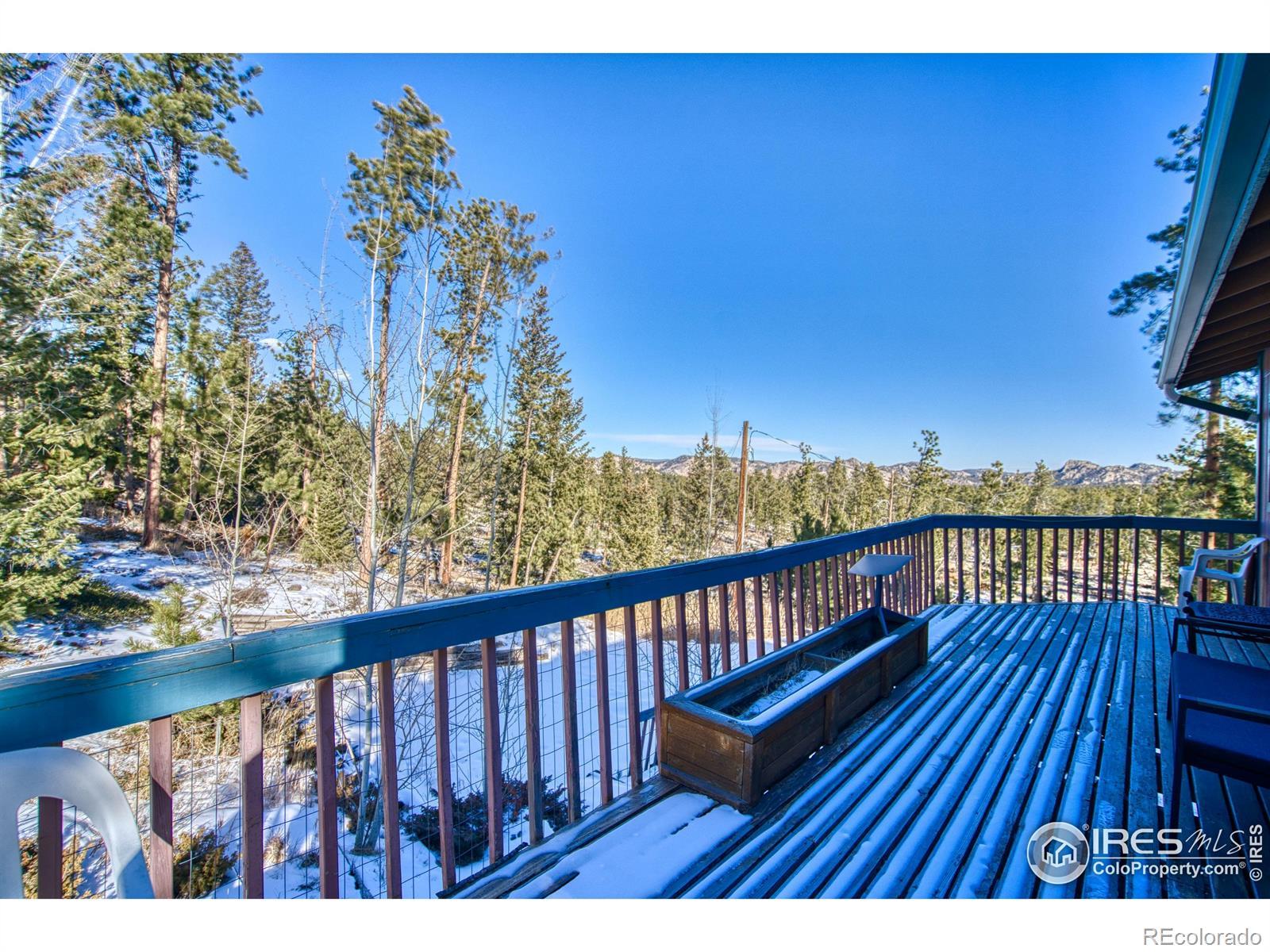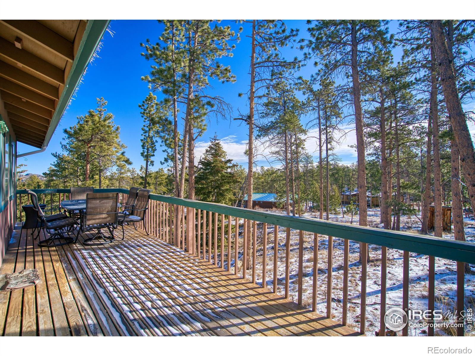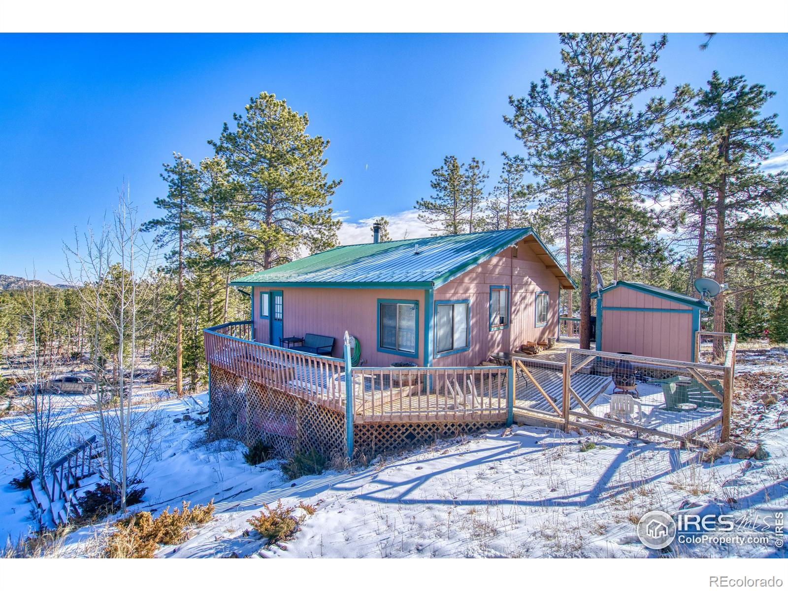 Escape to your Mountain Hideaway! Light, spacious & upside-down 2 story home at the end of the road, up on a hill w/ views for miles. Walk up the terraced landscape and in on the Main level w/ large family room, 2 big bedrooms, laundry room and utility room. Go upstairs to the remodeled, spacious & open upper-level w/ large living room w/ moss rock fireplace, dining room and upgraded kitchen w/ SS appliances, 42" cabs & lots of countertops. Also, the large primary bedroom & full bath w/ soaker tub. Large wrap-around deck w/ shed, lots of windows, great views, metal roof. See the wildlife and wildflowers! Red Feather Shops are 7 mins away, 40 mins to Ft. Collins. Easy to get to but, oh, so private! Close to grocery store, new restaurant, lakes incl. Snake Lake, Deer Lake & Dowdy and hiking/biking trails. NEW WELL STSTEM, NEW PRESSURE TANK, NEW WATER HEATER. Shared well/sewage disposal. Furnishings are negotiable. Home sold AS-IS. Listing agent is owner of the property.**Memberships to private lakes are available.
