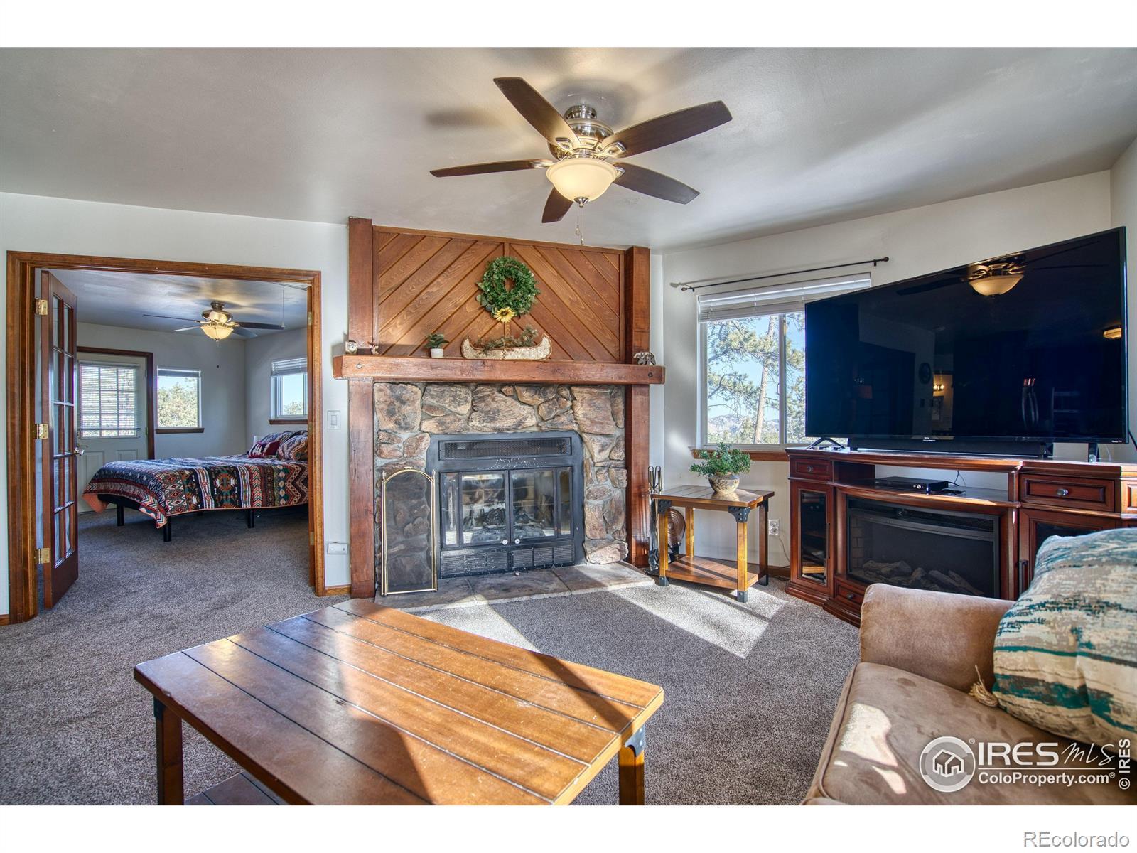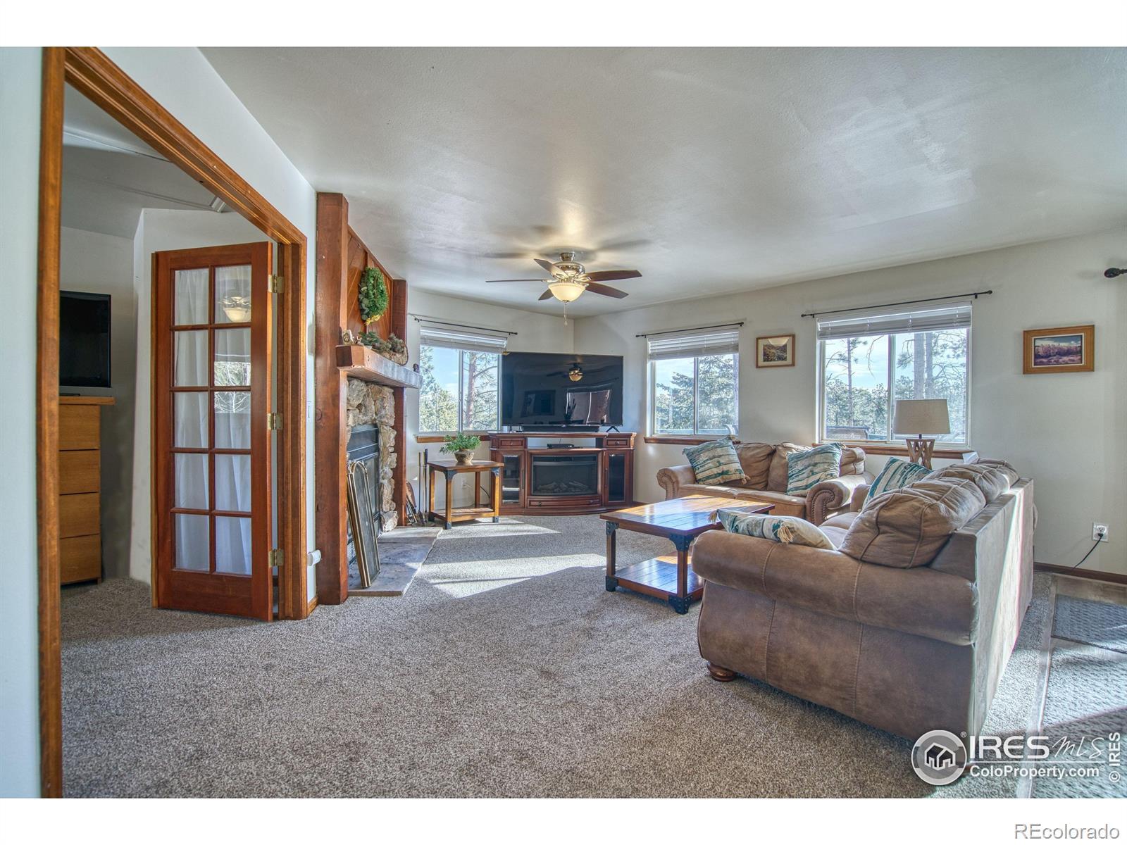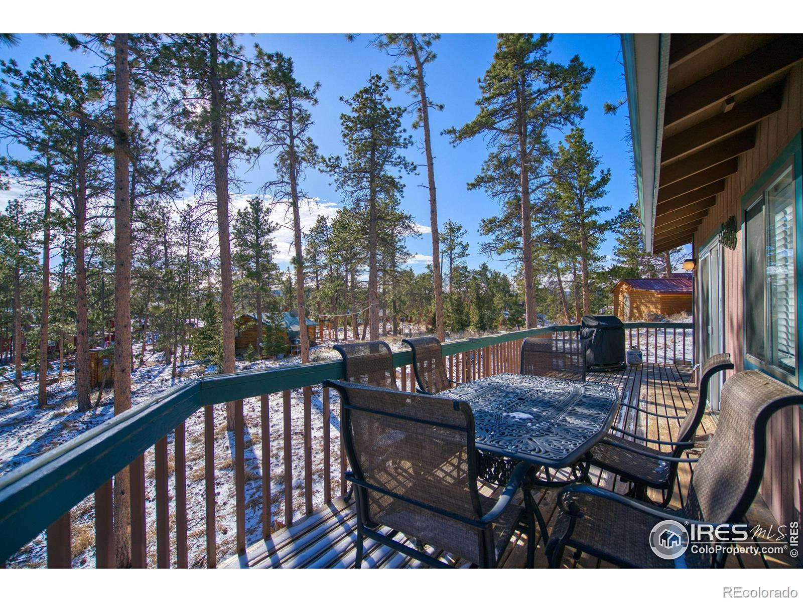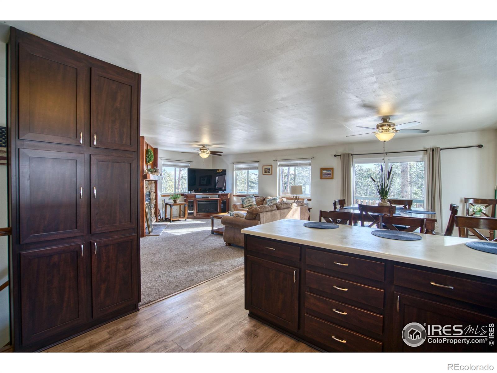 Escape to your Mountain Hideaway! Light, spacious & upside-down 2 story home at the end of the road, up on a hill w/ views for miles. Walk up the terraced landscape and in on the Main level w/ large family room, 2 big bedrooms, laundry room and utility room. Go upstairs to the remodeled, spacious & open upper-level w/ large living room w/ moss rock fireplace, dining room and upgraded kitchen w/ SS appliances, 42" cabs & lots of countertops. Also, the large primary bedroom & full bath w/ soaker tub. Large wrap-around deck w/ shed, lots of windows, great views, metal roof. See the wildlife and wildflowers! Red Feather Shops are 7 mins away, 40 mins to Ft. Collins. Easy to get to but, oh, so private! Close to grocery store, new restaurant, lakes incl. Snake Lake, Deer Lake & Dowdy and hiking/biking trails. NEW WELL STSTEM, NEW PRESSURE TANK, NEW WATER HEATER. Shared well/sewage disposal. Furnishings are negotiable. Home sold AS-IS. Listing agent is owner of the property.**Memberships to private lakes are available.