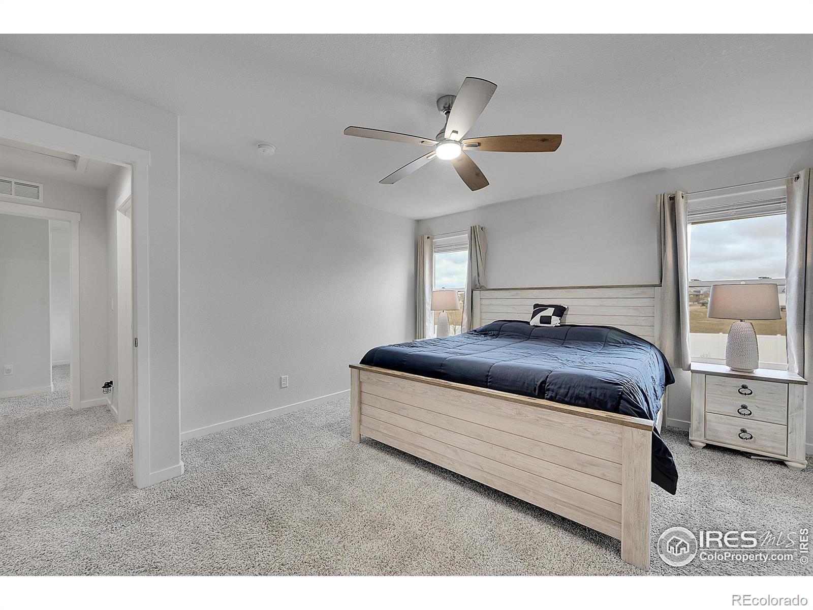 The Meadow Porch House. Perfectly placed in a quiet, friendly neighborhood, this inviting home welcomes you with a xeriscaped front yard and a charming front porch made for slow mornings and evening unwind time. Inside, the open kitchen-family-dining layout creates effortless flow for everyday living and entertaining. The kitchen is a standout with a breakfast bar, gas range with dual ovens, granite countertops, and a generous walk-in pantry. The backyard is truly exceptional-expansive, private, and framed by beautiful mountain views. Backing to open farmland, it offers a serene sense of space rarely found nearby. An attractive permeable paver patio sets the stage for outdoor dining, gatherings, and Colorado sunsets. Upstairs, two secondary bedrooms feel bright and spacious with large closets and natural light. The primary suite captures more of those mountain views and features a massive walk-in closet and a luxe en-suite bath. An unfinished basement offers incredible storage and future potential. With easy access to I-25 and everyday conveniences just minutes away, this is a special opportunity to enjoy comfort, views, and room to grow-all in a coveted location.