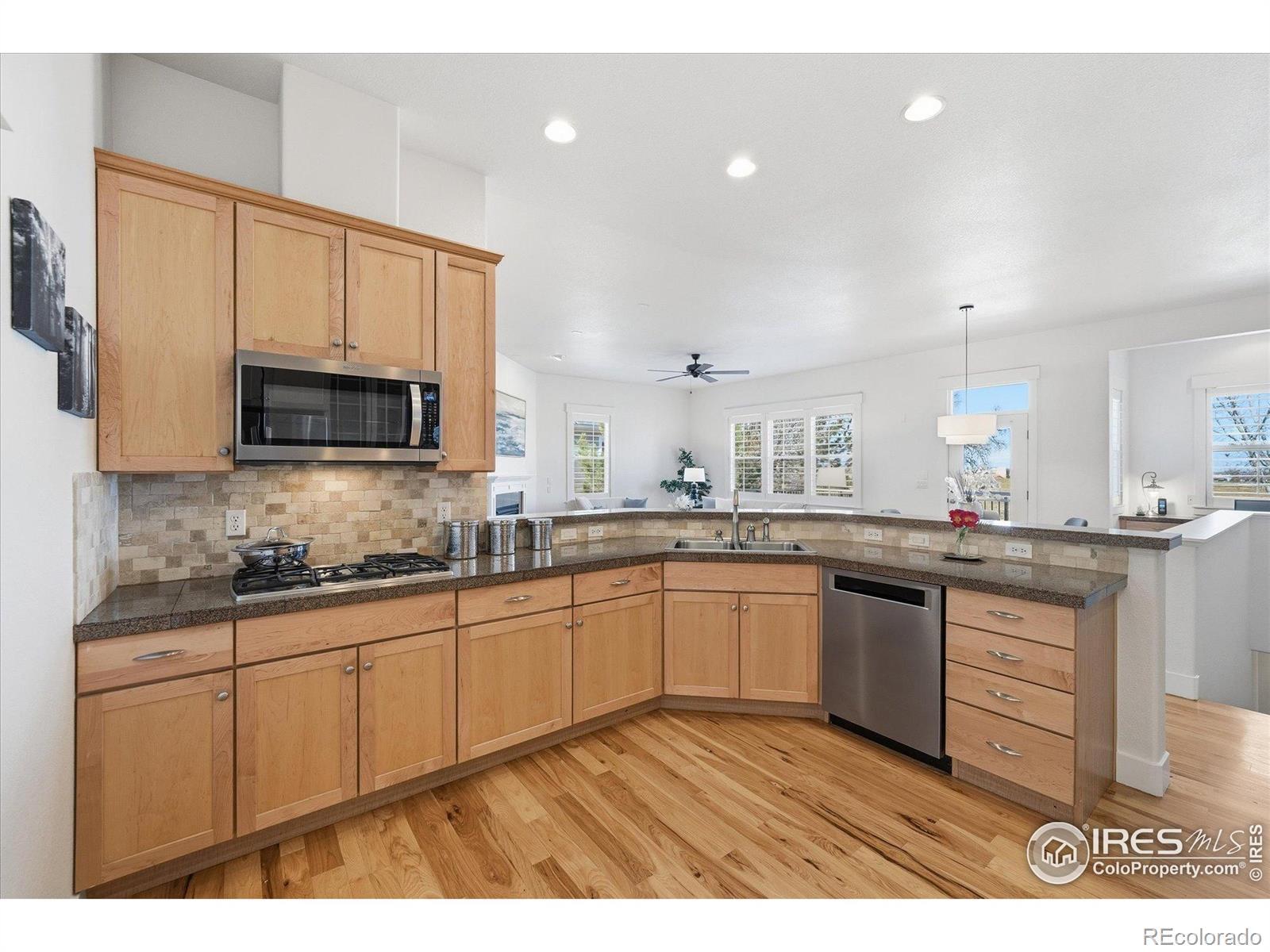 Beautifully updated single level stunner on Indian Peaks Golf Course! One of the most desirable floorplans in Indian Peaks & one of the best locations in Boulder County! Take in the sights of the gorgeous Thunder Lake Park from the front porch or enjoy expansive views of the golf course & open farmland beyond, from your brand-new composite deck out back. Meticulously maintained by the original owners, this home offers soaring 10' ceilings, hickory hardwood floors, custom wood plantation shutters and walls of windows that fill the open floorplan with natural light. The main level features three bedrooms, including a luxurious primary suite with a five-piece bath and walk-in closet. A daylight basement adds a spacious recreation area and an exceptional fourth bedroom space. New high-efficiency HVAC, double ovens, and exterior paint. Enjoy award-winning schools, fabulous greenbelts, six neighborhood parks and community favorites like food trucks, parades, and holiday events. Just blocks from the YMCA, incredible dining, coffee, & Colorado's #1 brewery. Thunder Lake Circle is one of Boulder County's best-kept secrets