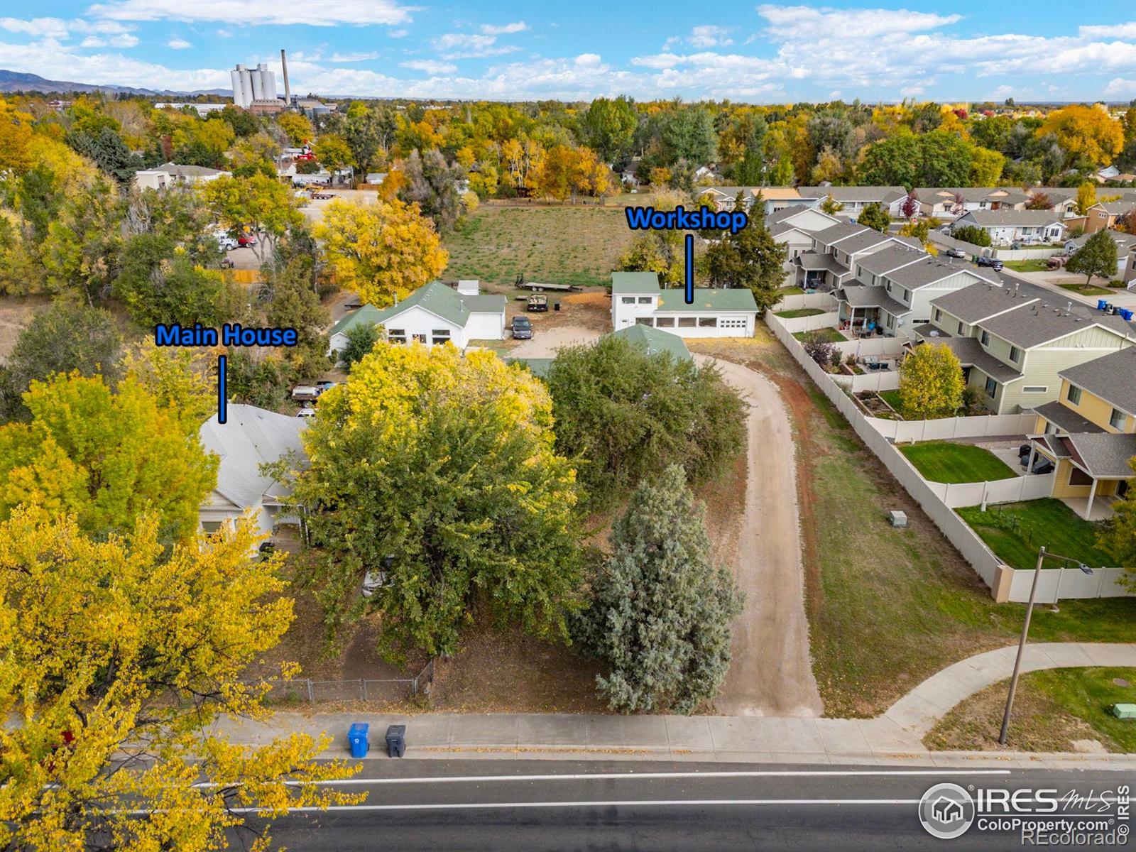 Live, work, play! 2.5 acres with lots of potential! House, outbuildings, in town acreage, great property w/ lots of options, ready to personalize & make your own, home business, hobby farm, etc. easy access to I-25. This property features a 30' x 50' 1,500 square foot heated shop with additional office space and bathroom upstairs, a heated 3,500 square foot shop and a 1,220 square foot garage/shop. There is also a 2-bedroom, 2 bath bungalow and 4 garage spots. The house and shops are on city water and there are 2 wells for irrigating. Countless possibilities with this property; zoned R2 - Developing Medium-Density Residential