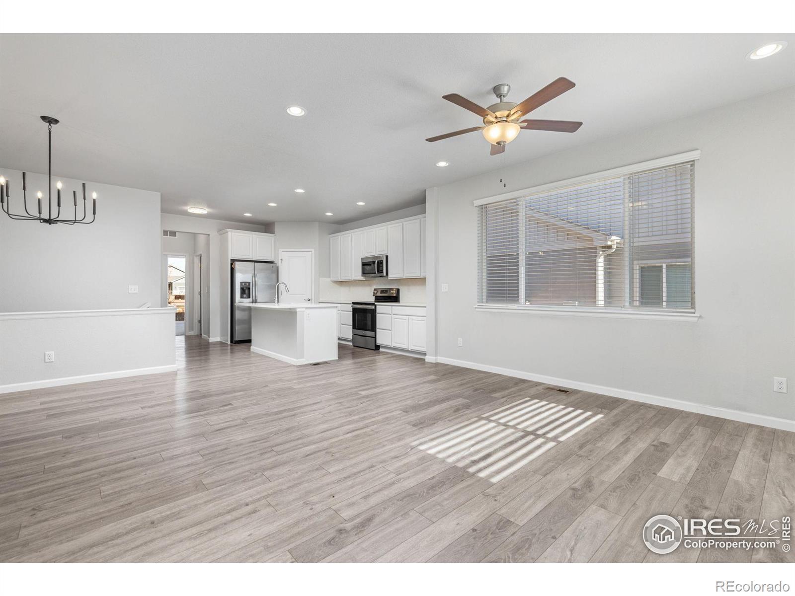 Welcome to easy, main-floor living in Greenspire - one of Windsor's most desirable lake-adjacent neighborhoods. Located just a short distance from Windsor Lake and close to shopping, restaurants, breweries and more! Inside, the open-concept layout is designed for both comfort and entertaining. The kitchen features a spacious island, stainless steel appliances, and seating. The living and dining areas flow seamlessly together, with LVP flooring throughout the main level. The main-floor primary suite is a relaxing retreat with generous space, a large walk-in closet, and a modern 3/4 bathroom. A second bedroom offers flexibility as a guest room or home office and includes a sliding glass door that opens to the private backyard. A full hall bath and convenient main-floor laundry complete the functional layout. The unfinished basement provides endless potential-perfect for storage, a home gym, hobby space, or future expansion. Outside, enjoy a private, fenced backyard and the convenience of an attached two-car garage. As an added bonus, these paired homes offer the benefits of low-maintenance living without the high HOA fees. This home offers comfort, convenience, and an unbeatable location - all in one.