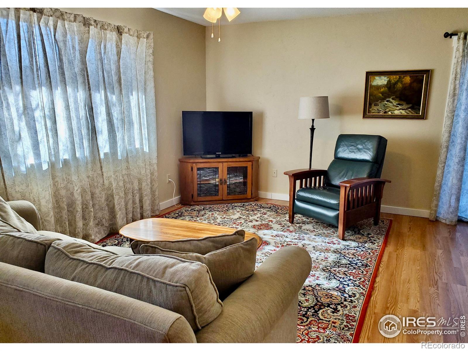 Sweet south facing brick home in the heart of Windsor where you can enjoy walking or biking to Main Street, parks, library, recreational center and Old Town Windsor's great shops & restaurants. 1.9 miles to Boardwalk Park and Windsor Lake where you can swim, boat and fish. This thoughtfully laid out ranch has everything on one level. Wonderful large fenced backyard with a sprinkler system, 2 raised garden beds, mature landscaping and a garden shed. Fabulous dining patio and a second fire pit patio. Newer appliances include a Bosch dishwasher, gas range, microwave, refrigerator and washer/dryer. (Does not include small garage refrigerator.) Skylights add natural light to the kitchen and full bathroom. The primary bedroom has an attached 1/2 bath and walk-in closet. Tankless hot water heater, AC and low maintenance home exterior, no HOA. TV antenna gives you free local stations, which stays with the house. Radon mitigation system has been added. Smoke detectors updated in 2024. No basement, full crawl space with lots of room for storage. 2 car oversized garage with garage door opener and built-in cabinets and shelving. It is a clean, pet-free home that has been lovingly cared for and is move-in ready!