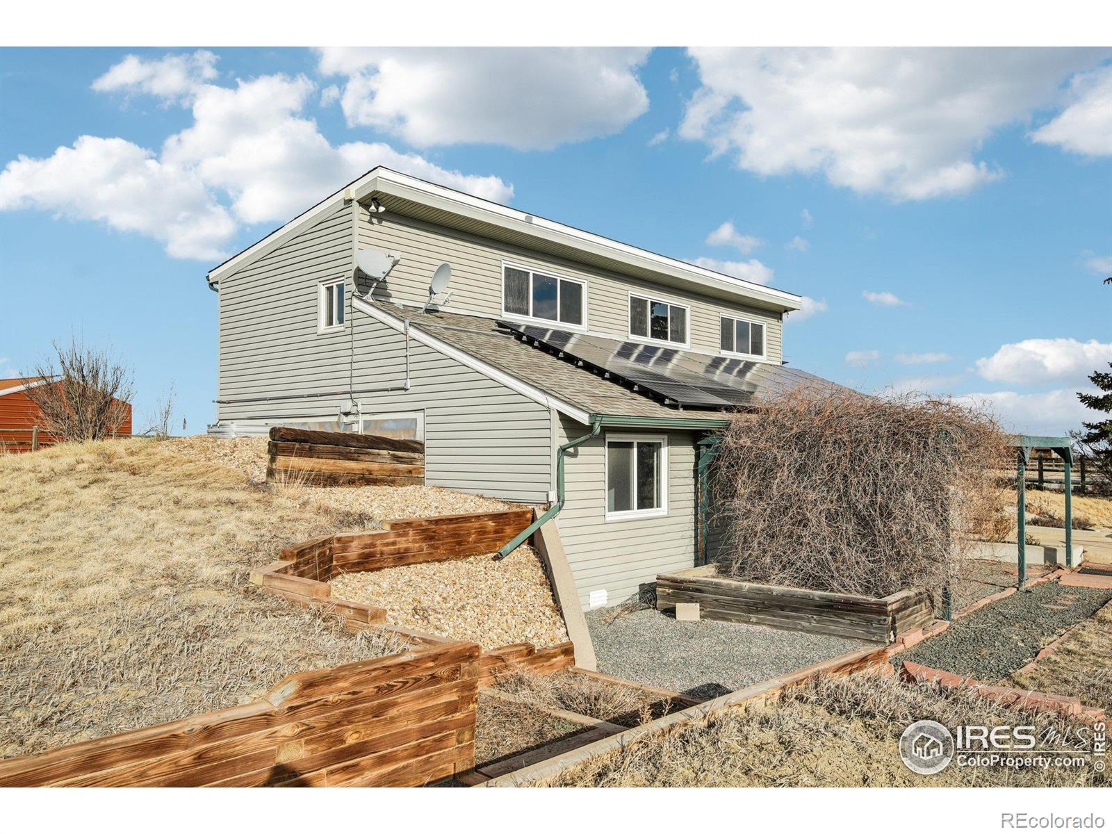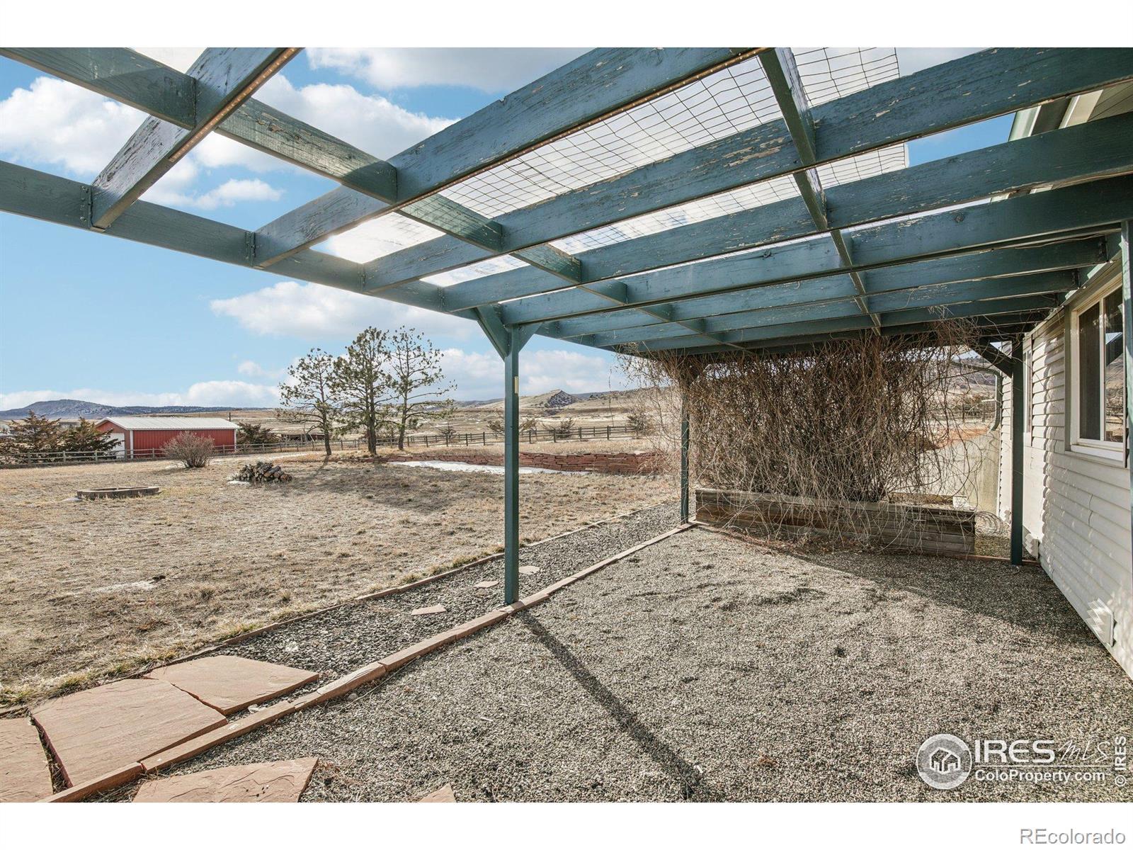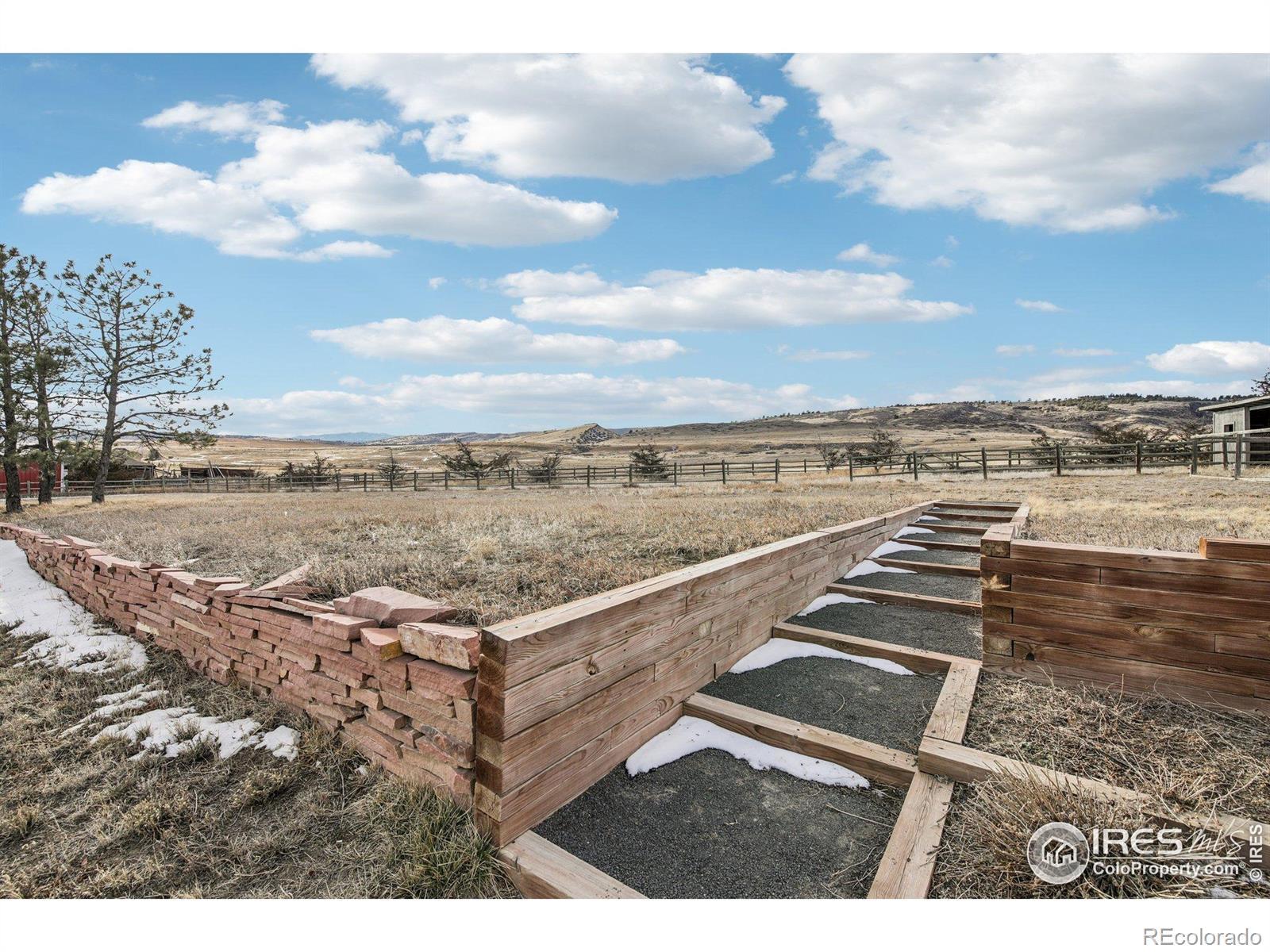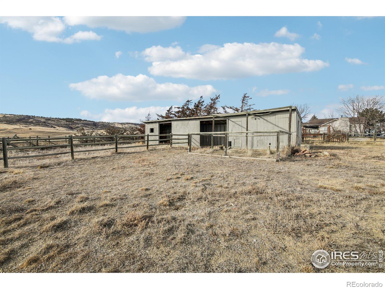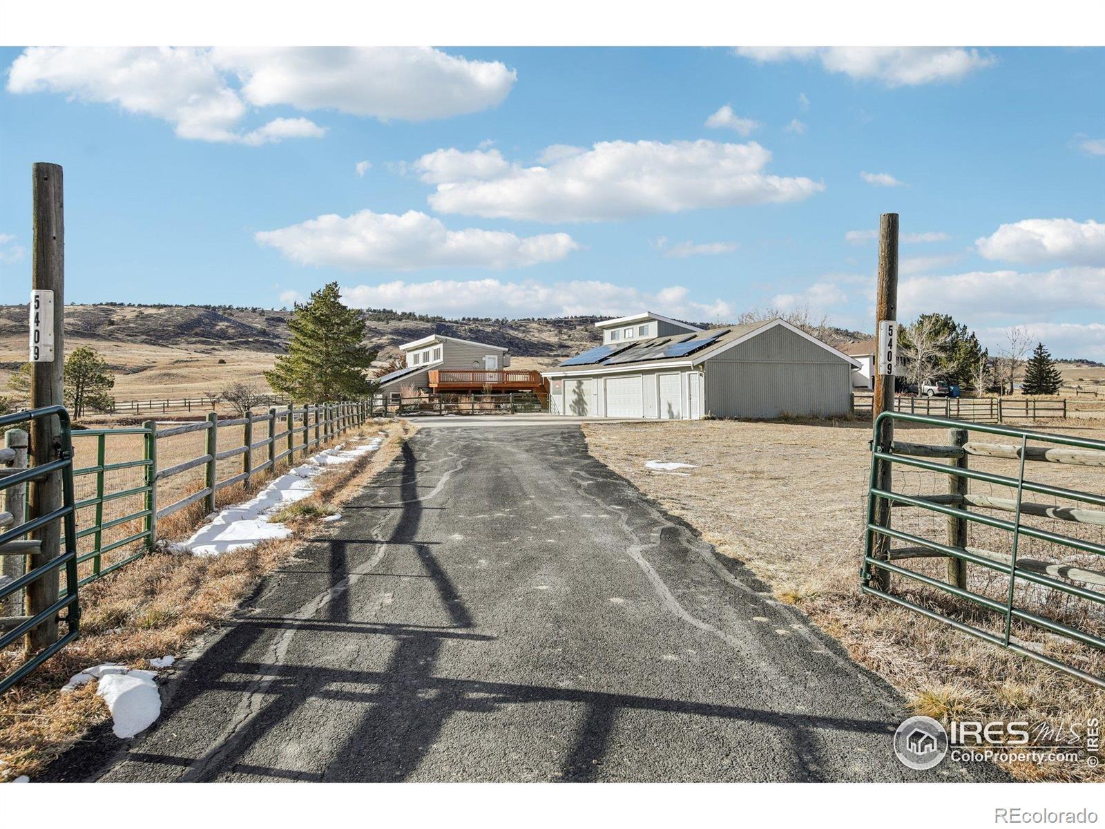 Rare Foothills Horse Property on 2.3 Acres with Access to 50 Acres of Trails and Ultra-Efficient Berm Home.Outstanding 2.3-acre horse property offering direct access to 50 acres of HOA-permitted use to open space with established horse and hiking trails. Step out the back gate and ride, walk, or explore for miles while enjoying protected views, abundant wildlife, and a setting that delivers privacy and long-term value. This fully fenced acreage is great for many horses, fowl, or other 4-H projects.The OVERSIZED 5 car garage will fit all your hobbies and toys. The finished bonus room above, the garage could serve as an ADU, home office, hobby space, or flexible living area.Of exceptional importance is the home itself, which is a berm-style, energy-efficient residence with owned solar and an electric vehicle charger. Designed for thermal efficiency and low operating costs, the property offers average monthly utility costs of approximately $60, including charging an electric vehicle (buyer to verify). This rare level of efficiency provides long-term cost benefits and stability.The home features a practical, accessible layout with excellent natural light and easy flow between indoor and outdoor spaces. The property is wheelchair and stroller accessible and includes an accessible bathroom designed to accommodate mobility needs, supporting ease of use throughout the home.Located in a quiet foothills area just 10 minutes south of Carter Lake, the property balances rural tranquility with convenient access to outdoor recreation and the surrounding amenities like the public TCP Golf Course and the central location to Denver, Estes Park, and Boulder.Horse properties that combine usable acreage, trail access, exceptional energy efficiency, and accessibility features are increasingly scarce. Bring your horses, animals, and vision-this opportunity will not last.